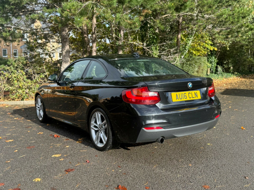 ✨ ITA Motors Presents: BMW 2 Series – Sleek, Reliable & Feature-Packed! ✨Introducing this BMW  2 Series M-sport edition finished in a stylish sapphire black exterior, complemented by a black/grey Alcantara cloth interior for a refined and comfortable drive. Sitting on 18 inch M-sport alloy wheels,  offers both style and practicality.Key Features:✅ USB Connectivity – Stay charged on the go✅ Bluetooth – Seamless hands-free calls & audio streaming✅ Limit Control – Enjoy a smooth drive.✅ Air Conditioning – Comfort in all seasons✅ And much more! (See EXTRA FEATURES section for full details)???? Recent Maintenance: A new interim service has been completed prior to sale for your peace of mind.???? HPI Clear: Buy with confidence – no hidden surprises!???? Warranty: Extendable warranty available for up to 12 months.???? Nationwide Delivery: Fast & secure delivery to your doorstep.???? Virtual Viewings: Bespoke virtual tours available upon request.???? Viewing by Appointment Only: Please call to confirm specifications and arrange a viewing.???? Why Choose ITA Motors?We are an independent, dealership based in Cardiff Bay. All our cars are handpicked, test-driven, and undergo a thorough multi-point safety check before sale to ensure quality and reliability. We pride ourselves on offering HPI-clear vehicles and exceptional customer service.???? Follow us on Instagram: @ITA.Motors_ for the latest stock updates!???? Contact us today to book your test drive!. 12V Power Socket - Centre Console, 12V Power Socket - Passenger Footwell, 18in Alloy Wheels - M Double Spoke - 461M, 6.5in Colour Display Screen, ABS - Anti Lock Braking System, ADB Sport - Active Differential Brake, ASC - Automatic Stability Control, Air Conditioning - Automatic - Single Zone, Airbags - Curtain Head - Front, Airbags - Curtain Head - Rear, Airbags - Driver, Airbags - Front Side, Airbags - Passenger, Airbags - Passenger Deactivation, Alarm System Thatcham 1 with Remote Control, Ambient Lighting - Switchable, Armrest - Front and Rear Integrated into Door Trim, Armrest - Front with Sliding Adjustment, Automatic Lock when Driving Away Selectable, Auxiliary Input, BMW Emergency Call, BMW Navigation System, BMW Professional Radio - Single CD and MP3, BMW TeleServices, Battery Safety Cut Off, Bluetooth - Audio Streaming - with Compatible Devices, Bluetooth Hands Free Facility, Brake Assist, Brake Drying, Brake Pad Wear Indicator - Front and Rear, Bumpers - Body Colour, CBC - Cornering Brake Control, Central Locking - Remote, Check Control Warning System, Child Seat ISOFIX Attachment - Rear x2, Comfort Go Keyless Engine Start, Crash Sensor, Crash Sensor - Activating Central Locking-Hazard Warning Lights-Fuel Cut Off, Cup Holders - Front x2, DAB Digital Radio, DBC - Dynamic Brake Control, DSC - Dynamic Stability Control Plus, DTC - Dynamic Traction Control, Daytime Running Lights, Door Handles - Body Colour, Door Mirrors - Body Coloured Housing, Door Mirrors - Electric and Heated, Door Mirrors - Integrated Indicators, Door Sill Finishers - M Designation, Drive Performance Control - ECO PRO - Comfort - Sport - Sport Plus, Dynamic Brake Lights, Electric Windows - Front Open and Close Fingertip Control, Engine Immobiliser, Exhaust Tailpipe - Chrome - Single - Round - Left, Exterior Trim - High-Gloss Shadowline, First Aid Kit, Floor Mats - Velour, Follow Me Home Headlight Function, Front Fog Lights, Gear Knob - Leather, Gearshift Lever with M Designation, Glove Box Opener with Chrome Trim, Glove Compartment, Grab Handles with Coat Hooks, Halogen Headlights, Handbrake - Leather, Head Restraints - Rear and Folding, Headlights - Automatic Activation, Headlights - Beam Throw Control, Headlining - Anthracite, Heat Protection Glazing with Green Tint, Heated Windscreen Washer Jets, High Level Third Brake Light, Hill Start Assist, Indicator Lenses - Clear, Interior Trim - Aluminium Hexagon with Estoril Blue Finisher, Kidney Grille - Chrome Extra-Wide Eight High-Gloss Black Vertical Slats, LED Rear Light Bars, LED Tailights, Lights-on Audio Warning, Locking Wheel Bolts, Luggage Compartment - Electric Unlocking via the Keys Remote Control, Luggage Compartment - Lashing Eyes x2, Luggage Compartment - Light, M Aerodynamic Bodystyling, M Logo Designation on Front Wings in Chrome, M Sport Package, M Sport Suspension, Multifunction Controls for Steering Wheel, OBC - On-Board Computer, Optimum Shift Indicator, Outside Temperature Display with Ice Warning, PDC - Park Distance Control - Rear, Personal Profile, Power Steering - Electric, Rain Sensor, Reading Lights - Front and Rear, Remote Control with Integrated Key with Insert in Blue, Roof Mouldings - Body Colour, Run Flat Tyres, Seat Belt Security Check for Driver and Front Passenger, Seats - 60-40 Split Folding Rear, Seats - Electric Adjustment for Backrest Side Bolsters, Seats - Front - Manual Height Adjustment, Shark Fin Aerial, Side Impact Protection, Speed Limit Function, Sport Instrument Cluster - Differentiated Dial Design Featuring Finer Chrono-Scaling, Sport Seats - Front, Steering Column with Manual Reach and Rake Adjustment, Steering Wheel - Leather - M Sport, Storage Compartment - Rear Centre Console and in Door Trim - Front, Sun Visors with Vanity Mirrors and Ticket Holder, TMC - Traffic Information for Lifetime of Vehicle, TPMS - Tyre Pressure Monitoring System, Tyres - Reduced Rolling Resistance, USB Audio Interface, Warning Triangle, Welcome Light, Enhanced Bluetooth Tele.