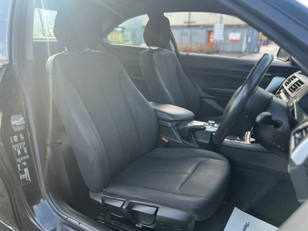 2016 BMW 218i SE 1.5 petrol finished in black. 80,000 warranted miles on the clock. Comes with a 12 month warranty! MOT til 12th April 2026. 1 former keeper from new. Car drives well with no mechanical faults. Comes with a top spec including; alloy wheels, leather steering wheel, multi-functional steering wheel, cruise control, on-board computer, Satellite Navigation, Radio DAB/FM, electric windows, central locking, AC/Climate control, Bluetooth, USB input, automatic headlights, TPMS, cup holders and many more. Nationwide Delivery Available. P/X Welcome. HPI Clear. ULEZ compliant. Any questions don't hesitate to contact us on 07443456706 hanced bluetooth telephone preparation with usb audio interface and voice control, move cloth - anthracite with black interior, 12v power socket - centre console, 12v power socket - passenger footwell, 17in alloy wheels - light y spoke - 380, 6.5in colour display screen, abs - anti lock braking system, asc - automatic stability control, air conditioning - automatic - single zone, airbags - driver, airbags - front side, airbags - head - front and rear, airbags - passenger, airbags - passenger deactivation, alarm system thatcham 1 with remote control, ambient light - front, armrest - front and rear integrated into door trim, armrest - front with sliding adjustment, automatic lock when driving away selectable, auxiliary input, bmw emergency call, bmw professional radio - single cd and mp3, bmw teleservices, battery safety cut off, bluetooth - audio streaming - with compatible devices, bluetooth hands free with usb audio interface, brake assist, brake drying, brake pad wear indicator - front and rear, bumper system front and rear - replaceable deformation elements for impacts up to 9mph, bumpers - body colour, cbc - cornering brake control, central locking - remote, check control warning system, child seat isofix attachment - rear x2, comfort go keyless engine start, crash sensor, crash sensor - activating central locking-hazard warning lights-fuel cut off, cup holders - front x2, dab digital radio, dbc - dynamic brake control, dsc - dynamic stability control plus, dtc - dynamic traction control, daytime running lights, door handles - body colour, door mirrors - body coloured housing, door mirrors - electric and heated, door sill finishers - bmw designation - black, drive performance control with eco pro - comfort and sport modes, dynamic brake lights, electric windows - front and rear with open-close fingertip control, engine immobiliser, first aid kit, floor mats - velour, follow me home headlight function, front fog lights, glove box with chrome surround and key lock, grab handles - in roof lining x4, grab handles with coat hooks, halogen headlights, handbrake lever - gear lever knob and gaiters in leather, head restraints - rear and folding, headlights - automatic activation, headlights - beam throw control, heat protection glazing with green tint, heated windscreen washer jets, high level third brake light, hill start assist, incorrect fuelling protection system, interior trim - satin silver, kidney grille - chrome with black vertical slats, kidney grille - extra wide high gloss black vertical slats, led rear light bars, led tailights, lights-on audio warning, locking wheel bolts, luggage compartment - electric unlocking via the keys remote control, luggage compartment - lashing eyes x2, multifunction controls for steering wheel, obc - on-board computer, optimum shift indicator, outside temperature display with ice warning, pdc - park distance control - rear, personal profile, power steering - electric, rain sensor with automatic headlight activation, reading lights - front and rear, roof mouldings - body colour, run flat tyres, seat belt security check for driver and front passenger, seats - 60-40 split folding rear, seats - front - manual height adjustment, shark fin aerial, side impact protection, speed limit function, sport multi-function leather steering wheel - three spoke, steering column with manual reach and rake adjustment, steering wheel stitching - black, storage compartment - rear centre console and in door trim - front, sun visors with illuminated vanity mirrors and ticket pocket, tpms - tyre pressure monitoring system, trim designation deletion, tyres - reduced rolling resistance, usb audio interface, warning triangle, welcome light