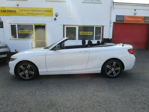 Croxley Car Centre will have you ready for the summer with this one........A fantastic looking BMW 2 Series Sport Cabriolet. This is a 2016 registration in White covered only 54k miles. 1.5ltr Petrol Manual supplied with a Full Service History and only 2 owners from new. Tailored finance packages available, Part exchange welcome and we DO NOT charge admin fee's. . 12V Power Socket - Centre Console, 12V Power Socket - Passenger Footwell, 17in Alloy Wheels - Light Star Spoke - 3, 3.5mm Auxiliary Input Point for Auxiliar, Acoustic Soft-Top in Anthracite, Active Differential Brake - ADB Sport - , Air Conditioning - Automatic - Single Zo, Airbags, Alarm System - Thatcham 1 with Remote Co, Ambient Lighting - Switchable BMW Classi, Armrest - Front with Sliding Adjustment, BMW ConnectedDrive Online Services, BMW Emergency Call, BMW Navigation, BMW Professional Radio with Single CD Pl, BMW TeleServices, Battery Age Recognition Function, Battery Safety Cut Off, Bluetooth Hands-Free Facility with USB A, Brake Pad Wear Indicator, Bumper - Rear with High Gloss Bla
