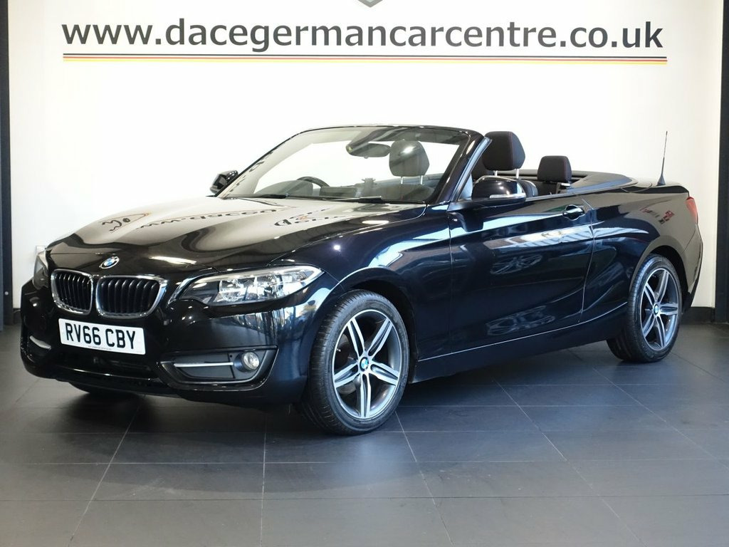 FINISHED IN STUNNING SAPPHIRE BLACK, COMPLIMENTED WITH DARK GREY CLOTH SEATS - VERY STYLISH SPORTS CONVERTIBLE - COMES WITH A WELL DOCUMENTED SERVICE HISTORY INCLUDING A RECENT NEW CLUTCH + SATELLITE NAVIGATION + REAR PARKING SENSORS + DAB DIGITAL RADIO + BLUETOOTH CONNECTIVITY + MULTI FUNCTION SPORTS LEATHER STEERING WHEEL + ELECTRIC WINDOWS + ELECTRIC DOOR MIRRORS + RAIN SENSING WIPERS + ELECTRICALLY OPERATED CONVERTIBLE ROOF + AMBIENT LIGHTING + DRIVER PERFORMANCE MODES + ------------FINANCE------------ ***NOT SURE YOU'RE ELIGIBLE FOR CAR FINANCE? *** CHECK TODAY USING THE FREE CAR FINANCE CHECKER ON OUR WEBSITE.** Dace Motor Group have a dedicated team of finance experts waiting to help with your enquiry. Over the past 30 years we have forged relationships with the country's largest and best finance houses. We are specialists in Hire Purchase (HP), Personal Contract Purchase (PCP) as well as assisting those with poor credit or previous credit problems. ------------ABOUT US------------ - At Dace German Car Centre, we are very proud to have been named the first Trading Standards Approved Car Retailer, with process and procedures developed with and applauded by them. We do recommend that customers RESERVE their choice of vehicle prior to making their trip to avoid potentially missing it. Visit our website https://www.dacegermancarcentre.co.uk/ At Dace German Car Centre Stockport we carry over 700 cars in group stock. TO ENQUIRE OR RESERVE PLEASE CALL | 0161 4 12V Power Socket - Centre Console, 12V Power Socket - Passenger Footwell, 17in Alloy Wheels - Double Spoke - 655, 17in Alloy Wheels - Light Star Spoke - 3, 17in Alloy Wheels - Turbine Spoke - 381, 3.5mm Auxiliary Input Point for Auxiliar, Acoustic Soft-Top in Anthracite, Active Differential Brake - ADB Sport - , Air Conditioning - Automatic - Single Zo, Airbags, Alarm System - Thatcham 1 with Remote Co, Alpine White, Ambient Lighting - Switchable BMW Classi, Armrest - Front with Sliding Adjustment, Battery Age Recognition Function, Battery Safety Cut Off, Black Sapphire, Bluetooth Hands-Free Facility with USB A, BMW ConnectedDrive Online Services, BMW Emergency Call, BMW Navigation, BMW Prof