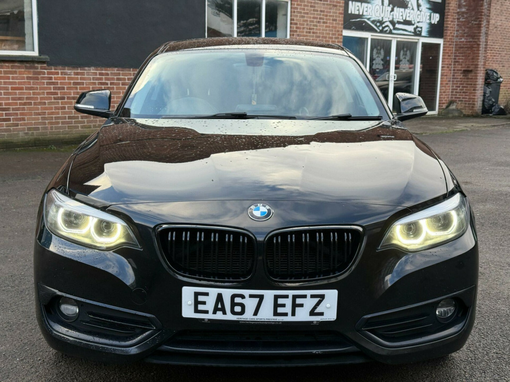 This 2017 BMW 2 Series 218i Sport is a well maintained example of this popular compact coupe. Powered by a 1.5 litre petrol engine, this Euro 6 compliant model offers an impressive fuel economy of 52 miles per gallon, making it an economical choice for daily driving. The Sport trim level enhances the driving experience with a range of desirable features.This BMW 218i Sport comes equipped with LED headlights for improved visibility and PDC Park Distance Control at the rear to assist with parking. Inside, you will find Enhanced Bluetooth Telephone Preparation with USB Audio Interface and Voice Control, allowing for seamless connectivity and hands free calls. The cabin also benefits from automatic single zone air conditioning for your comfort. The low CO2 emissions further highlight its efficiency compared to similar vehicles. hanced bluetooth telephone preparation with usb audio interface and voice control, sun protection glazing, interior trim - high-gloss black with pearl chrome finisher, 12v power socket - centre console, 12v power socket - passenger footwell, 17in alloy wheels - double-spoke style 725 - burnished and finished in orbit grey, active differential brake - adb sport - electronic differential lock in dsc-off mode, air conditioning - automatic - single zone, airbags, alarm system - thatcham 1 with remote control and engine immobiliser, ambient lighting - switchable bmw classic orange - cold white - led, armrest - front with sliding adjustment, bmw connecteddrive online services, bmw connecteddrive services, bmw emergency call, bmw navigation, bmw professional radio with single cd player - with mp3 playback compatibility, bmw teleservices, battery age recognition function, battery safety cut off, bluetooth hands-free facility with usb audio interface and audio streaming, brake pad wear indicator, bumper - rear with high gloss black finisher, bumper system - front and rear, central locking switch - doors - fuel filler cap - luggage compartment, check control warning system for monitoring of lights and door-luggage compartment open warning, child seat isofix attachment for the two outer rear seats, coat hooks - integrated into rear of b pillar, condition based service, crash sensor, cup holders x2 with sliding cover and inlay mat, dab digital radio, dsc - dynamic stability control plus, daytime driving lights, direction indicator - side repeaters - integrated in exterior mirrors, direction indicator lights - clear lenses, door sill finishers - exclusive with bmw designation - front, drive performance control - eco pro - comfort - sport - sport plus, dynamic brake lights, eco pro mode, eps - electric power steering, electric windows - front and rear with open-close fingertip control - anti-trap facility and comfort closing function, engine cover with bmw roundel and twinpower turbo designation, exhaust tailpipes - dark chrome - single - round - left, exterior mirrors electrically adjustable, exterior parts in body colour, first aid kit and warning triangle, floor mats - velour, front air inlet with high-gloss black finisher, glove box, handbrake lever and gear lever in leather, head restraints - rear and folding, heat protection glazing with green tint, high level third brake light, instrument cluster, interior lighting - front centre over interior mirror and rear centre, interior trim - black high gloss with coral red finisher, kidney grille - extra wide high gloss black vertical slats, led fog lights - front, led headlights, led rear light bars, lashing eyes in luggage compartment at sill x2, lights-on warning by audio warning signal when ignition is switched off, locking wheel bolts, luggage compartment - light, luggage compartment access via bmw roundel, model designation, model designation deletion - side, multifunction controls for steering wheel, obc - on-board computer, oil temperature display via on-board computer shown in central screen in instrument cluster, optimum shift indicator, pdc - park distance control - rear, personal profile - extended, rain sensor with automatic headlight activation, real time traffic information, rear fog light, rear seat headrests - outer headrests folding, rear window aerial, remote control with integrated key with insert in red, reversing light in rear light clusters, run flat tyres, seat belt security check for driver and front passenger, seats - 60-40 split folding rear, servotronic steering, shark fin aerial, side armrests - front and rear integrated into door trim, side impact protection, sport instrument cluster, sport multi-function leather steering wheel - three spoke, sport seats - front, start-stop button with comfort go keyless engine start and auto start-stop deactivation button, steering-wheel column adjustment - manual, storage compartment - rear centre console and in door trim - front, sun visors with vanity mirrors and ticket holder, tpms - tyre pressure monitoring system, three-point seat belts - all seats, twin horns, tyres - reduced rolling resistance, visible vin, welcome lighting - led