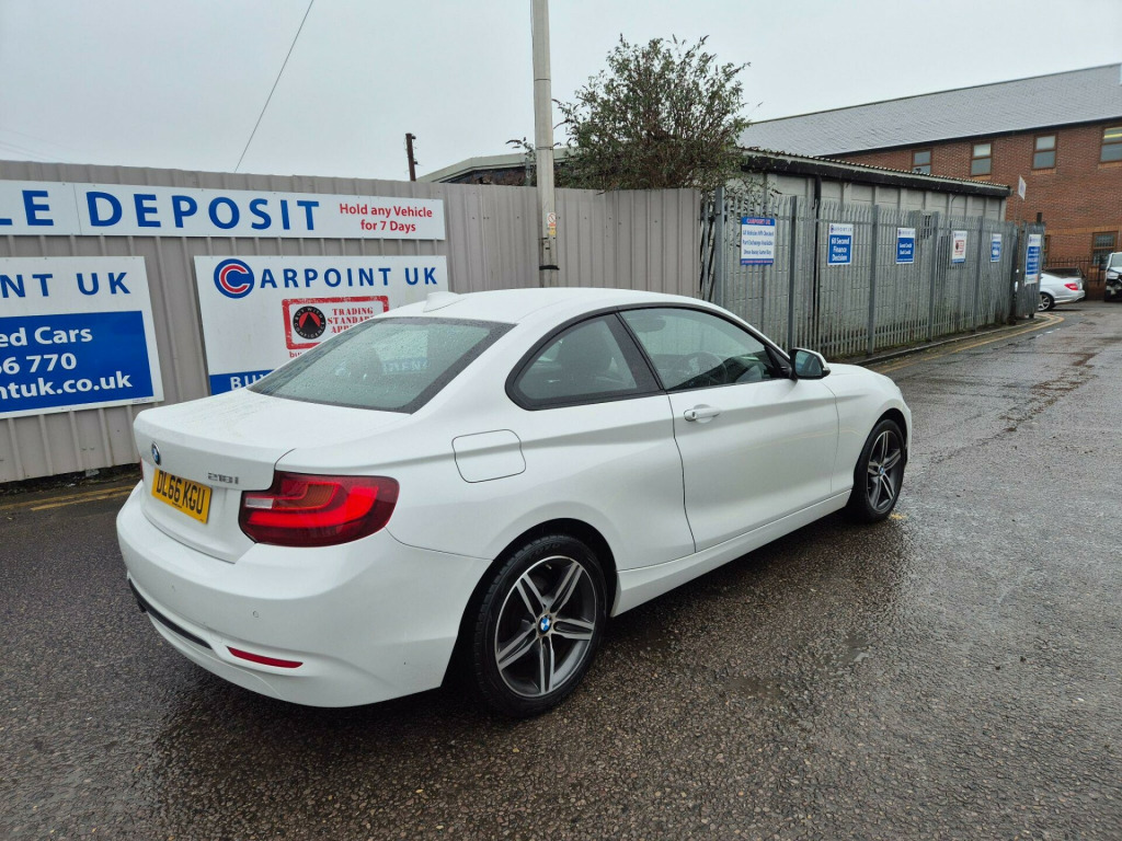 OUR BIGGEST EVER SALE ENDS 31ST JAN 2026ALL VEHICLE'S ARE IN THE SALE - WE HAVE DISCOUNTED PRICES BY UPTO £1000SOME OF THE BEST VALUE CARS IN THE UK £100 REFUNDABLE DEPOSIT HOLDS ANY VEHICLE FOR 7 DAYS DRIVE AWAY SAME DAY PART EXCHANGE ACCEPTED WE SETTLE EXISTING FINANCE 60 SECOND FINANCE DECISION FREE WARRANTY ON EVERY VEHICLEBoasting exceptionally low mileage for its age, this 2016 BMW 2 Series 218i Sport is a standout example with only two previous owners and a full service history. This Euro 6 compliant model features a responsive 1.5 litre petrol engine and comes equipped with the desirable Sport trim. You'll appreciate the convenience of enhanced Bluetooth telephone preparation, including USB audio and voice control, alongside rear park distance control to assist with parking. Automatic headlights and single zone climate control further enhance the driving experience, all supported by an MOT valid until January 2027.This BMW 218i Sport offers impressive efficiency, achieving a remarkable 52 miles per gallon, which indicates it is more economical than many similar vehicles. Its low CO2 emissions also contribute to its appeal. With a comprehensive service record, including its last service at 44,666 miles on 13 January 2026, and a total mileage of just 44,666 miles, this car represents excellent value and has been meticulously maintained.. 12V Power Socket - Centre Console, 12V Power Socket - Passenger Footwell, 17in Alloy Wheels - Light Star Spoke - 379, 6.5in Colour Display Screen, ABS - Anti Lock Braking System, ADB Sport - Active Differential Brake, ASC - Automatic Stability Control, Air Conditioning - Automatic - Single Zone, Air Inlets - Front Black with High Gloss Finisher, Air Microfilter, Airbags - Curtain Head - Front, Airbags - Curtain Head - Rear, Airbags - Driver, Airbags - Front Side, Airbags - Passenger, Airbags - Passenger Deactivation, Alarm System Thatcham 1 with Remote Control, Ambient Lighting - Switchable BMW Classic Orange - Cold White - LED, Armrest - Front Centre Console - Synthetic Leather - Black, Armrest - Front and Rear Integrated into Door Trim, Armrest - Front with Sliding Adjustment, Armrest - Front-Rear Lateral - Upper Section - Expanded Vinyl - Black, Auto Activation of Interior Lights via Door Opening-Ignition or Remote Key, Automatic Lock when Driving Away Selectable, Auxiliary Input, BMW ConnectedDrive Online Services, BMW Emergency Call, BMW Navigation System, BMW Professional Radio - Single CD and MP3, BMW TeleServices, Battery Safety Cut Off, Belt Force Limiters - Front, Bluetooth - Audio Streaming - with Compatible Devices, Bluetooth Hands Free Facility, Brake Assist, Brake Drying, Brake Pad Wear Indicator - Front and Rear, Brake Readiness, Bumper - Rear with Black High Gloss Finisher, Bumpers - Body Colour, CBC - Cornering Brake Control, Carpet - Anthracite, Central Locking - Remote, Central Locking Switch - Doors - Fuel Filler Cap - Luggage Compartment, Centre Console - Black - High Gloss, Check Control Warning System, Child Seat ISOFIX Attachment - Rear x2, Coat Hooks - B Pillar, Comfort Go Keyless Engine Start, Crash Sensor, Crash Sensor - Activating Central Locking-Hazard Warning Lights-Fuel Cut Off, Cup Holders - Front x2, DAB Digital Radio, DBC - Dynamic Brake Control, DSC - Dynamic Stability Control Plus, DTC - Dynamic Traction Control, Daytime Running Lights, Door Handles - Body Colour, Door Mirrors - Body Coloured Housing, Door Mirrors - Drivers Aspheric, Door Mirrors - Electric and Heated, Door Mirrors - Integrated Indicators, Door Panels - Cosmos Cloth - Carbon Black-Grey Highlight, Door Panels - Upper Arm Trim - Expanded Vinyl - Black, Door Pull Handle - Black - High Gloss, Door Sill Finishers - Exclusive with BMW Designation, Drive Performance Control - ECO PRO - Comfort - Sport - Sport Plus, Dynamic Brake Lights, Electric Windows - Front and Rear with Open-Close Fingertip Control, Engine Immobiliser, Exhaust Tailpipes - Dark Chrome - Single - Round - Left, First Aid Kit, Floor Mats - Velour - Anthracite, Follow Me Home Headlight Function, Front Fog Lights, Gear Knob - Leather, Gear Lever Gaiter in Leather - Black, Glove Box Opener with Chrome Trim, Glove Compartment, Halogen Headlights, Handbrake - Leather, Handbrake Lever Gaiter in Leather - Black, Head Restraints - Rear and Folding, Headlights - Automatic Activation, Headlights - Beam Throw Control, Headlining - Everest Grey, Headrests - Cosmos Cloth - Anthracite, Heat Protection Glazing with Green Tint, Heated Windscreen Washer Jets, High Level Third Brake Light, Hill Start Assist, Indicator Lenses - Clear, Instrument Panel - Black - High Gloss, Instrument Panel - Lower Section - Plastic Grained - Black, Instrument Panel - Upper Section - Shaped Foamed Component Grained - Black, Interior Lighting - Front and Rear Centre, Interior Trim - A Pillar - Upper Section - Everest Grey, Interior Trim - B Pillar - Upper Section - Everest Grey, Interior Trim - C Pillar - Upper Section - Everest Grey, Interior Trim - High-Gloss Black with Coral Red Matt Finisher, Kidney Grille - Chrome with Eight Extra-Wide High-Gloss Black Vertical Slats, Knee Pad - Leather Grained - Black, LED Rear Light Bars, Lights-on Audio Warning, Locking Wheel Bolts, Luggage Compartment - Electric Unlocking via the Keys Remote Control, Luggage Compartment - Lashing Eyes x2, Luggage Compartment. Full service history