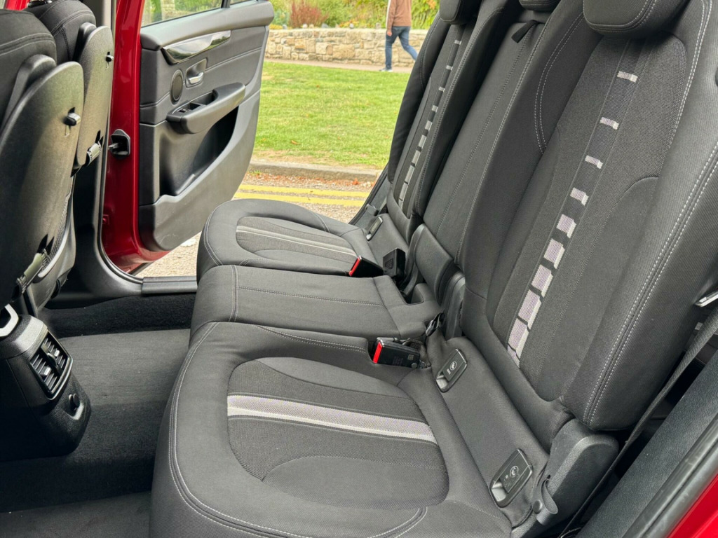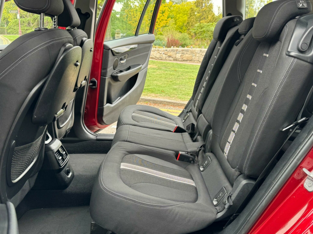 Boasting a full service history and only two previous owners, this 2016 BMW 2 Series Gran Tourer 218i Sport offers excellent provenance. This Euro 6 compliant model features a 1.5 litre petrol engine and a versatile 7 seat layout, making it ideal for families. The Sport trim includes a Driver Comfort Package with front parking sensors and a reversing assist camera with rear parking sensors, all designed to make parking easier. Electric folding door mirrors and run flat tyres are also fitted for added convenience and safety.This BMW 2 Series Gran Tourer excels with a remarkable fuel economy of 53 miles per gallon, alongside low CO2 emissions and a low insurance group, indicating it is more economical to run than many similar vehicles. Its 0-62mph acceleration in 9.8 seconds provides a responsive drive, while the large boot space ensures ample room for luggage or shopping. A 12 month MOT will be provided on purchase, offering peace of mind. iver comfort package, reversing assist camera, cruise control with brake function, door mirrors - electric folding, run flat tyres, race cloth - anthracite with grey highlight, 12v power socket - centre console, 12v power socket - passenger footwell, 12v power socket - rear of centre console, 17in alloy wheels - star spoke - 379, 40-20-40 split folding rear seats, 6.5in colour display screen, abs - anti lock braking system, active guard, air conditioning - automatic with two-zone control, airbags - curtain head - front, airbags - curtain head - rear, airbags - driver, airbags - front side, airbags - passenger, airbags - passenger deactivation, alarm system thatcham 1 with remote control, armrest - front centre, armrest - front and rear integrated into door trim, armrest - front with storage compartment, automatic lock when driving away selectable, auxiliary input, bmw emergency call, bmw mobility system, bmw navigation, bmw professional radio - single cd and mp3, bmw teleservices, battery safety cut off, bluetooth - audio streaming - with compatible devices, bluetooth hands free facility, brake assist, brake drying, brake pad wear indicator - front and rear, brake readiness, bumper - rear with high gloss black finisher, bumpers - body colour, central locking - remote, central locking switch, check control warning system, child proof locking system - rear doors, child seat isofix attachment - front, child seat isofix attachment - rear x2, city collision mitigation, comfort go keyless engine start, contrast stitching - instrument panel - in red or grey to match seat upholstery, crash sensor - activating central locking-hazard warning lights-fuel cut off, cup holders x2, dab digital radio, dsc - dynamic stability control plus, dtc - dynamic traction control, daytime running lights - led, door handles - body colour, door mirrors - body coloured, door mirrors - drivers aspheric, door mirrors - electric and heated, door mirrors - integrated indicator side repeaters, door sill finishers - front - exclusive, drive performance control - eco pro - comfort - sport - sport plus, dynamic brake lights, electric windows - front and rear with open-close fingertip control, electro mechanical parking brake, electronic differential lock, engine immobiliser, exhaust tailpipe - chrome - single - round - left, extended lighting, extended storage, first aid kit, floor mats - velour, follow me home headlight function, footwell lights - front and rear - led, forward collision warning system, front air inlet with high-gloss black finisher, front fog lights, glove compartment, glove compartment - illuminated, grab handles - integrated in roof lining x4, halogen headlights, headlights - automatic activation, headlights - beam throw control, heat protection glazing with green tint, heated windscreen washer jets, high level third brake light, hill start assist, interior lighting - front and rear centre, interior trim - high-gloss black with pearl chrome finisher, kidney grille - 10x extra-wide high-gloss black fronted vertical slats, led ambient lighting in door trim, lights-on audio warning, locking wheel bolts, luggage compartment - additional storage on each side and under floor, luggage compartment - light, luggage compartment - storage tray, model designation, non smoker package, obc - on-board computer, optimum shift indicator, outside temperature display with ice warning, pdc - park distance control - rear, performance control, personal profile - extended, power socket - 12v in luggage compartment, rain sensor, reading lights - front - led, rear fog light, rear folding tray tables, rear seat headrests - 3x second row and 2x third row, rear window wiper with wash-wipe system, remote control with integrated key with silver highlight, remote opening - tailgate luggage compartment, roof mouldings - body colour, roof rails - black, seat belt security check for driver and front passenger, seat belts - rear - three with inertia reel, seats - 60-40 sliding bench, seats - driver manual adjustment, seats - front sports, seats - passenger manual adjustment, seats - sliding rear bench, seats - third-row fully foldable into boot floor, servotronic steering, shark fin aerial, side impact protection, speakers x6, speed limit function, sport multi-function leather steering wheel - three spoke, steering column - reach and rake manual adjustment, steering wheel - multifunction controls, storage compartment - below drivers and passengers seat, storage nets on seat backrests, sun visors with vanity mirrors and ticket holder, tmc - traffic information for lifetime of vehicle, tpms - tyre pressure monitoring system, tailgate operation - powered, third-row seating, trim designation deletion, usb audio interface, warning triangle, welcome light