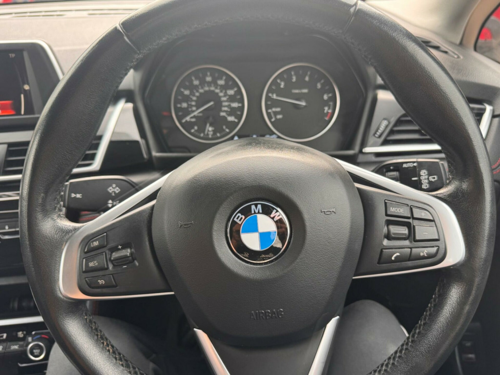 BMW 218i Petrol Automatic 1.5L New one year MOTFull service historyRemote Central Locking Rear and Front Parking sensorsCruise ControlBuilt in Navigation Bluetooth Phone connection Climate Control Alloy wheelsULEZ compliant All electric windowsElectric tailgate Good condition for the age Part Exchange and test drive welcome.All our cars come with warranty. w navigation package, driver comfort package, cruise control with brake function, extended lighting, race cloth - anthracite with red highlight, 12v power socket - centre console, 12v power socket - passenger footwell, 17in alloy wheels - star spoke - 379, 40-20-40 split folding rear seats, 6.5in colour display screen, abs - anti lock braking system, air conditioning - automatic with two-zone control, airbags - curtain head protection system, airbags - driver, airbags - front side, airbags - passenger, airbags - passenger deactivation, alarm - thatcham cat 1 and immobiliser, armrest - front centre, armrest - front and rear integrated into door trim, auxiliary input, bmw emergency call, bmw mobility system, bmw professional radio - single cd and mp3, bmw teleservices, bluetooth hands free with audio streaming, bluetooth hands free with usb audio interface, brake assist, brake drying, brake pad wear indicator - front and rear, bumper - rear with black high gloss finisher, bumpers - body colour, central locking - remote, check control warning system, child proof locking system - rear doors, child seat isofix attachment - front, child seat isofix attachment - rear x2, city collision mitigation, crash sensor - activating central locking-hazard warning lights-fuel cut off, cup holders - front, dab digital radio, dsc - dynamic stability control plus, dtc - dynamic traction control, daytime running lights - led, door handles - body colour, door mirrors - electric and heated, drive performance control with eco pro - comfort and sport modes, dynamic brake lights, eco pro mode, electric windows - front and rear with open-close fingertip control, electrically operated handbrake - parking brake, electronic differential lock, engine immobiliser, first aid kit, floor mats - velour, follow me home headlight function, forward collision warning system, front fog lights, grab handles - in roof lining x4, halogen headlights, head restraints - front and rear, headlights - automatic activation, headlights - beam throw control, heat protection glazing with green tint, heated windscreen washer jets, high level third brake light, hill start assist, interior trim - high-gloss black with pearl chrome finisher, kidney grille - chrome with black vertical slats, lights-on audio warning, locking wheel bolts, model designation deletion, multifunction controls for steering wheel, obc - on-board computer, optimum shift indicator, pdc - park distance control - rear, performance control, personal profile, rain sensor with automatic headlight activation, seats - front - manual height adjustment, seats - sliding rear bench, servotronic steering, shark fin aerial, side impact protection, speed limit function, sport seats - front, start-stop button with comfort go keyless engine start, steering column with manual reach and rake adjustment, steering wheel - black leather - sport - three spoke, sun visors with vanity mirrors and ticket holder, tpms - tyre pressure monitoring system, tailgate operation - powered, trim designation deletion, usb audio interface, warning triangle, welcome lighting