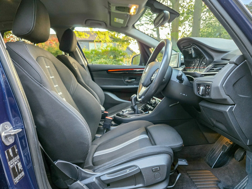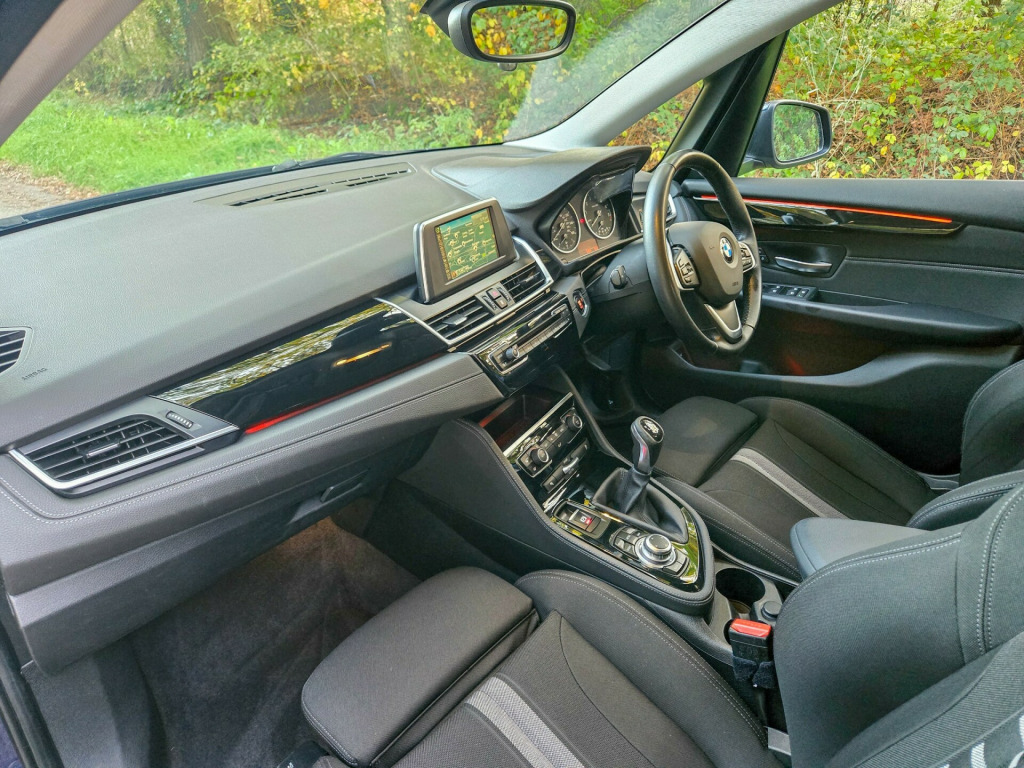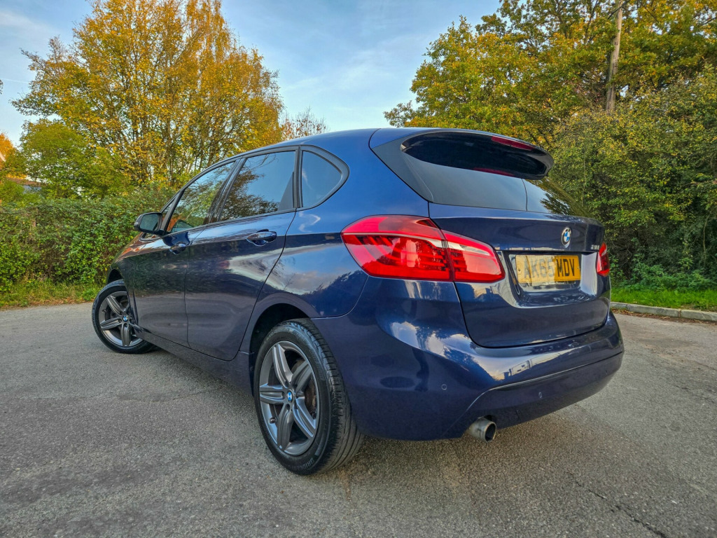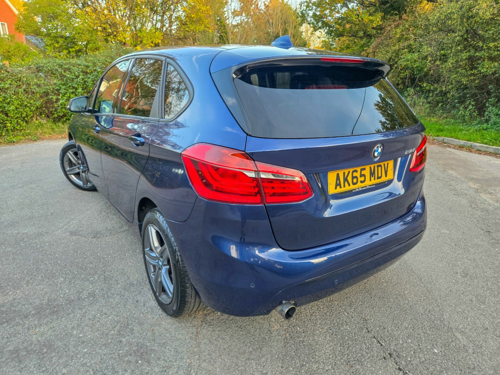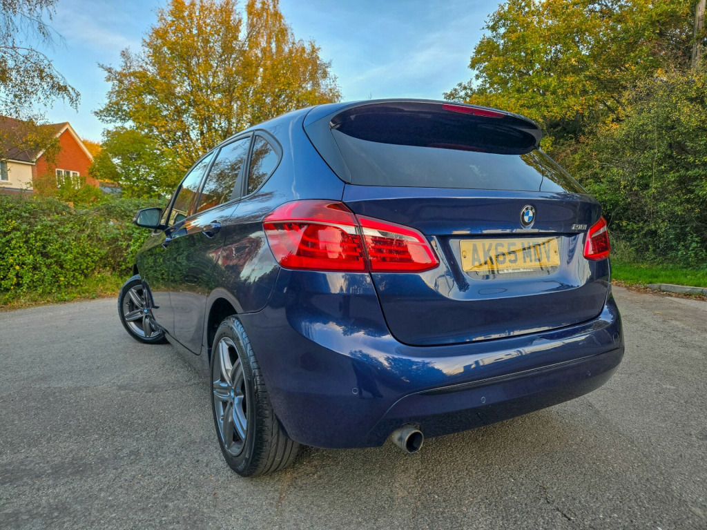 JUST SERVICED,LONG MOT,,FINANCE WELCOME,READY TO GOThis 2015 BMW 2 Series Active Tourer 1.5 218i Sport MPV with 89998 miles on the clock is a reliable, spacious vehicle perfect for family outings. Running on Petrol, this 5-seater, 4-door car is ULEZ compliant and comes with an MOT valid until 25/08/2026. Finished in a stunning Mediterranean Blue, this Euro 6 (s/s) model also includes sought-after features such as Bike Rack Preparation, Electric Folding Door Mirrors, Automatically Dimming Folding Door Mirrors, and Run Flat Tyres, ensuring a comfortable and safe journey for everyone aboard. Don't miss out on this versatile, top-quality MPV that offers both style and practicality., v power socket - centre console, 12v power socket - passenger footwell, 12v power socket - rear of centre console, 6.5in colour display screen, auxiliary input, bmw emergency call, bmw navigation, bmw professional radio - single cd and mp3, bmw teleservices, bluetooth hands free with audio streaming, bluetooth hands free with usb audio interface, dab digital radio, power socket - 12v in luggage compartment, shark fin aerial, tmc - traffic information for lifetime of vehicle, usb audio interface, 17in alloy wheels - star spoke - 379, bmw mobility system, bumper - rear with black high gloss finisher, bumpers - body colour, door handles - body colour, door mirrors - electric and heated, electric windows - front and rear with open-close fingertip control, heat protection glazing with green tint, heated windscreen washer jets, kidney grille - extra wide high gloss black vertical slats, locking wheel bolts, welcome lighting, 40-20-40 split folding rear seats, air conditioning - automatic with two-zone control, armrest - front centre, armrest - front and rear integrated into door trim, cup holders - front, extended storage, floor mats - velour, grab handles - in roof lining x4, head restraints - front and rear, interior trim - high-gloss black with pearl chrome finisher, luggage compartment - lashing eyes x2, model designation deletion - side, multifunction controls for steering wheel, personal profile, rain sensor with automatic headlight activation, seats - front - manual height adjustment, seats - sliding rear bench, sport seats - front, start-stop button with comfort go keyless engine start, steering column with manual reach and rake adjustment, steering wheel - black leather - sport - three spoke, storage - compartment in instrument panel on drivers side with folding cover, storage compartment - trays in centre console, storage nets on seat backrests, sun visors with vanity mirrors and ticket holder, tailgate operation - powered, abs - anti lock braking system, airbags - curtain head protection system, airbags - driver, airbags - front side, airbags - passenger, airbags - passenger deactivation, alarm - thatcham cat 1 and immobiliser, brake assist, brake drying, central locking - remote, child proof locking system - rear doors, child seat isofix attachment - front, child seat isofix attachment - rear x2, city collision mitigation, crash sensor - activating central locking-hazard warning lights-fuel cut off, dsc - dynamic stability control plus, dtc - dynamic traction control, dynamic brake lights, electrically operated handbrake - parking brake, engine immobiliser, first aid kit, forward collision warning system, hill start assist, side impact protection, speed limit function, warning triangle, brake pad wear indicator - front and rear, check control warning system, drive performance control with eco pro - comfort and sport modes, eco pro mode, electronic differential lock, lights-on audio warning, obc - on-board computer, optimum shift indicator, pdc - park distance control - rear, performance control, servotronic steering, tpms - tyre pressure monitoring system, idrive controller with shortcut buttons, daytime running lights - led, follow me home headlight function, front fog lights, halogen headlights, headlights - automatic activation, headlights - beam throw control, high level third brake light