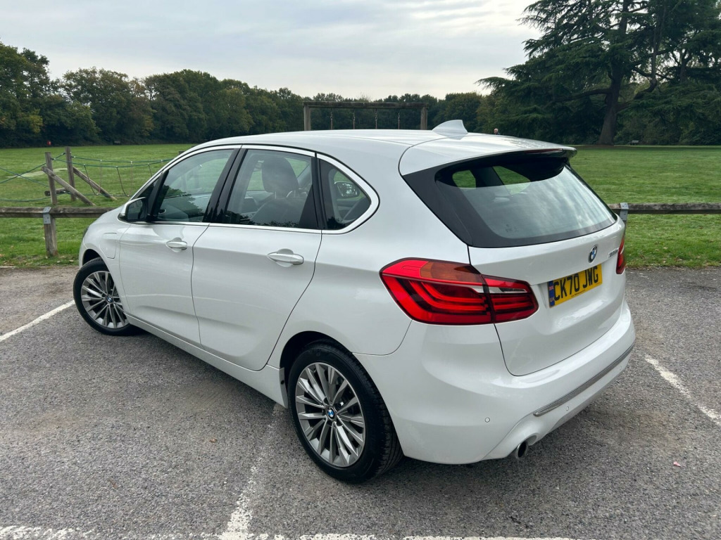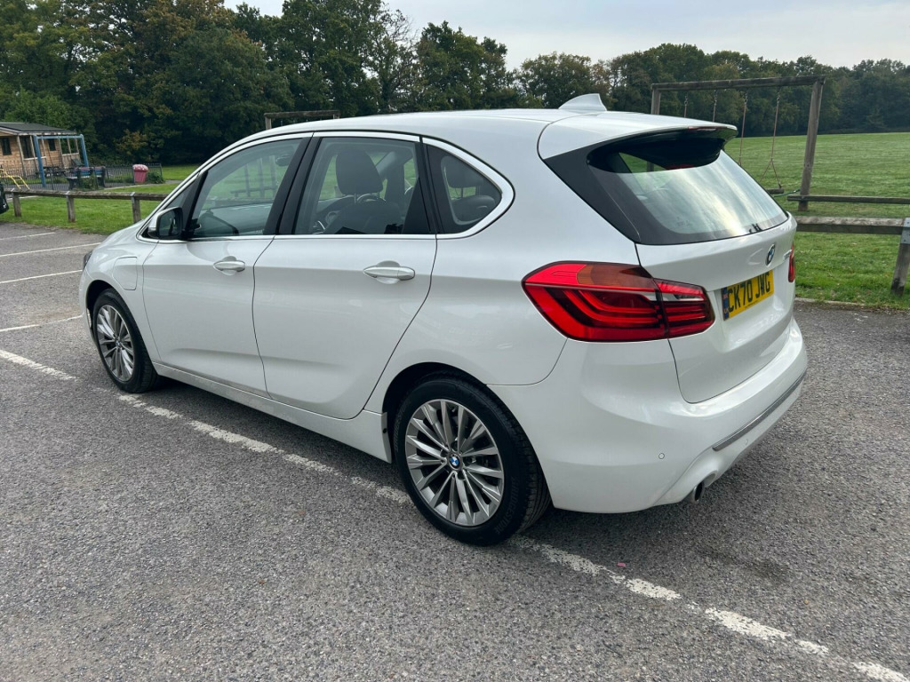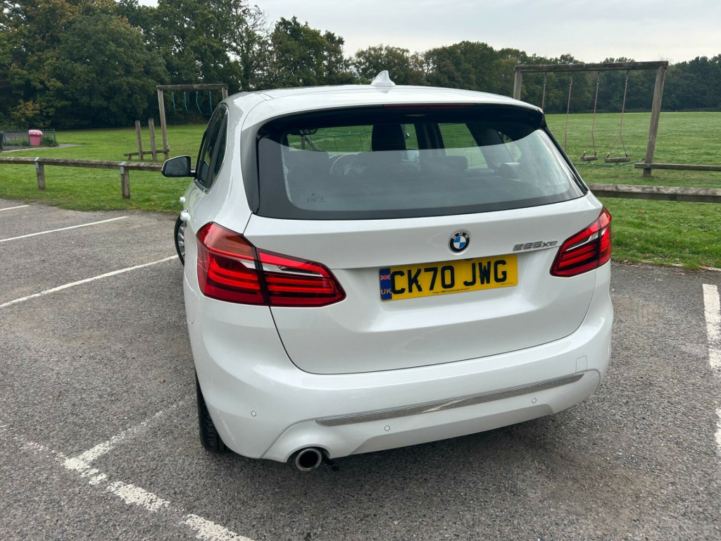 This 2020 BMW 2 Series Active Tourer 225xe Luxury offers a clear vehicle history, providing peace of mind for its next owner. This Four Wheel Drive model features a 1.5L Petrol Plug in Hybrid engine and meets Euro 6 emission standards. It comes equipped with the Luxury trim and benefits from the Tech Pack I, which includes Bluetooth connectivity, LED headlights, a rear camera for parking assistance, and wireless phone charging. The Comfort Pack I adds heated seats, and the vehicle also boasts automatic two zone climate control, a rain sensor that automatically activates the headlights, and rear park distance control with a rear parking sensor.The BMW 2 Series Active Tourer 225xe Luxury is designed for practicality and modern driving. Its plug in hybrid technology offers an efficient way to travel, complemented by the all weather capability of its Four Wheel Drive system. The inclusion of features like LED headlights and automatic climate control enhances both visibility and comfort, setting it apart from other vehicles in its class. The integrated parking assistance systems, including a rear camera and sensors, make manoeuvring in tight spaces straightforward. v power socket in centre console front with blanking plug, 17in alloy wheels - multi-spoke - 547, active guard, air conditioning - automatic with two-zone control, airbags, alarm system thatcham category 1 with remote control and engine immobiliser - ews iv, armrest front - free standing and can be fixed in five positions, automatic tailgate, automatically dimming rear view mirror, bmw connecteddrive, bmw connecteddrive online services, bmw emergency call, bmw navigation, bmw professional radio with single cd player - with mp3 playback compatibility, bmw teleservices, battery safety cut off, bluetooth hands free with usb audio interface, brake pad wear indicator - front and rear, bumper system front and rear - replaceable deformation elements for impacts up to 9mph, central locking switch - doors - fuel filler cap - luggage compartment, check control warning system for monitoring of lights and door-luggage compartment open warning, child proof locking system - rear doors, child seat isofix attachment for the two outer rear seats and front passenger seat, condition based service, connected edrive service, contrast stitching - instrument panel, crash sensor - activating central locking release - hazard warning lights - battery safety cut off - interior lighting, cruise control with brake function, cup holders x2, dab digital radio, dsc - dynamic stability control plus, direction indicator - side repeaters - integrated in exterior mirrors, direction indicator lights - clear lenses, door sill finishers - exclusive with bmw designation - front, drive performance control with eco pro - comfort and sport modes, dynamic brake lights, edlc - electronic differential lock control, eps - electric power steering, electric engine installed under rear seats driving rear wheels, electric windows - front and rear with open-close fingertip control - anti-trap facility and comfort closing function, electrically operated parking brake, exhaust tailpipe - chrome finisher - single round left, extended storage, exterior mirrors electrically adjustable, exterior parts in body colour, exterior trim - chromeline, first aid kit and warning triangle, floor mats - velour, front air inlet with chrome finisher, glove box with light, grab handles - integrated in roof lining x4, halogen headlights, heat protection glazing with green tint, high level third brake light, illuminated charging socket with visual display of charge status, instrument cluster, interior lighting - front centre over interior mirror and rear centre, interior trim - fineline stream wood with pearl chrome finisher, kidney grille - 12x chrome fronted vertical slats, led ambient lighting in door trim, lights-on warning by audio warning signal when ignition is switched off, lithium-ion high-voltage battery - 7.7 kwh fitted under rear seats, locking wheel bolts, luggage compartment - light, luggage compartment access via bmw roundel, manual 40-20-40 split folding rear seat with removal of 60-40 sliding bench, mobility tyre sealing system, model designation, multifunction controls for steering wheel, non smoker package including open storage compartment, obc - on-board computer, optimum shift indicator, pdc - park distance control - rear, performance control, personal profile - extended, pre-conditioning of battery for optimum operating temperature, pre-conditioning of interior via bmw remote app or setting time within idrive menu, rain sensor with automatic headlight activation, real time traffic information, rear bumper with chrome finisher, rear fog light, rear seat headrests - three, rear window aerial, rear window wiper - integrated under roof spoiler, remote control including integrated key - 2, remote control with integrated key with silver highlight, reversing light in rear light clusters, seat belt security check for driver and front passenger, servotronic steering, shark fin, side armrests - front and rear integrated into door trim, side impact protection, sport multi-function leather steering wheel - three spoke, standard charge cable - 2.4kw ac - 5 metres with storage under bonnet, standard seat for driver and passenger with manual adjustment, start-stop button with comfort go keyless engine start and auto start-stop deactivation button, steering-wheel column adjustment - manual, sun visors with vanity mirrors and ticket holder, tpms - tyre pressure monitoring system, three-point seat belts - all seats, twin horns, twin usb sockets in rear of centre console, tyres - reduced rolling resistance, visible vin, welcome light, edrive button, edrive designation - c pillar, edrive specific displays in instrument cluster and cid, xdrive electric drive - after activation of electric motor - common drive via all four wheels, tech pack i, comfort pack i, perforated dakota leather - black with grey 