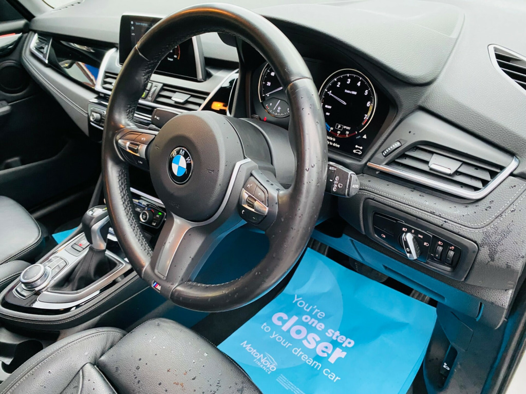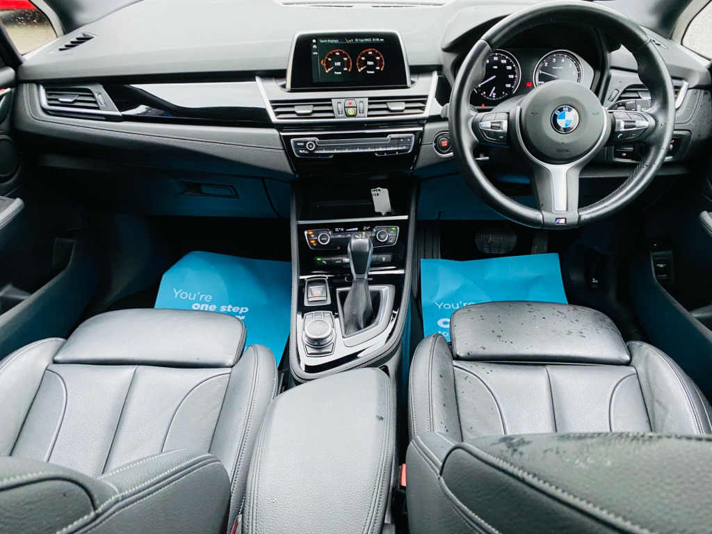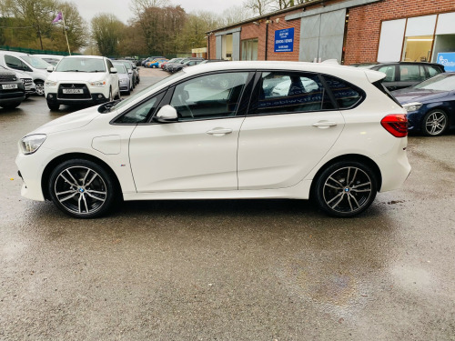 This 2021 BMW 2 Series Active Tourer is a sleek and efficient MPV with only 22500 miles on the clock. Powered by a 1.5-litre Petrol Plug-in Hybrid engine, this 5-door vehicle offers the perfect blend of performance and fuel economy, with an MOT that expires on 25/03/2026. The 5-seater is ULEZ compliant and comes with a range of convenient features, including Alpine White exterior, High-Gloss Black interior trim with Pearl Chrome Finisher, and Perforated Dakota Leather seats in Black with Grey Stitching. With 12V Power Socket in Centre Console Front with Blanking Plug and Apple CarPlay, this auto 4WD Euro 6 (s/s) (220 ps) is ready for any journey.- Good Service History - 2 keys - Will be supplied with a 12 month MOT - Will Be Serviced Once Purchased - Part Exchange Welcome - Extended Warranty Available- Finance Available , v power socket in centre console front with blanking plug, apple carplay, bmw connecteddrive, bmw connecteddrive online services, bmw emergency call, bmw navigation, bmw professional radio, bmw teleservices, bluetooth hands free with usb audio interface, connected edrive service, dab digital radio, real time traffic information, rear window aerial, shark fin, 18in alloy wheels - m double-spoke - 486, direction indicator lights - clear lenses, direction indicator side lights integrated in exterior mirrors, door mirrors - electric folding, electric windows - front and rear with open-close fingertip control - anti-trap facility and comfort closing function, exhaust tailpipe - chrome finisher - single round left, exterior parts in body colour, exterior trim - high-gloss shadowline, heat protection glazing with green tint, kidney grille - extra wide high gloss black vertical slats, locking wheel bolts, m aerodynamic bodystyling, m logo designation chrome - side, m sport package, model designation, reversing light in rear light clusters, run-flat tyres, tyres - reduced rolling resistance, edrive designation - c pillar, 2.4 kw ac charging, brake energy regeneration, brake pad wear indicator - front and rear, condition based service, cruise control with brake function, drive performance control with eco pro - comfort and sport modes, eco pro mode, illuminated charging socket with visual display of charge status, obc - on-board computer, optimum shift indicator, pdc - park distance control - front and rear, performance control, pre-conditioning of battery for optimum operating temperature, pre-conditioning of interior via bmw remote app or setting time within idrive menu, servotronic steering, suspension, tpms - tyre pressure monitoring system, edrive button, edrive specific displays in instrument cluster and cid, active guard, airbags, alarm system thatcham category 1 with remote control and engine immobiliser - ews iv, battery safety cut off, bumper system front and rear - replaceable deformation elements for impacts up to 9mph, child proof locking system - rear doors, child seat isofix attachment for the two outer rear seats and front passenger seat, crash sensor - activating central locking release - hazard warning lights - battery safety cut off - interior lighting, dsc - dynamic stability control plus, dynamic brake lights, edlc - electronic differential lock control, electrically operated parking brake, first aid kit and warning triangle, rear window wiper - integrated under roof spoiler, remote control including integrated key - 2, remote control with integrated key with silver highlight and m designation, seat belt security check for driver and front passenger, side impact protection, three-point seat belts - all seats, visible vin, edrive exterior sound, air conditioning - automatic with two-zone control, air curtain, ambiance lighting - switchable, armrest front - free standing and can be fixed in five positions, automatic tailgate, automatically dimming rear view mirror, central locking switch - doors - fuel filler cap - luggage compartment, contrast stitching - instrument panel, cup holders x2, door sill finishers - exclusive with bmw designation - front, extended storage, floor mats - velour, glove box with light, grab handles - integrated in roof lining x4, headlining - anthracite, instrument cluster, interior lighting - front centre over interior mirror and rear centre, interior trim - aluminium hexagon with pearl chrome finisher, luggage compartment - light, luggage compartment access via bmw roundel, m sport steering wheel, manual 40-20-40 split folding rear seat with removal of 60-40 sliding bench, multifunction controls for steering wheel, non smoker package including open storage compartment, personal profile - extended, rain sensor with automatic headlight activation, rear fog light, rear seat headrests - three, side armrests - front and rear integrated into door trim, sport seats - front, start-stop button with comfort go keyless engine start and auto start-stop deactivation button, steering-wheel column adjustment - manual, sun visors with vanity mirrors and ticket holder, twin horns, welcome light, check control warning system for monitoring of lights and door-luggage compartment open warning, high level third brake light, led headlights, lights-on warning by audio warning signal when ignition is switched off