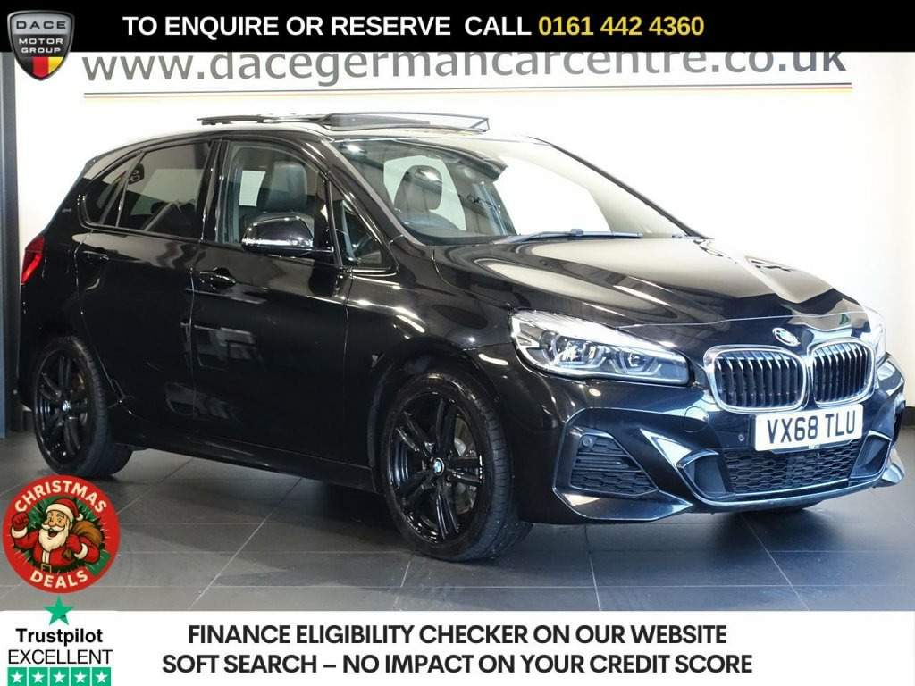 THIS BMW 2 SERIES ACTIVE TOURER M SPORT PREMIUM IS FINISHED IN A STUNNING BLACK SAPPHIRE AND HAS BLACK LEATHER INTERIOR COMPLIMENTED WITH ALLOY WHEELS. IT COMES WITH SERVICE HISTORY + £2590 OPTIONAL EXTRAS + ELECTRIC GLASS ROOF + HEATED FRONT SEATS AND STEERING WHEEL + DRIVER ELECTRIC MEMORY ADJUSTMENT + SATELLITE NAVIGATION + CRUISE CONTROL WITH BRAKE FUNCTION + FRONT AND REAR PARKING SENSORS + DRIVE PERFORMANCE CONTROL + DAB DIGITAL RADIO + BLUETOOTH CONNECTIVITY + AUTO LIGHTS AND WIPERS + MULTI FUNCTION STEERING WHEEL + DUAL CLIMATE CONTROL + AIR CONDITIONING + ELECTRIC WINDOWS + ELECTRIC DOOR MIRRORS + RAIN SENSING WIPERS. ------------FINANCE------------ ***NOT SURE YOU'RE ELIGIBLE FOR CAR FINANCE? *** CHECK TODAY USING THE FREE CAR FINANCE CHECKER ON OUR WEBSITE.** Dace Motor Group have a dedicated team of finance experts waiting to help with your enquiry. Over the past 30 years we have forged relationships with the country's largest and best finance houses. We are specialists in Hire Purchase (HP), Personal Contract Purchase (PCP) as well as assisting those with poor credit or previous credit problems. ------------ABOUT US------------ - At Dace German Car Centre, we are very proud to have been named the first Trading Standards Approved Car Retailer, with process and procedures developed with and applauded by them. We do recommend that customers RESERVE their choice of vehicle prior to making their trip to avoid potentially missing it. Visit our websi 12V Power Socket - Passenger Footwell, 18in Alloy Wheels - M Double-Spoke - 486, Active Guard, Air Conditioning - Automatic with Two-Zo, Air Curtain, Airbags, Alarm System Thatcham Category 1 with Re, Ambiance Lighting - Switchable, Armrest Front - Free Standing and can be, Automatic Tailgate, Battery Safety Cut Off, Black Sapphire, Bluetooth Hands Free with USB Audio Inte, BMW ConnectedDrive, BMW ConnectedDrive Online Services, BMW Emergency Call, BMW Navigation, BMW Professional Radio with Single CD Pl, BMW TeleServices, Brake Pad Wear Indicator - Front and Rea, Bumper System Front and Rear - Replaceab, Central Locking Switch - Doors - Fuel Fi, Check Control Warning System for Monitor, Chi
