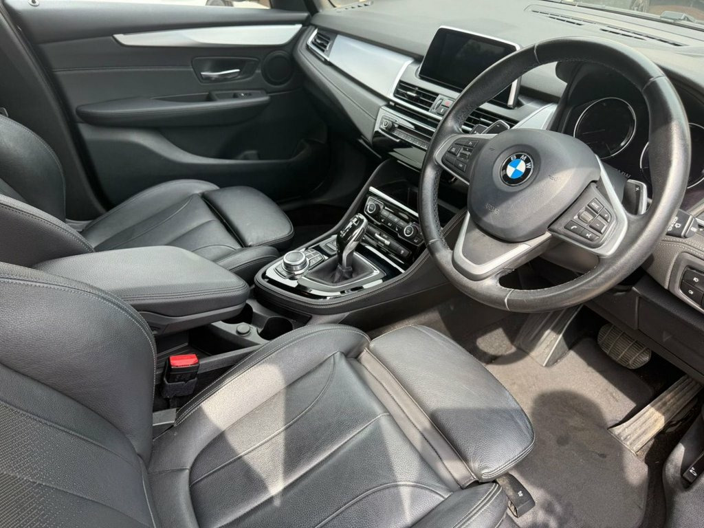 Finance from 9.9% APR. 2 owners from new, Full BMW Service history. EURO 6 BMW 218d Luxury Active Tourer automatic. With its high seat position, this 2 wheel drive 218d Luxury is finished in Mineral Grey Metallic with Black Dakota Heated comfort pack MOT Advisories will be completed for new keeper. Leather sports seats. It is fitted with detachable tow bar, Roof Rails, BMW Navigation, Bluetooth, remote locking, electric windows and power folding mirrors, Dual zone climate control Air con, Cruise Control, PDC Front and Rear park sensors, Auto lights, Auto wipers, Power Boot lid, tinted glass, DAB Stereo with CD, USB & Aux, 17" Double Spoke Alloys plus more. It has 2 keys and comes with a full BMW service history, having been serviced at 15194/21503/34907/48968/65878 miles. It's current MOT is until JULY 2026. We will supply it with a service, MOT if required & 6 months insured RAC warranty with 12 months Recovery assistance. Finance is available from 9.9% APR and extended warranties are available. This 218d Benefits from a softer ride than its M Sport counterpart. It has a Superb BMW service history and has been well looked after and maintained. Diesel Euro 6 Engine. 12V Power Socket - Centre Console, 12V Power Socket - Passenger Footwell, 12V Power Socket in Centre Console Rear , 17in Alloy Wheels - Multi-Spoke - 547, 17in Alloy Wheels - Multi-Spoke - 547 wi, 40-20-40 Electrically Split Folding Rear, Active Guard, Air Conditioning - Automatic with Two-Zo, Air Curtain, Airbags, Alarm System Thatcham Category 1 with Re, Armrest Front - Free Standing and can be, Automatic Tailgate, Battery Safety Cut Off, Bluetooth Hands Free with USB Audio Inte, BMW ConnectedDrive, BMW ConnectedDrive Online Services, BMW Emergency Call, BMW Navigation, BMW Professional Radio with Single CD Pl, BMW TeleServices, Brake Pad Wear Indicator - Front and Rea, Bumper System Front