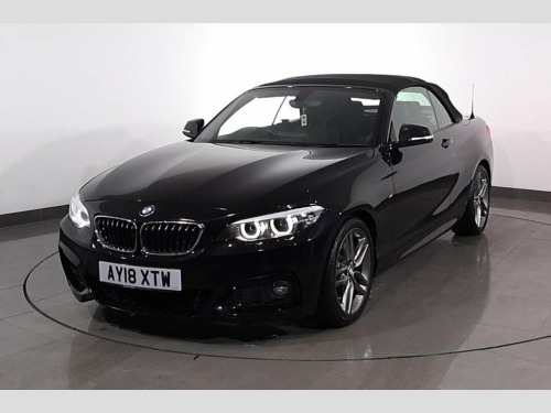 This desirable BMW 218d M Sport Convertible finished in Black Sapphire looks fantastic complemented by 18 inch Ferric Grey Alloy Wheels, LED Headlights and M Sport Body Styling. Find your way with integrated SATELLITE NAVIGATION with LCD Display. Park in ease with REAR PARKING SENSORS. Keep connected with BLUETOOTH Phone System with USB port and Audio Streaming. Listen to your music through DAB Digital Radio. Comfortable to drive with Multifunctional Steering Wheel and Auto CLIMATE CONTROLLED AIR CONDITIONING. Well equipped with Auto Headlights and Rain-Activated Wipers. Also fitted with ISOFIX seats, Drive Performance Control, Switchable Ambient Lighting, Alarm, Immobiliser and Remote Door Locking with 2 x keys. Buy in confidence with SERVICE HISTORY with 7 x Documented Services. BMW Navigation, PDC - Park Distance Control - Rear, Bluetooth Hands-Free Facility with USB A, DAB Digital Radio, Air Conditioning - Automatic - Single Zo, 18in Alloy Wheels - M Double Spoke in Fe, Black Sapphire, M Aerodynamic Bodystyling, LED Headlights, Rain Sensor with Automatic Headlight Act, Child Seat ISOFIX Attachment for the Two, Multifunction Controls for Steering Whee, Drive Performance Control - ECO PRO - Co, Ambient Lighting - Switchable, Alarm System - Thatcham 1 with Remote Co, 12V Power Socket - Centre Console, 12V Power Socket - Passenger Footwell, Access to BMW Connected Plus (12 Month S, Acoustic Soft-Top in Anthracite, Active Differential Brake - ADB Sport - , Airbags, Arm