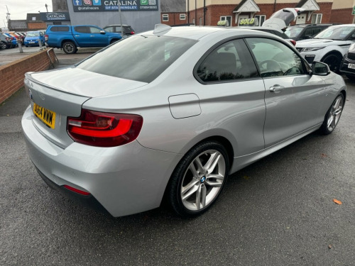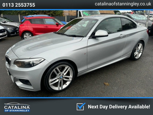 BMW 2 Series 2.0 218d M Sport – Low Miles | Great History | Sporty Coupe Diesel | Manual | Euro 6 | 143 PS | 79,801 Miles | MOT Until 26-09-2026 This BMW 2 Series 2.0 218d M Sport Coupe combines sporty performance with everyday practicality, offering the perfect balance of power, style, and efficiency. With just 79,801 miles from new and only two owners, it's a well-cared-for example of BMW's driver-focused coupe. Powered by a 2.0-litre diesel engine producing 143 PS, paired with a manual transmission, it delivers sharp handling and strong performance while maintaining impressive fuel economy. The car has been serviced six times up to 79k, showcasing a solid maintenance record for complete peace of mind. Finished in silver with dark cloth interior, the M Sport trim adds a sporty edge with upgraded styling, suspension, and alloy wheels, while Bluetooth connectivity enhances comfort and convenience. A stylish and reliable coupe that's enjoyable to drive and economical to run, this 218d M Sport is an excellent example of BMW's renowned build quality and performance. 2014 (64) BMW 2 SERIES 2.0 218d M Sport Coupe 2dr is offered to you for sale in Pudsey, Leeds, finished in silver, this used BMW 2 SERIES 2.0 218d M Sport Coupe 2dr is one of many handpicked used vehicles that used car dealer, Catalina of Stanningley, Pudsey, Leeds have available for sale. 12V Power Socket - Centre Console, 12V Power Socket - Passenger Footwell, 18in Alloy Wheels - M Double Spoke - 461, 6.5in Colour Display Screen, ABS - Anti Lock Braking System, ASC - Automatic Stability Control, Air Conditioning - Automatic - Single Zo, Airbags - Driver, Airbags - Front Side, Airbags - Head - Front and Rear, Airbags - Passenger, Airbags - Passenger Deactivation, Alarm System Thatcham 1 with Remote Cont, Ambient Light - Front, Ambient Lighting - Switchable BMW Classi, Armrest - Front and Rear Integrated into, Armrest - Front with Sliding Adjustment, Automatic Lock when Driving Away Selecta, Auxiliary Input, BMW Emergency Call, BMW Professional Radio - Single CD and M, BMW Tel