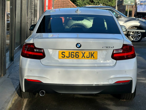 Discover this exceptional 2016 BMW 2 Series 218d M Sport, boasting remarkably low mileage for its age at just 62,000 miles. This stylish coupe features the desirable M Sport trim, enhanced by 18in M Double Spoke alloy wheels in Ferric Grey. Practicality meets technology with automatic headlights, a single zone climate control air conditioning system, and Bluetooth connectivity for hands free calls and audio streaming.This BMW 218d M Sport offers significant advantages, indicated by its impressive fuel economy of 64 mpg, placing it in a low insurance group and benefiting from low CO2 emissions, making it a more economical choice compared to similar vehicles. Its Euro 6 compliant 2.0L diesel engine ensures a balance of performance and efficiency.. 12V Power Socket - Centre Console, 12V Power Socket - Passenger Footwell, 18in Alloy Wheels - M Star Spoke - 461M, 6.5in Colour Display Screen, ABS - Anti Lock Braking System, ADB Sport - Active Differential Brake, ASC - Automatic Stability Control, Air Conditioning - Automatic - Single Zone, Air Microfilter, Airbags - Curtain Head - Front, Airbags - Curtain Head - Rear, Airbags - Driver, Airbags - Front Side, Airbags - Passenger, Airbags - Passenger Deactivation, Alarm System Thatcham 1 with Remote Control, Ambient Lighting - Switchable, Armrest - Front and Rear Integrated into Door Trim, Armrest - Front with Sliding Adjustment, Auto Activation of Interior Lights via Door Opening-Ignition or Remote Key, Automatic Lock when Driving Away Selectable, Auxiliary Input, BMW Emergency Call, BMW Navigation System, BMW Professional Radio - Single CD and MP3, BMW TeleServices, Battery Safety Cut Off, Belt Force Limiters - Front, Bluetooth - Audio Streaming - with Compatible Devices, Bluetooth Hands Free Facility, Brake Assist, Brake Drying, Brake Pad Wear Indicator - Front and Rear, Brake Readiness, Bumper System Front and Rear - Replaceable Deformation Elements for Impacts Up to 9mph, Bumpers - Body Colour, CBC - Cornering Brake Control, Central Locking - Remote, Central Locking Switch - Doors - Fuel Filler Cap - Luggage Compartment, Centre Console - Aluminium Hexagon, Check Control Warning System, Child Seat ISOFIX Attachment - Rear x2, Comfort Go Keyless Engine Start, Crash Sensor, Crash Sensor - Activating Central Locking-Hazard Warning Lights-Fuel Cut Off, Cup Holders - Front x2, DAB Digital Radio, DBC - Dynamic Brake Control, DSC - Dynamic Stability Control Plus, DTC - Dynamic Traction Control, Daytime Running Lights, Door Handles - Body Colour, Door Mirrors - Body Coloured Housing, Door Mirrors - Electric and Heated, Door Mirrors - Integrated Indicators, Door Pull Handle - Aluminium Hexagon, Door Sill Finishers - M Designation, Drive Performance Control - ECO PRO - Comfort - Sport - Sport Plus, Dynamic Brake Lights, Electric Windows - Front and Rear with Open-Close Fingertip Control, Engine Immobiliser, Exhaust Tailpipe - Chrome - Single - Round - Left, Exterior Trim - High-Gloss Shadowline, First Aid Kit, Floor Mats - Velour, Follow Me Home Headlight Function, Front Fog Lights, Gear Knob - Leather, Gearshift Lever with M Designation, Glove Box Opener with Chrome Trim, Glove Compartment, Halogen Headlights, Handbrake - Leather, Head Restraints - Rear and Folding, Headlights - Automatic Activation, Headlights - Beam Throw Control, Headlining - Anthracite, Heat Protection Glazing with Green Tint, Heated Windscreen Washer Jets, High Level Third Brake Light, Hill Start Assist, Incorrect Fuelling Protection System, Indicator Lenses - Clear, Instrument Panel - Aluminium Hexagon, Interior Lighting - Front and Rear Centre, Interior Trim - Aluminium Hexagon with Estoril Blue Matt Finisher, Kidney Grille - Chrome with Eight Extra-Wide High-Gloss Black Vertical Slats, LED Rear Light Bars, Lights-on Audio Warning, Locking Wheel Bolts, Luggage Compartment - Electric Unlocking via the Keys Remote Control, Luggage Compartment - Lashing Eyes x2, Luggage Compartment - Light, Luggage Compartment Access via BMW Roundel, M Aerodynamic Bodystyling, M Logo Designation on Front Wings in Chrome, M Logo Designation on Front Wings in Unique Dark Chrome, M Sport Package, M Sport Suspension, Multifunction Controls for Steering Wheel, OBC - On-Board Computer, Optimum Shift Indicator, Outside Temperature Display with Ice Warning, PDC - Park Distance Control - Rear, Personal Profile, Power Steering - Electric, Pyrotechnic Belt Tensioners - Front, Rain Sensor, Rear Bumper with Chrome Finisher, Rear Window Aerial, Remote Control with Integrated Key with Insert in Blue, Roof Mouldings - Body Colour, Run Flat Tyres, Seat Belt Security Check for Driver and Front Passenger, Seats - 60-40 Split Folding Rear, Seats - Electric Adjustment for Backrest Side Bolsters, Se.
