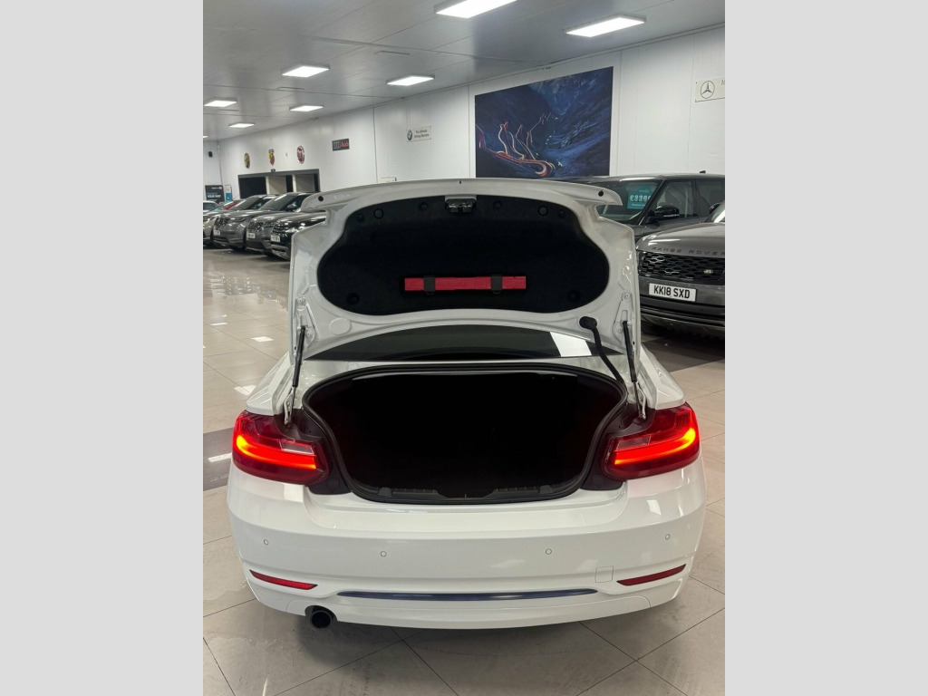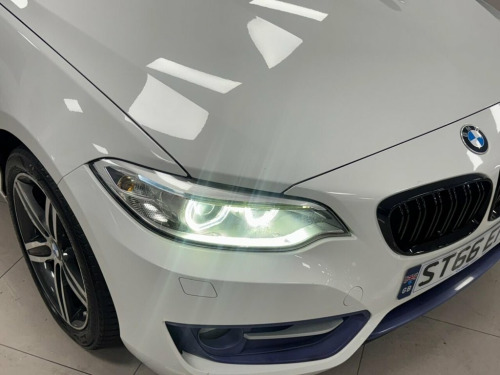 The BMW 2 Series 2.0 218d Sport Coupe is a dynamic and stylish vehicle, blending performance with efficiency. Powered by a 2.0-liter diesel engine producing 150 ps, this Euro 6 compliant car ensures a spirited drive while meeting stringent emissions standards. The 6-speed manual transmission provides an engaging driving experience, perfect for those who enjoy hands-on control. Externally, the 218d Sport Coupe boasts a sleek and sporty design, characterized by its distinctive kidney grille, sharp lines, and athletic stance. Inside, the cabin is designed with both driver and passenger comfort in mind, featuring high-quality materials and a driver-centric layout. The 2 Series 218d Sport Coupe is not just about looks and performance; it also offers practicality with ample boot space and efficient fuel consumption. This makes it an excellent choice for drivers who seek a blend of sportiness, efficiency, and everyday usability. 12V Power Socket - Centre Console, 12V Power Socket - Passenger Footwell, 17in Alloy Wheels - Light Star Spoke - 3, 3.5mm Auxiliary Input Point for Auxiliar, Active Differential Brake - ADB Sport - , Air Conditioning - Automatic - Single Zo, Airbags, Alarm System - Thatcham 1 with Remote Co, Ambient Lighting - Switchable BMW Classi, Armrest - Front with Sliding Adjustment, BMW ConnectedDrive Online Services, BMW Emergency Call, BMW Navigation, BMW Professional Radio with Single CD Pl, BMW TeleServices, Battery Age Recognition Function, Battery Safety Cut Off, Bluetooth Hands-Free Facility with USB A, Brake Pad Wear Indicator, Bumper - Rear with High Gloss Black Fini, Bumper System - Front an