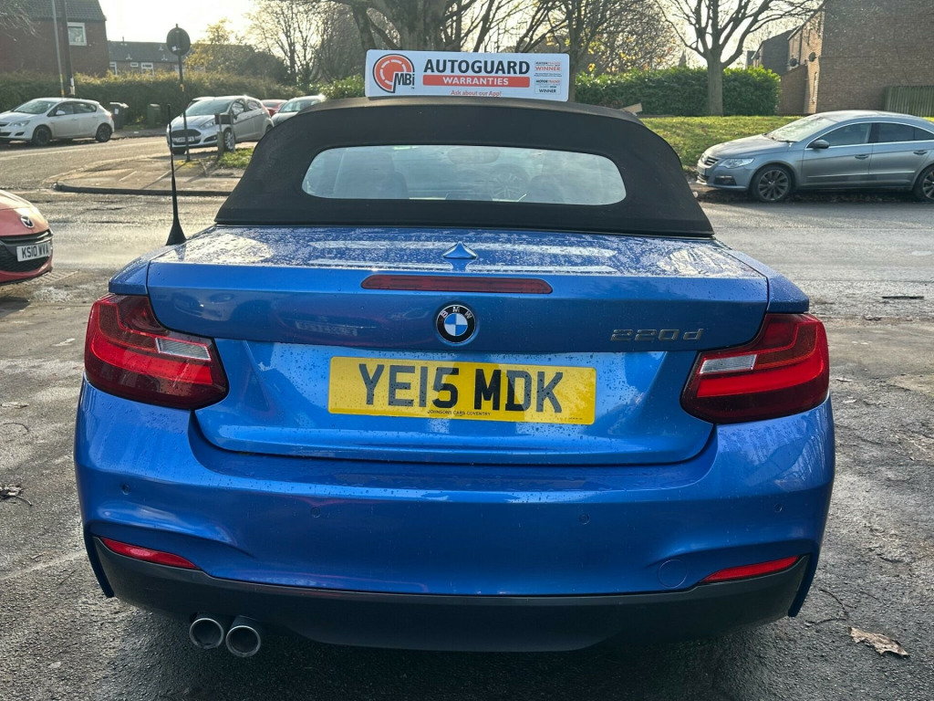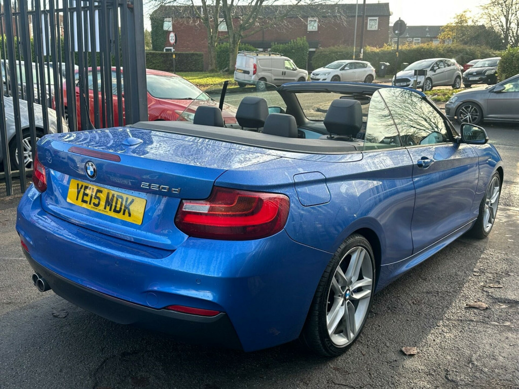 This 2015 BMW 2 Series 2.0 220d M Sport Auto Euro 6 (s/s) 2dr Convertible is currently available for £7,990 in Birmingham Warwickshire with Diesel engine and Automatic gearbox. For more information or to arrange a viewing, click here to send us an email using form below.
