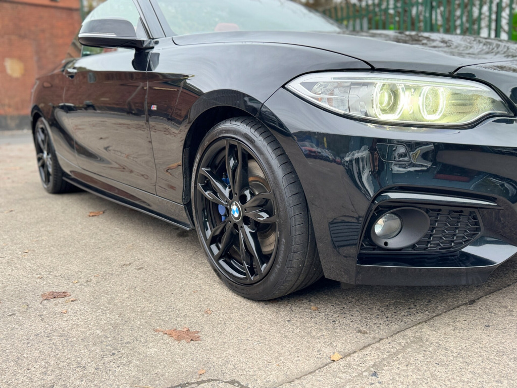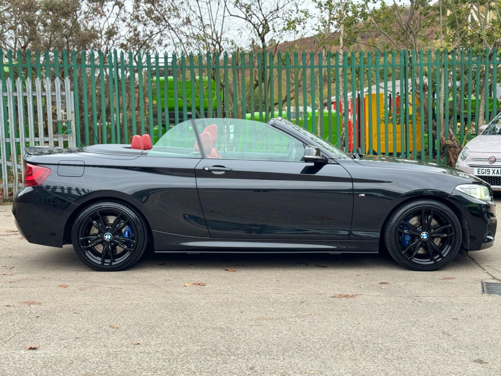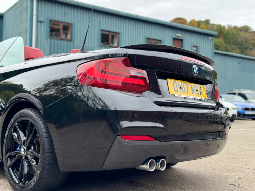 This stylish 2017 BMW 2 Series 2.0 220d M Sport Convertible with just 59606 miles on the clock is the perfect choice for those who enjoy the open road. This diesel-powered convertible boasts a sleek Black Sapphire exterior and comes equipped with the M Sport Plus Package, M Sport Braking System, and a Windscreen with Grey Shade Band for added style and performance. With Enhanced Bluetooth Telephone Preparation, USB Audio Interface, and Voice Control, staying connected on the go is a breeze. This car comfortably seats 4 with 2 doors and is ULEZ compliant, making it an ideal choice for city driving. This BMW 2 Series is ready to hit the road for your next adventure.UK delivery available.Part exchange welcome.AA extended warranty partner.AA standards approved dealership.Trading standards approved dealership.Autotrader highly rated dealership. v power socket - centre console, 12v power socket - passenger footwell, access to bmw connected plus (12 month subscription from new), bmw connecteddrive online services, bmw emergency call, bmw navigation, bmw professional radio with single cd player - with mp3 playback compatibility, bmw teleservices, bluetooth hands-free facility with usb audio interface and audio streaming, dab digital radio, full black panel display, real time traffic information, rear mounted aerial, 18in alloy wheels - m double spoke in ferric grey - 461m, acoustic soft-top in anthracite, bumper system - front and rear, direction indicator - side repeaters - integrated in exterior mirrors, direction indicator lights - clear lenses, electric windows - front and rear with open-close fingertip control - anti-trap facility and comfort closing function, engine cover with bmw roundel and twinpower turbo designation, exhaust tailpipe - chrome - dual - round - left, exterior parts in body colour, exterior trim - high-gloss shadowline, heat protection glazing with green tint, heated exterior mirrors and heated windscreen washer jets, kidney grille - chrome extra-wide eight high-gloss black vertical slats, locking wheel bolts, m aerodynamic bodystyling, m logo designation in chrome on left and right front wings, m sport package, model designation, reversing light in rear light clusters, run flat tyres, tyres - reduced rolling resistance, active differential brake - adb sport - electronic differential lock in dsc-off mode, airbags, alarm system - thatcham 1 with remote control and engine immobiliser, battery safety cut off, child seat isofix attachment for the two outer rear seats, crash sensor, dsc - dynamic stability control plus, dynamic brake lights, first aid kit and warning triangle, incorrect fuelling protection system, remote control with integrated key with insert in blue, seat belt security check for driver and front passenger, side impact protection, three-point seat belts - all seats, visible vin, air conditioning - automatic - single zone, ambient lighting - switchable, armrest - front with sliding adjustment, central locking switch - doors - fuel filler cap - luggage compartment, cup holders x2 with inlay mat, door sill finishers - m designation, floor mats - velour, gearshift lever with m designation - short-shift, glove box handle with chrome surround and key lock, handbrake lever and gear lever in leather, instrument panel with decorative stitching line, interior lighting - front centre over interior mirror and rear centre, interior trim - aluminium hexagon trim finishers with estoril blue matt highlight, lashing eyes in luggage compartment at sill x2, luggage compartment - light, luggage compartment access via bmw roundel, multifunction controls for steering wheel, personal profile - extended, rain sensor with automatic headlight activation, rear fog light, side armrests - front and rear integrated into door trim, sport seats - front, start-stop button with comfort go keyless engine start and auto start-stop deactivation button, steering wheel - m sport leather multifunction finished in nappa leather, steering-wheel column adjustment - manual, storage compartment - rear centre console and in door trim - front, sun visors with vanity mirrors and ticket holder, twin horns, welcome light, battery age recognition function, brake pad wear indicator, condition based service, drive performance control - eco pro - comfort - sport - sport plus, eco pro mode, eps - electric power steering, m sport suspension, obc - on-board computer, oil temperature display via on-board computer shown in central screen in instrument cluster, optimum shift indicator, pdc - park distance control - rear, servotronic steering, sport instrument cluster - differentiated dial design featuring finer chrono-scaling, tpms - tyre pressure monitoring system, check control warning system for monitoring of lights and door-luggage compartment open warning, daytime driving lights, high level third brake light, led fog lights - front, led headlights, led rear light bars, lights-on warning by audio warning signal when ignition is switched off