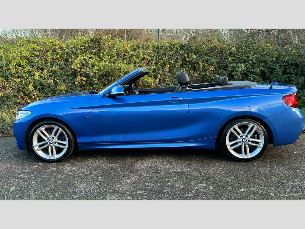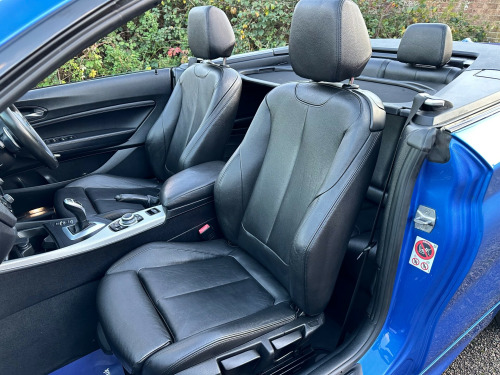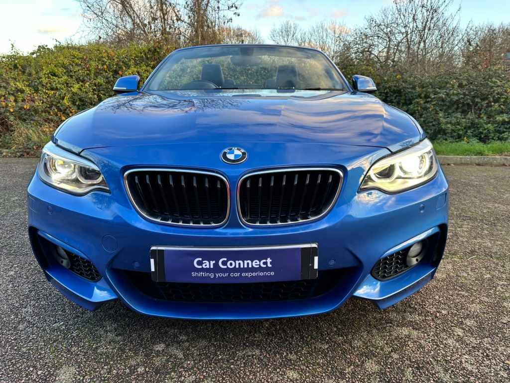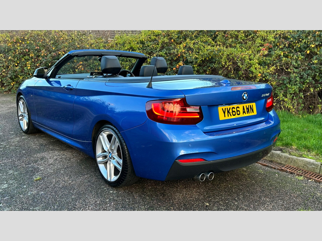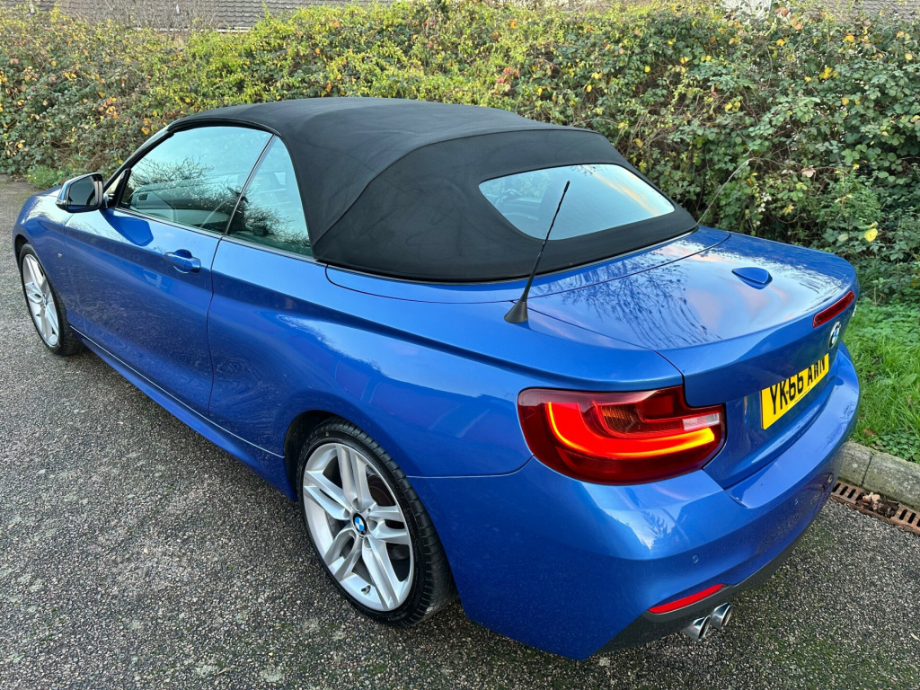 This 2016 BMW 2 Series 2.0 220d M Sport Convertible 2dr Diesel Auto Euro 6 (s/s) (190 ps) is a sleek convertible with just 62000 miles on the clock. This diesel car is ULEZ compliant and comes with an MOT that expires on 29/04/2026. With 4 seats and 2 doors, it's perfect for enjoying the open road. The interior is stylish, featuring Brushed Aluminium with Oxide Silver Matt Finisher trim, while the exterior is finished in Estoril Blue. Additionally, it includes a wind deflector, cruise control with brake function, and PDC - Park Distance Control - Front and Rear. Perfect for those sunny weekend getaways, this BMW 2 Series is the ultimate convertible for any adventure. v power socket - centre console, 12v power socket - passenger footwell, 3.5mm auxiliary input point for auxiliary playing devices, bmw connecteddrive online services, bmw emergency call, bmw navigation, bmw professional radio with single cd player - with mp3 playback compatibility, bmw teleservices, bluetooth hands-free facility with usb audio interface and audio streaming, dab digital radio, full black panel display, rear aerial, shark fin aerial, 18in alloy wheels - m light double spoke - 461m, acoustic soft-top in anthracite, bumper system - front and rear, direction indicator - side repeaters - integrated in exterior mirrors, direction indicator lights - clear lenses, door mirrors - electric and heated, electric windows - front and rear with open-close fingertip control - anti-trap facility and comfort closing function, exhaust tailpipe - chrome - dual - round - left, exterior parts in body colour, exterior trim - high-gloss shadowline, heat protection glazing with green tint, kidney grille - chrome extra-wide eight high-gloss black vertical slats, locking wheel bolts, m aerodynamic bodystyling, m logo designation on front wings in chrome, m sport package, model designation, reversing light in rear light clusters, run flat tyres, tyres - reduced rolling resistance, active differential brake - adb sport - electronic differential lock in dsc-off mode, airbags, alarm system - thatcham 1 with remote control and engine immobiliser, battery safety cut off, child seat isofix attachment for the two outer rear seats, crash sensor, dsc - dynamic stability control plus, dynamic brake lights, first aid kit and warning triangle, incorrect fuelling protection system, remote control with integrated key with insert in blue, seat belt security check for driver and front passenger, side impact protection, three-point seat belts - all seats, visible vin, air conditioning - automatic - single zone, ambient lighting - switchable, armrest - front with sliding adjustment, central locking switch - doors - fuel filler cap - luggage compartment, cup holders x2, door sill finishers - m designation, floor mats - velour, gearshift lever with m designation - short-shift, glove box with chrome surround and key lock, handbrake lever and gear lever in leather, interior lighting - front centre over interior mirror and rear centre, interior trim - aluminium hexagon with estoril blue finisher, lashing eyes in luggage compartment at sill x2, luggage compartment - light, luggage compartment access via bmw roundel, multifunction controls for steering wheel, personal profile - extended, rain sensor with automatic headlight activation, rear fog light, side armrests - front and rear integrated into door trim, sport seats - front, standard seat for driver and passenger with manual adjustment, start-stop button with comfort go keyless engine start and auto start-stop deactivation button, steering wheel - m sport leather multifunction finished in nappa leather, steering-wheel column adjustment - manual, storage compartment - rear centre console and in door trim - front, sun visors with vanity mirrors and ticket holder, twin horns, welcome light, battery age recognition function, brake pad wear indicator, drive performance control - eco pro - comfort - sport - sport plus, eco pro mode, m sport suspension, obc - on-board computer, optimum shift indicator, pdc - park distance control - rear, power steering - electric, sport instrument cluster - differentiated dial design featuring finer chrono-scaling, tpms - tyre pressure monitoring system, check control warning system for monitoring of lights and door-luggage compartment open warning, daytime driving lights, front fog lights, headlights - washer system, high level third brake light, led rear light bars, lights-on warning by audio warning signal when ignition is switched off, xenon headlight package