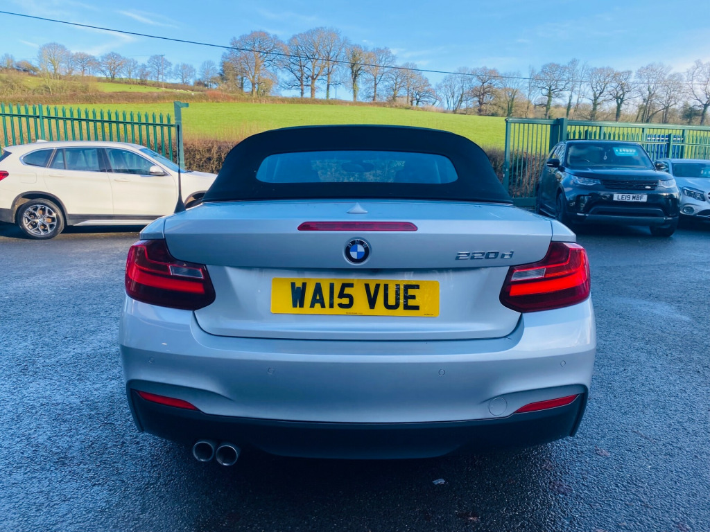 This 2015 BMW 2 Series 2.0 220d M Sport Convertible 2dr Diesel Auto Euro 6 (s/s) (190 ps) Convertible is currently available for £11,495 in Devon with Diesel engine and Automatic gearbox. For more information or to arrange a viewing, click here to send us an email using form below.