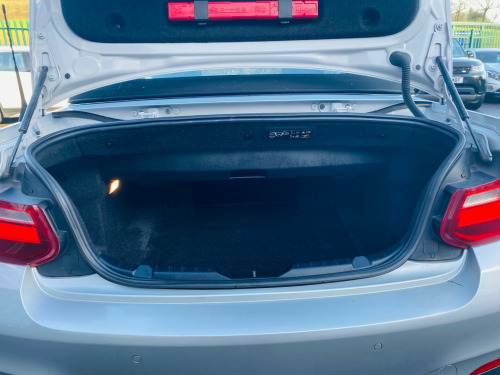 For sale is a 2015 BMW 2 Series 2.0 220d M Sport Convertible, equipped with a powerful and efficient diesel engine, boasting 52370 miles on the clock. This stylish convertible is ULEZ compliant, making it an ideal choice for city driving. With 4 seats and 2 doors, it offers both comfort and practicality, while its Glacier Silver exterior adds a touch of sophistication. Enjoy a smooth ride with features such as Cruise Control with Brake Function, PDC - Park Distance Control - Front and Rear, and a Reversing Assist Camera. The Driver Comfort Package enhances the overall driving experience, ensuring convenience and ease. Don't miss out on this sleek and reliable BMW that combines luxury with performance.- Supplied with 12 months MOT - Good service history - Finance available - 2 keys - Extended warranties available , v power socket - centre console, 12v power socket - front x2, 12v power socket - passenger footwell, 6.5in colour display screen, auxiliary input, bmw emergency call, bmw navigation system, bmw professional radio - single cd and mp3, bmw teleservices, bluetooth - audio streaming - with compatible devices, bluetooth hands free with usb audio interface, dab digital radio, shark fin aerial, speaker system with 4x25 watt, speakers x6 - two way, tmc - traffic information for lifetime of vehicle, usb audio interface, 18in alloy wheels - m double spoke - 461m, acoustic soft-top in anthracite, bumpers - body colour, door handles - body colour, door mirrors - body coloured housing, door mirrors - electric and heated, electric windows - front and rear with open-close fingertip control, exhaust tailpipe - chrome - dual - round - left, exterior trim - high-gloss shadowline, heat protection glazing with green tint, heated windscreen washer jets, indicator lenses - clear, kidney grille - chrome extra-wide high-gloss black vertical slats, locking wheel bolts, m aerodynamic bodystyling, m logo designation on front wings in chrome, m sport package, model designation, roof mouldings - body colour, run flat tyres, tyres - reduced rolling resistance, abs - anti lock braking system, asc - automatic stability control, airbags - driver, airbags - front side, airbags - passenger, airbags - passenger deactivation, alarm system thatcham 1 with remote control, auto locking, battery safety cut off, belt force limiters - front, brake assist, brake drying, brake readiness, bumper system front and rear - replaceable deformation elements for impacts up to 9mph, cbc - cornering brake control, central locking - remote, central locking switch, child seat isofix attachment - rear x2, crash sensor, crash sensor - activating central locking-hazard warning lights-fuel cut off, dbc - dynamic brake control, dsc - dynamic stability control plus, dtc - dynamic traction control, engine immobiliser, first aid kit, hill start assist, incorrect fuelling protection system, pyrotechnic belt tensioners - front, seat belt security check for driver and front passenger, side impact protection, speed limit function, warning triangle, adb sport - active differential brake, brake pad wear indicator - front and rear, check control warning system, drive performance control - eco pro - comfort - sport - sport plus, lights-on audio warning, m sport suspension, obc - on-board computer, optimum shift indicator, outside temperature display with ice warning, pdc - park distance control - rear, power steering - electric, sport instrument cluster - differentiated dial design featuring finer chrono-scaling, tpms - tyre pressure monitoring system, air conditioning - automatic - single zone, air microfilter, ambient lighting - switchable bmw classic orange - cold white - led, armrest - front and rear integrated into door trim, armrest - front with sliding adjustment, centre console - satin silver, comfort go keyless engine start, cup holders x2, door pull handle - satin silver, door sill finishers - m designation, floor mats - velour, gear knob - leather, gearshift lever with m designation, glove box with chrome surround and key lock, grab handles with coat hooks, handbrake lever - gear lever knob and gaiters in leather, interior lighting - front and rear centre, interior trim - aluminium hexagon with estoril blue finisher, luggage compartment - electric unlocking via the keys remote control, luggage compartment - lashing eyes x2, luggage compartment - light, luggage compartment access via bmw roundel, multifunction controls for steering wheel, personal profile, rain sensor, reading lights - front and rear, seats - electric adjustment for backrest side bolsters, seats - front - manual height adjustment, sport seats - front, steering column with manual reach and rake adjustment, steering wheel - leather - m sport, storage compartment - rear centre console and in door trim - front, sun visors with illuminated vanity mirrors and ticket pocket, welcome light, daytime running lights, follow me home headlight function, front fog lights, halogen headlights, headlights - automatic activation, headlights - beam throw control, high level third brake light, led rear light bars, led tailights