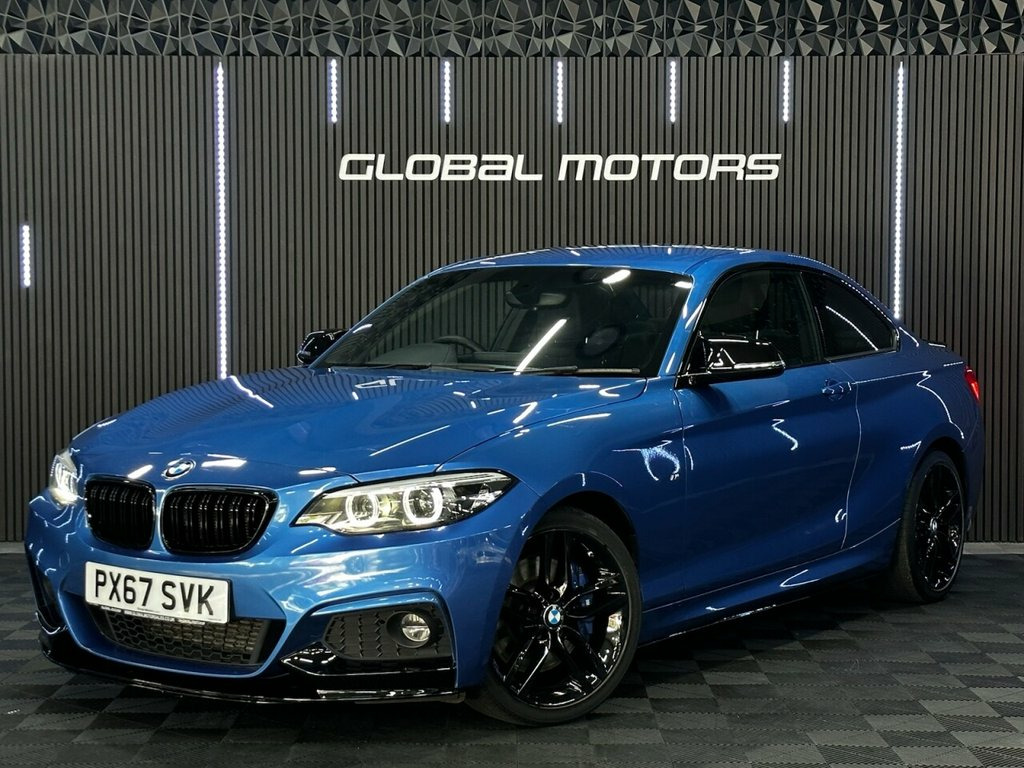 2017 Estoril Blue Metallic BMW 220D M Sport Coupe *HARMAN KARDON* *M SPORT PLUS PACK* Key Features Estoril Blue Metallic Paintwork ZF Automatic Gearbox Dakota Leather - Black Highlight with Black Interior Loudspeaker System - Harman Kardon 18" Alloy Wheels - M Double Spoke - 461M M Sport Plus Package PDC - Parking Distance Control - Rear Interior Trim - High Gloss Black with Pearl Chrome Finisher Sun Protection Glazing M Sport Braking System Full Black Panel Display Enhanced Bluetooth with USB Interface Single Zone Climate Control Modifications: Gloss Black Front Splitter Gloss Black Lip Spolier Gloss Black Rear Diffuser Gloss Black M Performance Style Mirror Caps For Any Enquires On This Vehicle Then Feel Free To Get In Touch With Us By Calling - 01752 946506 Or Alternatively Send Us A Message & A Member Of The Team Will Be In Touch. Please note: Although every effort is made to ensure the accuracy of every advert and vehicle specification, system and human errors can occur from time to time and it is advised to check for confirmation. 12V Power Socket - Centre Console, 12V Power Socket - Passenger Footwell, 18in Alloy Wheels - M Double Spoke in Fe, Active Differential Brake - ADB Sport - , Air Conditioning - Automatic - Single Zo, Airbags, Alarm System - Thatcham 1 with Remote Co, Ambient Lighting - Switchable, Armrest - Front with Sliding Adjustment, BMW ConnectedDrive Online Services, BMW ConnectedDrive Services, BMW Emergency Call, BMW Navigation, BMW Professional Radio with Single CD Pl, BMW TeleServices, Battery Age Recognition Function, Battery Safety Cut Off, Bluetooth Hands-Free Facility with USB A, Brake Pad Wear Indicator, Bumper - Rear with High Gloss Black Fini, Bumper System - Front and Rear, Central Locking
