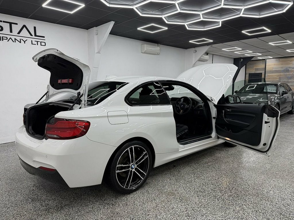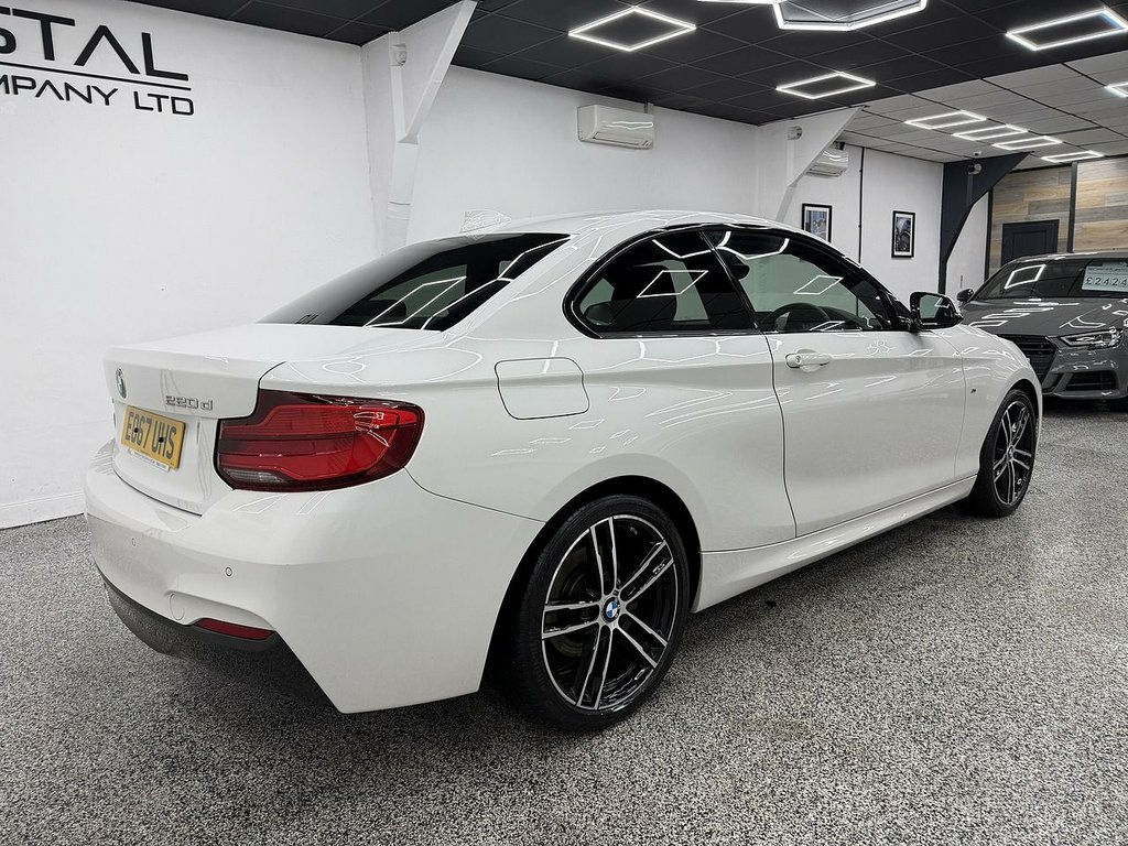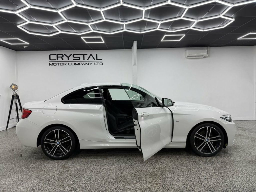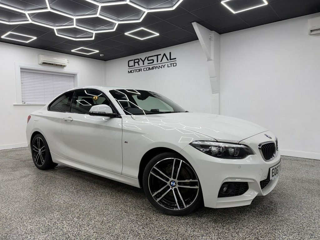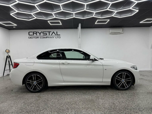 Crystal motor company are delighted to offer for sale this beautifully presented 2017 BMW 2 Series 2.0 220d M Sport Coupe 2dr Diesel Auto Euro 6 (s/s) (190 ps) finished in ALPINE WHITE. This car comes with TWO KEYS, ONE FORMER KEEPER, FULL BMW SERVICE HISTORY. This car is equipped with 18" ALLOY WHEELS, FRONT AND REAR PARKING SENSORS, REAR PRIVACY GLASS, BMW ADAPTIVE HEADLIGHTS, ALCANTARA SEATS, MULTIFUNCTIONAL STEERING WHEEL, PADDLE SHIFT, VIRTUAL COCKPIT, SPORT MODE, ECO PRO MODE, DAB RADIO, BLUETOOTH AUDIO, BLUETOOTH PHONE CONNECTION, SATNAV. The car is 100% HPi clear. Part exchange and finance are available and all major credit and debit cards accepted. Crystal Motor Company Ltd Used Programme includes a full PDI inside and out, MOT, mileage certificate and a full inside and out valet. You can request a personalised video with attention given to any specifics you would like a better view of and we will be pleased to assist you. Likewise, we offer our customers a free collection service. Our journey began in 1996 with the aim to deliver the best possible customer experience, you will enjoy a completely hassle free approach, no pressure and great prices, values we stand by to this day. Looking to finance your next car? We have over 30 lenders on board to help each customer with their financial circumstance. Every vehicle benefits from a minimum of 3 months warranty with the option to extend to 6/12/24/36 months. 12V Power Socket - Centre Console, 12V Power Socket - Passenger Footwell, 18in Alloy Wheels - M Double Spoke in Fe, 18in Alloy Wheels - M Light Double-Spoke, Active Differential Brake - ADB Sport - , Air Conditioning - Automatic - Single Zo, Airbags, Alarm System - Thatcham 1 with Remote Co, Alpine White, Ambient Lighting - Switchable, Armrest - Front with Sliding Adjustment, Battery Age Recognition Function, Battery Safety Cut Off, Bluetooth Hands-Free Facility with USB A, BMW ConnectedDrive Online Services, BMW ConnectedDrive Services, BMW Emergency Call, BMW Navigation, BMW Professional Radio with Single CD Pl, BMW TeleServices, Brake Pad Wear Indicator, Bumper - Rear with High Gloss Blac
