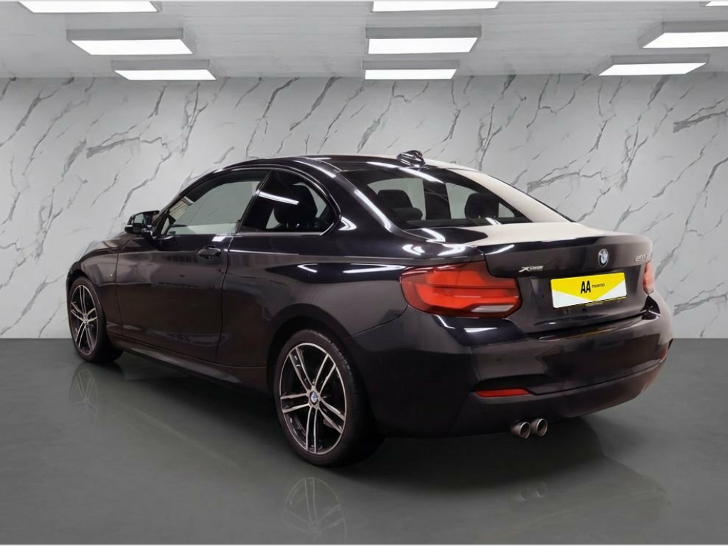 With an MOT valid until September 2026 and a full service history, this 2019 BMW 2 Series 220d M Sport offers excellent peace of mind. This Euro 6 compliant model features a powerful 2.0L diesel engine paired with a four wheel drive drivetrain, ensuring confident performance in all conditions. The M Sport trim enhances its sporty appeal, while the Interior Comfort Package, including climate control, provides a pleasant cabin environment. You'll also benefit from LED headlights for improved visibility and Bluetooth connectivity with USB audio interface for seamless entertainment and hands-free calls. Parking is made easier with both front and rear Park Distance Control sensors. This BMW 2 Series stands out with its impressive acceleration, reaching 0-60mph in just 7.0 seconds, demonstrating its dynamic capabilities. Furthermore, its placement in a low insurance group indicates that running costs are kept competitive compared to similar vehicles. A clear vehicle history check confirms its sound background, making this a well maintained and desirable option. Through-Loading System, Model Designation Deletion - Side, 12V Power Socket - Centre Console, 12V Power Socket - Passenger Footwell, 18in Alloy Wheels - M Light Double-Spoke, Access to BMW Connected Plus (12 Month S, Active Differential Brake - ADB Sport - , Air Conditioning - Automatic - Single Zo, Airbags, Alarm System - Thatcham 1 with Remote Co, Ambient Lighting - Switchable, Armrest - Front with Sliding Adjustment, Automatically Dimming Rear View Mirror, BMW ConnectedDrive Online Services, BMW ConnectedDrive Services, BMW Emergency Call, BMW Navigation, BMW Professional Radio with Single CD Pl, BMW TeleServices, Battery Age Recognition Function, Battery Safety Cut Off, Bluetooth Hands-F