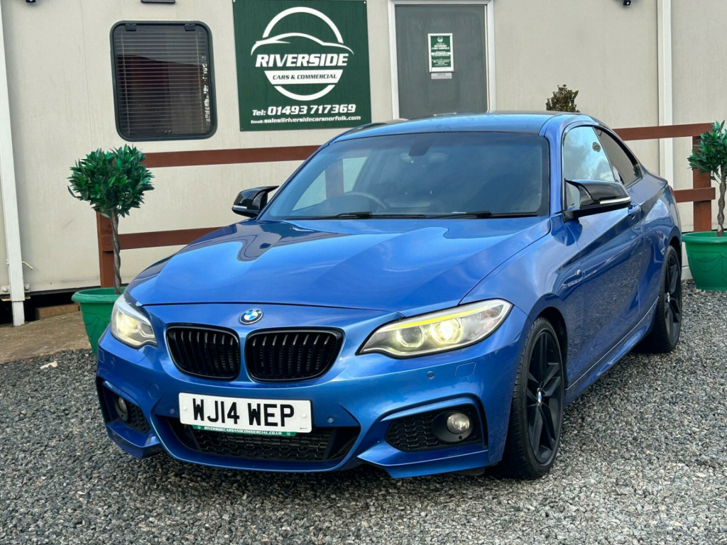 Finished In Estoril Blue This 2014 BMW 2 Series 2.0 220d M Sport Coupe 2dr Diesel Manual Euro 6 (s/s) 190 BHP has a mileage of 95000 and is ULEZ compliant, making it a great option for city driving. This 2-door coupe comes with a sleek design and 4 seats, making it a stylish yet practical choice. It includes features such as Air Conditioning - Automatic with Two-Zone Control, BMW Navigation Package, and Cruise Control with Brake Function, making it a comfortable and convenient option for long drives. With MOT valid until 19/11/2025, this diesel vehicle is a reliable choice for the future. The automatic folding and dimming door mirrors and the Driver Comfort Package add to the luxury and convenience of this car. With its efficient diesel engine and Euro 6 rating, this BMW 2 Series is a strong contender in the coupe market, perfect for those looking for a sporty yet practical vehicle.At Riverside Cars & Commercial all our customers have the added peace of mind that all our vehicles are supplied with the following, pre delivery inspection, mot, sales service & 1 months parts & labour warranty for total peace of mind. We also have our own workshop facilities on site with use of free courtesy cars available. Part exchange welcome & finance available. We offer both PCP and Hire Purchase agreements, please call us for a free quotation or more information. All of our vehicles have vast specifications, in most cases, far to much too list, so please always check the vehicles exact specification prior to purchase as this is out of our control. Vehicle information is fed via Autotrader. We always have at least 50 vehicles in stock to choose from. For a personalised walk round video or more information please call Tel : 01493 717369Vehicle registered: 07/03/2014, ort automatic transmission, driver comfort package, bmw navigation package, interior comfort package, xenon headlights, m sport braking system, enhanced bluetooth telephone preparation with usb audio interface, cruise control with brake function, air conditioning - automatic with two-zone control, sun protection package, sun protection glazing, pdc - park distance control - front and rear, seats - front heated, door mirrors - folding - automatically dimming, full black panel display, extended storage, windscreen with grey shade band, dakota leather - black with black interior, media package - bmw business plus, media package - bmw professional, m sport plus package, visibility pack, adaptive m sport suspension, 12v power socket - front x2, 18in alloy wheels - m star spoke - 461m, 6.5in colour display screen, abs - anti lock braking system, adb - automatic differential brake, asc - automatic stability control, air conditioning - automatic - single zone, airbags - curtain, airbags - driver, airbags - front side, airbags - passenger, airbags - passenger deactivation, alarm system thatcham 1 with remote control, armrest - front with sliding adjustment, automatically dimming rear view mirror, auxiliary input, bmw apps interface, bmw emergency call, bmw mobility system, bmw professional radio - single cd and mp3, bmw teleservices, bluetooth hands free with usb audio interface, brake assist, brake drying, brake pad wear indicator, bumpers - body colour, cbc - cornering brake control, central locking - remote, child seat isofix attachment - rear x2, comfort go keyless engine start, crash sensor, crash sensor - activating central locking-hazard warning lights-fuel cut off, cup holders - front x2, dab digital radio, dbc - dynamic brake control, dsc - dynamic stability control plus, dtc - dynamic traction control, daytime running lights, door handles - body colour, door mirrors - body coloured housing, door mirrors - electric and heated and aspheric, door sill finishers - m designation, drive performance control with comfort-sport and sport modes, dynamic brake lights, electric windows - front and rear with open-close fingertip control, exterior trim - chromeline, exterior trim - high-gloss shadowline, first aid kit, floor mats - velour, follow me home headlight function, front fog lights, grab handles - in roof lining x4, halogen headlights, handbrake lever - gear lever knob and gaiters in leather, head restraints - rear and folding, headlights - automatic activation, headlining - anthracite, heated windscreen washer jets, high level third brake light, hill start assist, interior trim - aluminium hexagon, luggage compartment - lashing eyes x2, m aerodynamic bodystyling, m sport package, m sport suspension, m sport suspension deletion, multifunction controls for steering wheel, obc - on-board computer, optimum shift indicator, pdc - park distance control - rear, personal profile, power steering - electric, rain sensor, roof mouldings - body colour, run flat tyres, seats - 60-40 split folding rear, seats - front - manual height adjustment, shark fin aerial, sport multi-function leather steering wheel - three spoke, sport seats - front, steering column with manual reach and rake adjustment, steering wheel - leather - m sport, sun visors with vanity mirrors, tpms - tyre pressure monitoring system, trim finisher - estoril blue - matt, usb audio interface, warning triangle