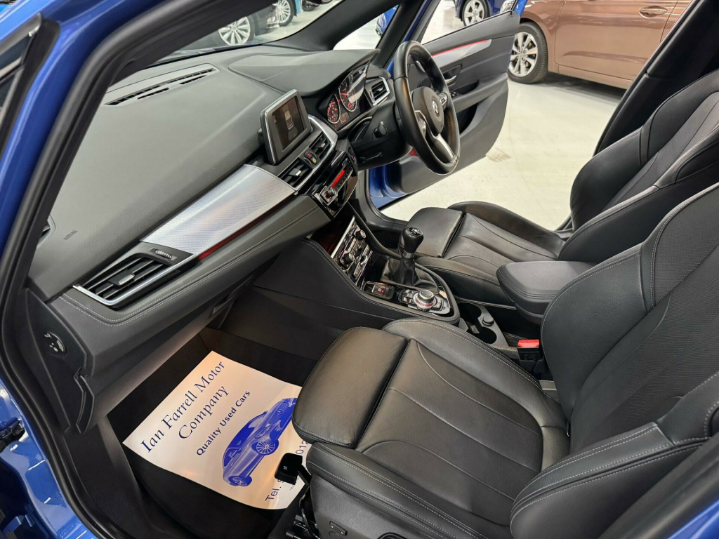 This 2016 BMW 2 Series Active Tourer 220d M Sport stands out with its exceptionally low mileage of just 37,000 miles, a rare find for a vehicle of its age, and boasts a full dealership service history. This M Sport variant, powered by a 2.0L Euro 6 diesel engine, offers impressive performance with a 0-62mph acceleration time of 7.6 seconds. It comes with a 3 month warranty and a 12 month MOT provided on purchase, ensuring peace of mind. With only two previous owners, this well maintained example also features automatic headlights, a rain sensor, heated front seats, and automatic dual zone climate control for your comfort.Experience the practicality and efficiency of this BMW 2 Series Active Tourer, which achieves an outstanding fuel economy of 63 mpg, making it an economical choice for both city driving and longer journeys. The generous boot space provides ample room for luggage or shopping, further enhancing its versatility. These highlights, combined with its impressive acceleration and low running costs, demonstrate how this particular model offers a superior driving experience compared to other vehicles in its class.. 12V Power Socket - Centre Console, 12V Power Socket - Passenger Footwell, 12V Power Socket - Rear of Centre Console, 18in Alloy Wheels - M Double-Spoke - 486, 40-20-40 Split Folding Rear Seats, 6.5in Colour Display Screen, ABS - Anti Lock Braking System, Air Conditioning - Automatic with Two-Zone Control, Airbags - Curtain Head Protection system, Airbags - Driver, Airbags - Front Side, Airbags - Passenger, Airbags - Passenger Deactivation, Alarm - Thatcham Cat 1 and Immobiliser, Ambient Interior Lighting, Ambient Lighting - Switchable, Armrest - Front Centre, Armrest - Front and Rear Integrated into Door Trim, Auxiliary Input, BMW Emergency Call, BMW Mobility System, BMW Navigation, BMW Professional Radio - Single CD and MP3, BMW TeleServices, Bluetooth Hands Free with Audio Streaming, Bluetooth Hands Free with USB Audio Interface, Brake Assist, Brake Drying, Brake Pad Wear Indicator - Front and Rear, Bumpers - Body Colour, Central Locking - Remote, Check Control Warning System, Child Proof Locking System - Rear Doors, Child Seat ISOFIX Attachment - Front, Child Seat ISOFIX Attachment - Rear x2, City Collision Mitigation, Contrast Stitching, Crash Sensor - Activating Central Locking-Hazard Warning Lights-Fuel Cut Off, Cup Holders - Front, DAB Digital Radio, DSC - Dynamic Stability Control Plus, DTC - Dynamic Traction Control, Daytime Running Lights - LED, Door Handles - Body Colour, Door Mirrors - Body Coloured, Door Mirrors - Electric and Heated, Door Sill Finishers - M Designation, Drive Performance Control with ECO PRO - Comfort and Sport Modes, Dynamic Brake Lights, ECO PRO Mode, Electric Windows - Front and Rear with Open-Close Fingertip Control, Electrically Operated Handbrake - Parking Brake, Electronic Differential Lock, Engine Immobiliser, Extended Storage, Exterior Trim - High-Gloss Shadowline, First Aid Kit, Floor Mats - Velour, Follow Me Home Headlight Function, Forward Collision Warning System, Front Fog Lights, Gearshift Lever with M Designation, Grab Handles - in Roof Lining x4, Halogen Headlights, Head Restraints - Front and Rear, Headlights - Automatic Activation, Headlights - Beam Throw Control, Headlining - Anthracite, Heat Protection Glazing with Green Tint, Heated Windscreen Washer Jets, High Level Third Brake Light, Hill Start Assist, Interior Trim - Aluminium Hexagon with Pearl Chrome Finisher, Kidney Grille - Extra Wide High Gloss Black Vertical Slats, Lights-on Audio Warning, Locking Wheel Bolts, Luggage Compartment - Lashing Eyes x2, M Aerodynamic Bodystyling, M Logo Designation on Front Wings in Chrome, M Sport Package, M Sport Steering Wheel, M Sport Suspension, Multifunction Controls for Steering Wheel, OBC - On-Board Computer, Optimum Shift Indicator, PDC - Park Distance Control - Rear, Performance Control, Personal Profile, Power Socket - 12V in Luggage Compartment, Rain Sensor with Automatic Headlight Activation, Remote Control with Integrated Key with Silver Highlight, Run Flat Tyres, Seats - Front - Manual Height Adjustment, Seats - Sliding Rear Bench, Servotronic Steering, Shark Fin Aerial, Side Impact Protection, Speed Limit Function, Sport Seats - Front, Start-Stop Button with Comfort Go Keyless Engine Start, Steering Column with Manual Reach and Rake Adjustment, Storage - Compartment in Instrument Panel on Drivers Side with Folding Cover, Storage Compartment - Trays in Centre Console, Storage Nets on Seat Backrests, Sun Visors with Vanity Mirrors and Ticket Holder, TMC - Traffic Information for Lifetime of Vehicle, TPMS - Tyre Pressure Monitoring System, Tailgate Operation - Powered, USB Audio Interface, Warning Triangle, Welcome Lighting, iDrive Controller with Shortcut Buttons, Driver Comfort Package, Seats - Front Heated, Sun Protection Glazing, Cruise Control with Brake Function, Extended Lighting, Perforated Dakota Leather - Black with Blue Stitching and Black Interior. Full dealership history
