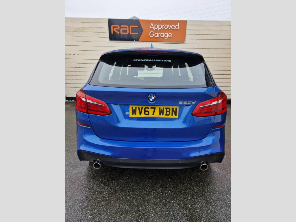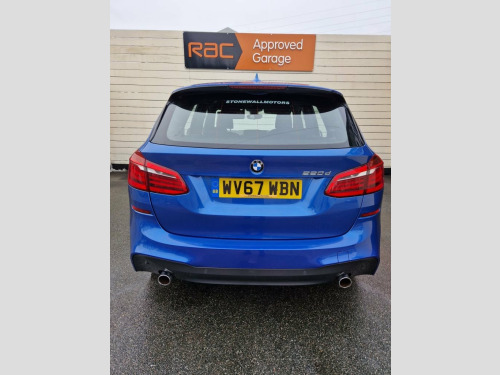 This 2017 BMW 2 Series Active Tourer 220d M Sport Euro 6 compliant model features a 2.0L diesel engine and has covered a low mileage of just 58910 miles for its age, with a clear vehicle history check. The M Sport trim enhances its appeal, and notable features include a short shift gearlever with M designation, rain sensor with automatic headlight activation, and dual zone automatic air conditioning for optimal comfort. Parking is made easier with rear park distance control, and the Bluetooth hands free system with USB audio interface ensures seamless connectivity. Experience the efficiency and performance of this BMW 2 Series Active Tourer, which achieves an outstanding fuel economy of 63 mpg, making it more economical than many similar vehicles. Its acceleration from 0 to 60 mph in just 7.6 seconds demonstrates a responsive driving experience. These highlights indicate that this vehicle offers a superior combination of economy and performance compared to other cars in its class. 2 Keys. 12V Power Socket - Centre Console, 12V Power Socket - Passenger Footwell, 12V Power Socket in Centre Console Rear , 18in Alloy Wheels - M Double-Spoke - 486, 40-20-40 Electrically Split Folding Rear, Active Guard, Air Conditioning - Automatic with Two-Zo, Air Curtain, Airbags, Alarm System Thatcham Category 1 with Re, Ambiance Lighting - Switchable, Armrest Front - Free Standing and can be, Automatic Tailgate, BMW ConnectedDrive, BMW ConnectedDrive Online Services, BMW Emergency Call, BMW Navigation, BMW Professional Radio with Single CD Pl, BMW TeleServices, Battery Safety Cut Off, Bluetooth Hands Free with USB Audio Inte, Brake Pad Wear Indicator - Front and Rea, Bumper System Front and Re