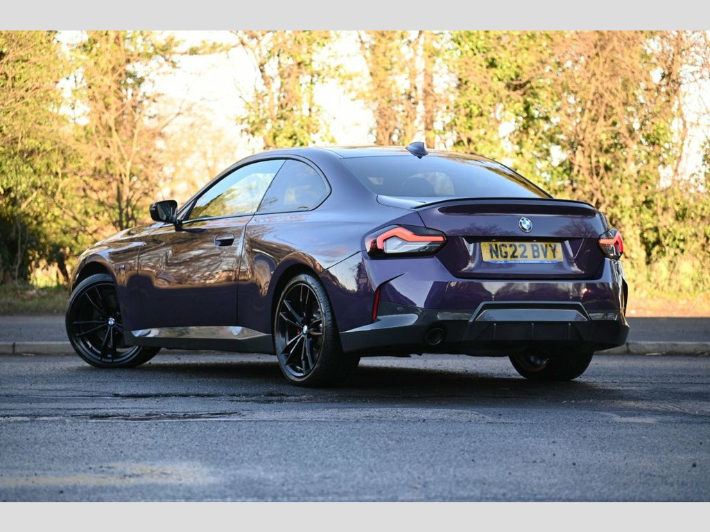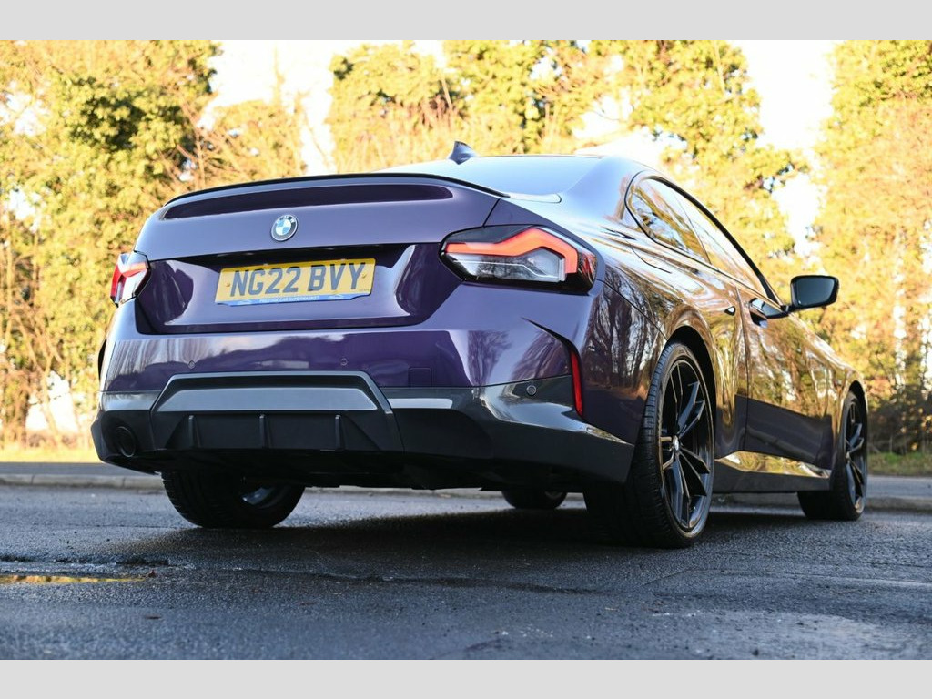Prestige Car Supermarket in York presents this 2022 BMW 2 Series 220d MHT M Sport Coupe, a striking diesel mild-hybrid coupe that blends dynamic performance with premium refinement. Powered by a 2.0-litre diesel engine with mild hybrid technology producing 190 ps, paired with a smooth automatic transmission, this rear-wheel-drive coupe delivers strong performance, excellent efficiency and responsive driving characteristics. Finished in Thundernight with M Sport exterior styling, this example benefits from the M Aerodynamics Package, M Sport Pro Pack, high-gloss Shadowline exterior trim and an assertive stance enhanced by 19in M alloy wheels and M Sport brakes with red calipers. Inside, the cabin features Alcantara-Sensatec upholstery in black with blue-black stitching, M Sport sports seats with heating, an M Sport leather steering wheel with gearshift paddles and M Anthracite headlining, creating a focused yet luxurious environment. Technology is centred around BMW Live Cockpit Professional with BMW Connected Package Professional, integrated navigation, Bluetooth connectivity and DAB radio, complemented by the Harman Kardon surround sound system. Comfort and convenience are enhanced by three-zone automatic climate control, ambient lighting, adaptive LED headlights, acoustic windscreen, front and rear parking distance control and cruise control with brake function. Safety and driver assistance features include Active Guard Plus, Attentiveness Assistant, lane monitoring systems 12V Power Socket in Centre Console Front, 18in Alloy Wheels - Double Spoke Style -, Acoustic Windscreen for Reduced Driving , Active Guard Plus, Adaptive LED Headlights, Air Conditioning - Automatic with Three-, Airbags - Driver and Front Passenger Sid, Airbags - Driver and Passenger, Airbags - Head - Front and Rear, Alarm System Thatcham Category 1 with Re, Ambient Lighting, Armrest - Front, Attentiveness Assistant, Automatic Windscreen Wipers and Headligh, Automatically Dimming Rear View Mirror, BMW Connected Package Professional, BMW ConnectedDrive Online Services, BMW Legal Emergency Call, BMW Live Cockpit Professional, BMW TeleServices, Bluetooth - Audio Streaming - with Compa, Bumper S