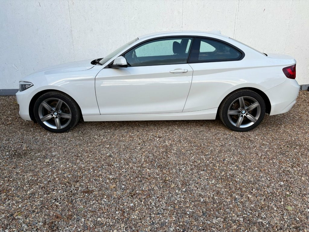 A SUPERBLY PRESENTED BMW 2 SERIES FINISHED IN WHITE WITH SERVICE HISTORY. THIS CAR COMES WITH 2 KEYS, A NEW MOT AND FEATURES INCLUDING SATELLITE NAVIGATION, BLUETOOTH HANDS-FREE, AIR CONDITIONING, DAB DIGITAL RADIO/CD PLAYER WITH AUX AND USB POINT, BLUETOOTH MEDIA CONNECTIVITY, FRONT AND REAR OPTICAL PARKING SENSORS, MULTI FUNCTION LEATHER STEERING WHEEL, CRUISE CONTROL, AUTO START/STOP, ECO-PRO/NORMAL/SPORT DRIVING MODES, AUTO LIGHTS, AUTO WIPERS, ELECTRIC WINDOWS, ELECTRIC MIRRORS, KEYLESS START/STOP, 6 SPEED MANUAL GEARBOX, REMOTE CENTRAL LOCKING AND 17" ALLOY WHEELS. 12V Power Socket - Centre Console, 12V Power Socket - Passenger Footwell, 17in Alloy Wheels - Light Star Spoke - 3, 3.5mm Auxiliary Input Point for Auxiliar, Active Differential Brake - ADB Sport - , Air Conditioning - Automatic - Single Zo, Airbags, Alarm System - Thatcham 1 with Remote Co, Ambient Lighting - Switchable BMW Classi, Armrest - Front with Sliding Adjustment, BMW ConnectedDrive Online Services, BMW Emergency Call, BMW Navigation, BMW Professional Radio with Single CD Pl, BMW TeleServices, Battery Age Recognition Function, Battery Safety Cut Off, Bluetooth Hands-Free Facility with USB A, Brake Pad Wear Indicator, Bumper - Rear with High Gloss Black Fini, Bumper System - Front an