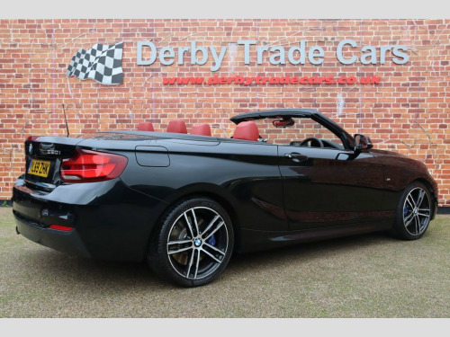 Here We Are Proud To Present This Great Example Of The BMW 220I, M Sport Convertible! Loaded With Some Great Specification, And Finished In Black Sapphire With A Black Soft Top Roof And Contrast Coral Red Dakota Leather Seats. Find The Full List Of Details Below: EXTERIOR SPECIFICATION: - Finished In Black Sapphire - Black Soft Top Roof - Xenon Headlights - LED Daytime Running Lights - 18" Diamond Cut Alloys With Black Gloss Inlays - Blue Brake Calipers - Rear Parking Sensors - Reversing Camera - Black Gloss Grilles INTERIOR SPECIFICATION: - Harman/Kardon Sound System - Coral Red Dakota Leather Seats - Heated Seats - Multifunctional Leather Steering Wheel - Paddle-Shift Gear Change - Cd/Radio Player - DAB Radio - Bluetooth Connection - Full Screen Sat Nav - Climate Control - Keyless Start - Automatic Stop/Start Technology - Switchable Driving Modes - One Touch Roof Operation 28.01.2020 @ 10 miles 15.07.2021 @ 9,278 miles 17.08.2022 @ 17,471 miles 08.07.2023 @ 26,422 miles 19.11.2024 @ 49,604 miles 09.08.2025 @ 64,793 miles. The Current Mileage Is 71,457 miles Will Come With MOT Until 11th November 2026 With NO Advisories. Both Rear Tyres Recently Replaced. All HPI Clear. Comes With 2X Keys. Contact Us Today To Arrange A Viewing! 12V Power Socket - Centre Console, 12V Power Socket - Passenger Footwell, 18in Alloy Wheels - M Light Double-Spoke, Access to BMW Connected Plus (12 Month S, Acoustic Soft-Top in Anthracite, Active Differential Brake - ADB Sport - , Air Conditioning - Automatic - Single Zo, Airbags, Alarm System - Thatcham 1 with Remote Co, Ambient Lighting - Switchable, Armrest - Front with Sliding Adjustment, Automatically Dimming Rear View Mirror, Battery Age Recognition Function, Battery Safety Cut Off, Black Sapphire, Bluetooth Hands-Free Facility with USB A, BMW ConnectedDrive Online Services, BMW Emergency Call, BMW Navigation, BMW Professional Radio with Single CD Pl, BMW TeleServices, Brake Pad Wear