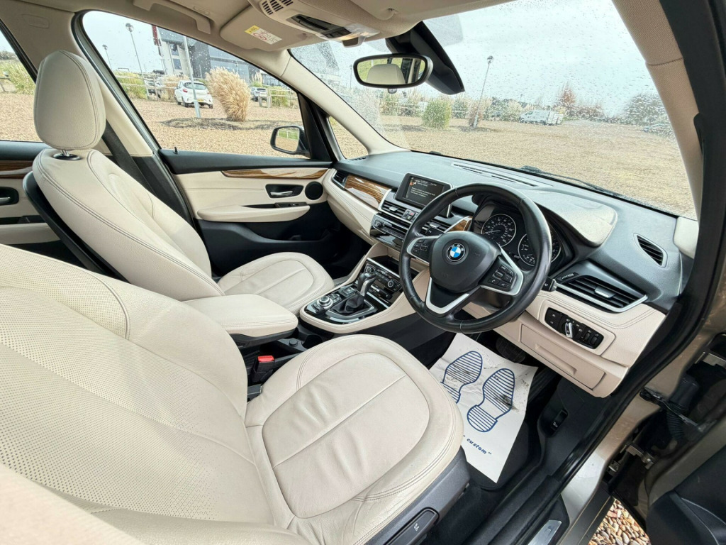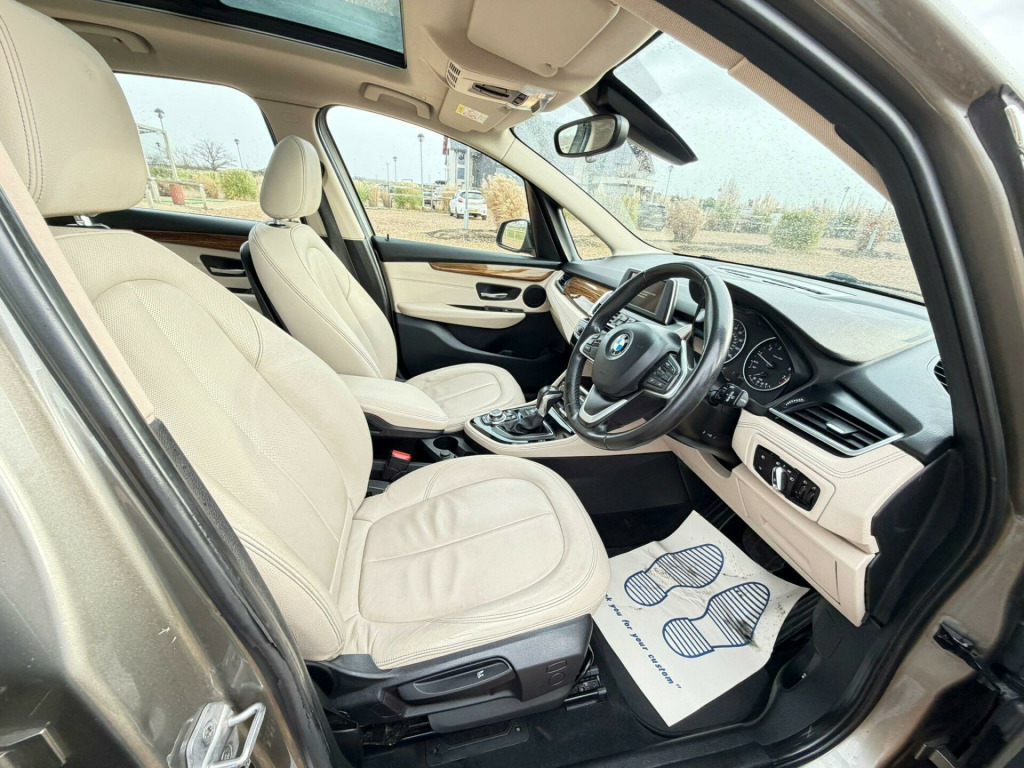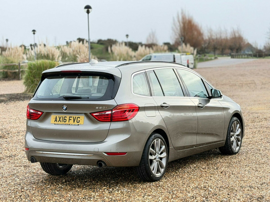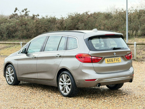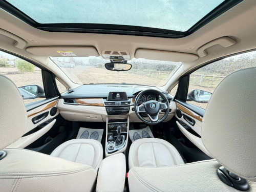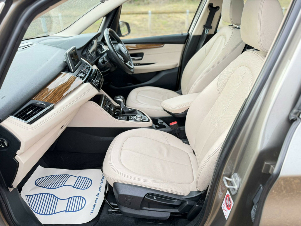 This 2016 BMW 2 Series Gran Tourer 220i Luxury is a superb example, having had only two owners from new. This versatile seven seater is powered by a 2.0 litre petrol engine and meets Euro 6 emissions standards. It comes equipped with desirable Luxury trim features, including stylish 18 inch V spoke alloy wheels, a panoramic glass sunroof that can be opened for an airy cabin feel, and elegant Fineline Shore wood interior trim with pearl chrome finishers. The automatically dimming rear view mirror adds convenience, and run flat tyres provide added peace of mind.Experience impressive performance with this Gran Tourer, capable of accelerating from 0 to 62 miles per hour in just 7.8 seconds, demonstrating its agility. You will also appreciate the excellent fuel economy, achieving up to 47 miles per gallon, which is a strong indicator of its efficiency compared to similar vehicles. Furthermore, the generous boot space ensures you have ample room for luggage or shopping, making this BMW a practical choice for families and everyday use. noramic glass sunroof, 18in alloy wheels - v-spoke - 485, driver comfort package, cruise control with brake function, door mirrors - electric folding, run flat tyres, interior trim - fineline shore wood with inlays and pearl chrome finisher, automatically dimming rear view mirror, perforated dakota leather - oyster with grey highlight and stitching with black interior, 12v power socket - centre console, 12v power socket - passenger footwell, 12v power socket - rear of centre console, 17in alloy wheels - multi spoke style - 481, 40-20-40 split folding rear seats, 6.5in colour display screen, abs - anti lock braking system, active guard, air conditioning - automatic with two-zone control, air inlet - front with chrome finisher, airbags - curtain head - front, airbags - curtain head - rear, airbags - driver, airbags - front side, airbags - passenger, airbags - passenger deactivation, alarm system thatcham 1 with remote control, armrest - front centre, armrest - front and rear integrated into door trim, armrest - front with storage compartment, automatic lock when driving away selectable, auxiliary input, bmw emergency call, bmw mobility system, bmw navigation, bmw professional radio - single cd and mp3, bmw teleservices, battery safety cut off, bluetooth - audio streaming - with compatible devices, bluetooth hands free facility, brake assist, brake drying, brake pad wear indicator - front and rear, brake readiness, bumpers - body colour, central locking - remote, central locking switch, check control warning system, child proof locking system - rear doors, child seat isofix attachment - front, child seat isofix attachment - rear x2, city collision mitigation, comfort go keyless engine start, contrast stitching - instrument panel, crash sensor - activating central locking-hazard warning lights-fuel cut off, cup holders x2, dab digital radio, dsc - dynamic stability control plus, dtc - dynamic traction control, daytime running lights - led, door handles - body colour, door mirrors - body coloured, door mirrors - drivers aspheric, door mirrors - electric and heated, door mirrors - integrated indicator side repeaters, door sill finishers - exclusive with bmw designation, drive performance control - eco pro - comfort - sport - sport plus, dynamic brake lights, electric windows - front and rear with open-close fingertip control, electro mechanical parking brake, electronic differential lock, engine immobiliser, exhaust tailpipe - chrome - single - round - left, extended lighting, extended storage, exterior trim - chromeline, first aid kit, floor mats - velour, follow me home headlight function, footwell lights - front and rear - led, forward collision warning system, front fog lights, glove compartment, glove compartment - illuminated, grab handles - integrated in roof lining x4, halogen headlights, headlights - automatic activation, headlights - beam throw control, heat protection glazing with green tint, heated windscreen washer jets, high level third brake light, hill start assist, interior lighting - front and rear centre, interior trim - fineline stream wood with pearl chrome finisher, kidney grille - 12x chrome fronted vertical slats, led ambient lighting in door trim, lights-on audio warning, locking wheel bolts, luggage compartment - additional storage on each side and under floor, luggage compartment - light, luggage compartment - storage tray, model designation, non smoker package, obc - on-board computer, outside temperature display with ice warning, pdc - park distance control - rear, performance control, personal profile - extended, power socket - 12v in luggage compartment, rain sensor, reading lights - front - led, rear bumper with chrome finisher, rear fog light, rear folding tray tables, rear seat headrests - 3x second row and 2x third row, rear window wiper with wash-wipe system, remote control with integrated key with silver highlight, remote opening - tailgate luggage compartment, roof mouldings - body colour, roof rails - black, seat belt security check for driver and front passenger, seat belts - rear - three with inertia reel, seats - 60-40 sliding bench, seats - driver manual adjustment, seats - passenger manual adjustment, seats - sliding rear bench, seats - third-row fully foldable into boot floor, servotronic steering, shark fin aerial, side impact protection, speakers x6, speed limit function, sport multi-function leather steering wheel - three spoke, steering column - reach and rake manual adjustment, steering wheel - multifunction controls, storage compartment - below drivers and passengers seat, storage nets on seat backrests, sun visors with vanity mirrors and ticket holder, tmc - traffic information for lifetime of vehicle, tpms - tyre pressure monitoring system, tailgate operation - powered, third-row seating, trim designation deletion, usb audio interface, warning triangle, welcome light