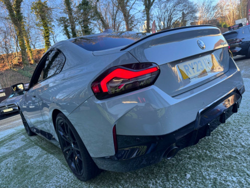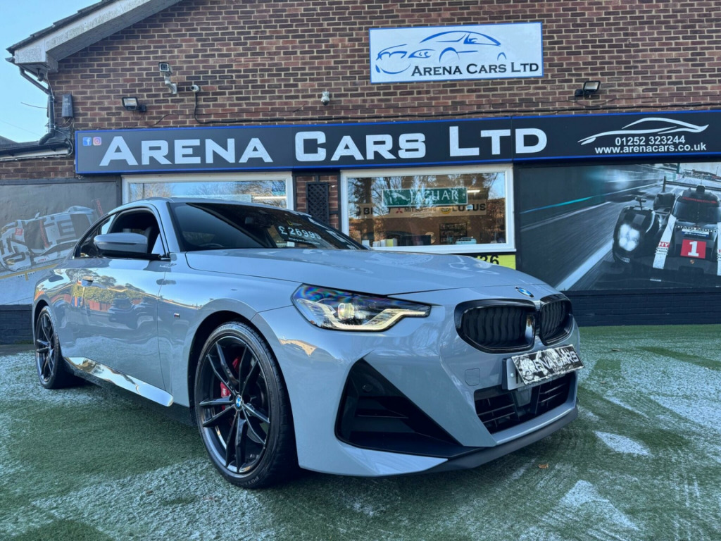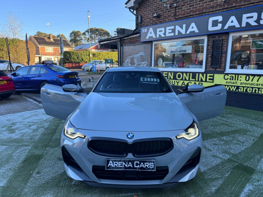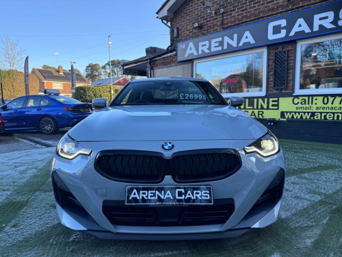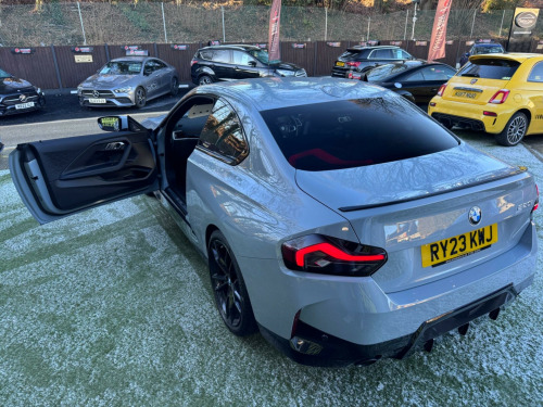 6 months or 12 months warranty available on this car. Finance available subject to status. Gloss Black Kidney GrillesFront & Rear Parking SensorsSelectable Driving ModesSat NavCruise Control & Speed LimiterAmazon AlexaBluetooth & AudioStop StartAmbient Interior LightingAuto HoldAuto LED LightsFlappy PaddlesGloss Black Rear DiffuserRear Lip SpoilerIsofixPre- Cooling Air ConDigital Dual Zone Climate Controlled Air ConHeated Front SeatsTouch ScreenTraction ControlKeyless Push Button StartElectric & Folding MirrorsAuto WipersDigital SpeedoOn Board ComputerService HistoryCup HoldersDigital SpeedoAndroid AutoImmobiliserAlarmDAB/FM RadioCup Holders16VSpotifyRemote Central LockingAuto Dim Rear View MirrorTwin Air BagsSide Air BagsPASRear Privacy GlassRear HeadrestsAero WipersElectric Front WindowsBrooklyn Grey MetallicChain No CambeltFront & Rear Centre ArmrestBlack Leather/Alcantara With Blue StitchingThis 2023 BMW 2 Series 220i M Sport is a superb example of German engineering, boasting a 2.0 litre petrol engine and Euro 6 emissions. As an M Sport variant, it comes with the desirable M Sport trim and the M Sport Pro Pack, which includes a premium branded sound system. Inside, you'll find a Harman Kardon Surround Audio Sound System, the BMW Connected Package Professional with Android Auto and Apple CarPlay, and Bluetooth connectivity with USB. For comfort, both the driver and passenger benefit from sport seat geometry, and the seats are heated.This BMW 2 Series offers an impressive highlight fuel economy of 44 mpg, demonstrating its efficiency. Furthermore, its low insurance group and low CO2 emissions indicate that running costs are kept to a minimum, making it a more economical choice compared to similar vehicles. rman kardon surround audio sound system, 19in alloy wheels - double spoke style - 791 m - jet black with mixed tyres, m sport brakes with red calipers, m sport pro pack, alcantara-sensatec - black with blue-black stitching, sun protection glazing, gloss black kidney grilles, front & rear parking sensors, selectable driving modes, sat nav, cruise control & speed limiter, amazon alexa, bluetooth & audio, stop start, ambient interior lighting, auto hold, auto led lights, flappy paddles, gloss black rear diffuser, rear lip spoiler, isofix, pre- cooling air con, digital dual zone climate controlled air con, heated front seats, touch screen, traction control, keyless push button start, electric & folding mirrors, auto wipers, digital speedo, on board computer, service history, cup holders, digital speedo, android auto, immobiliser, alarm, dab/fm radio, cup holders, 16v, spotify, remote central locking, auto dim rear view mirror, twin air bags, side air bags, pas, rear privacy glass, rear headrests, aero wipers, electric front windows, brooklyn grey metallic, chain no cambelt, front & rear centre armrest, black leather/alcantara with blue stitching, 19'' gloss black alloys