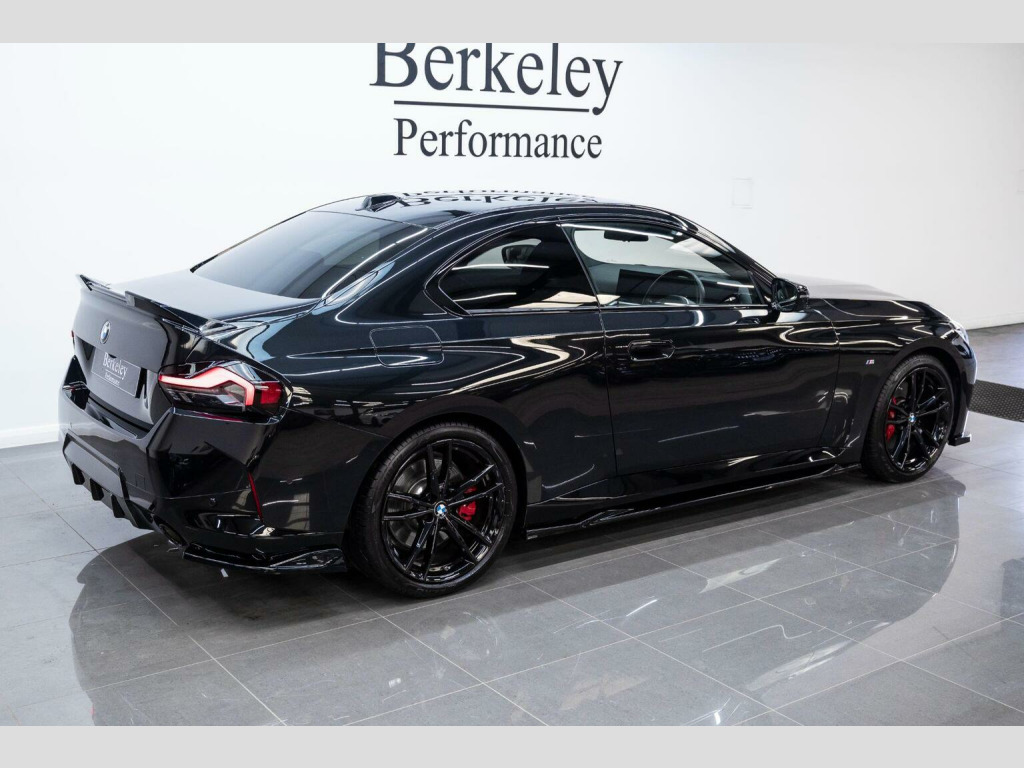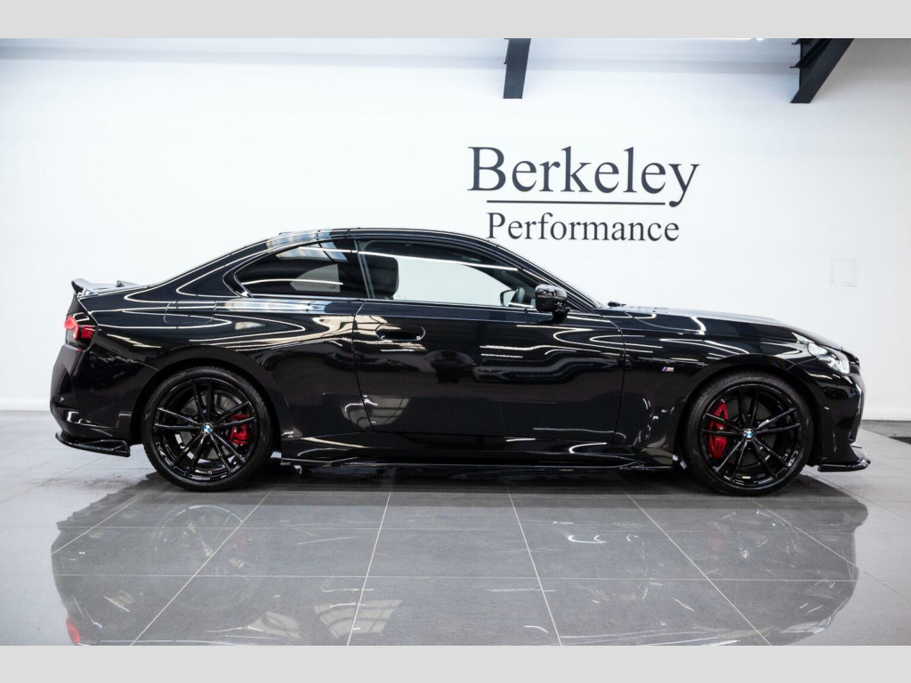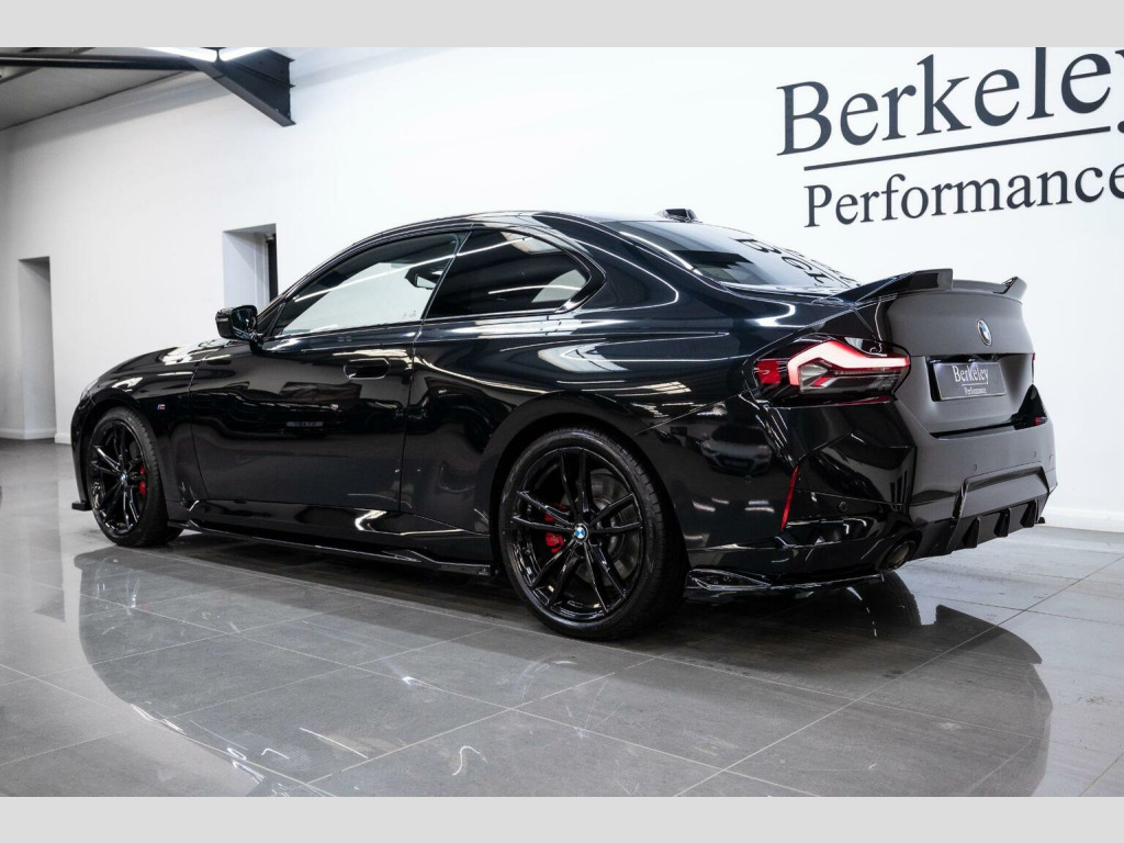 We are pleased to present this stunning BMW 2 Series 220i M Sport finished in Black Sapphire Metallic exterior paint complemented by a sophisticated Black leather interior with White Stitching. This particular example also benefits from a sleek Gloss Black Maxton design exterior styling kit and has a host of features including:, M Sport Pro Pack, Heads Up Display, Android/Apple car Play, Maxton Design exterior styling in High Gloss Black, Harman Kardon Surround Sound System, Sun Protection Glazing, Leather Interior- Black with WhiteStitching, 19in Alloy Wheels - Double Spoke Style - 791 M - Jet Black with Mixed Tyres, M Sport Leather Steering Wheel, M Sport Suspension and much more. The car comes with balance of BMW Warranty , Finance available from 8.9%apr subject to status. All viewings by appointment only, Visit www.berkeleyperformance.co.uk for further details.
