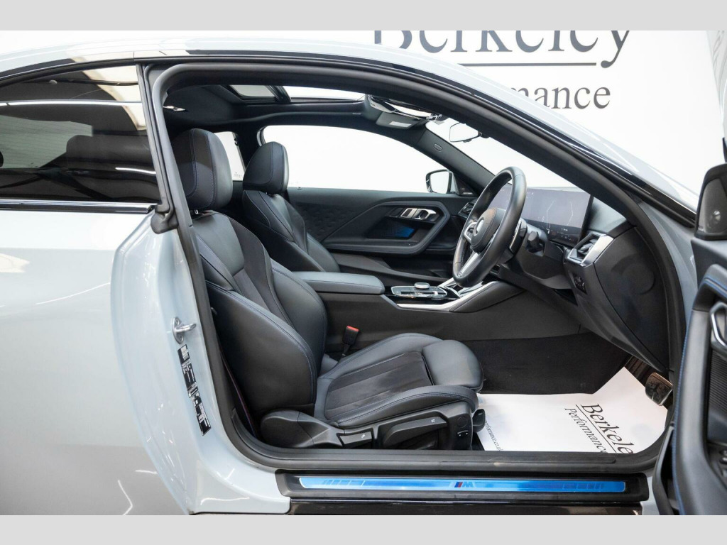 New Arrival at Berkeley Performance! We are proud to present this stunning, low mileage, BMW 2 Series 2.0 220i M Sport finished in Brooklyn Grey Metallic with contrasting Alcantara - Sensatec - Blue-Black Stitching interior. This specific vehicle has a Maxton Design gloss Black exterior styling kit fitted to it, consisting of a front splitter, side skirts, rear spoiler and rear side splitters. This vehicle comes loaded with the following optional extras;, Electric Glass Sunroof, Harman Kardon Surround Audio Sound System, Maxton Design Exterior Styling Kit - Gloss Black, M Sport Pro Pack, M Sport Brakes with Red Calipers, Alcantara-Sensatec - Black with Blue-Black Stitching