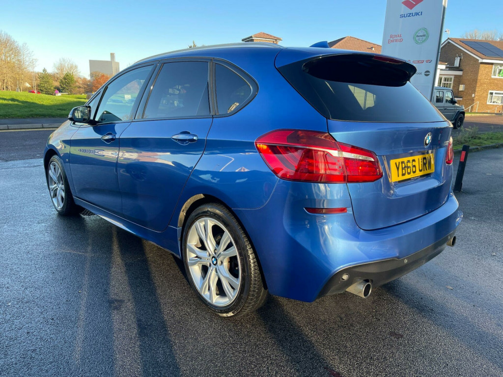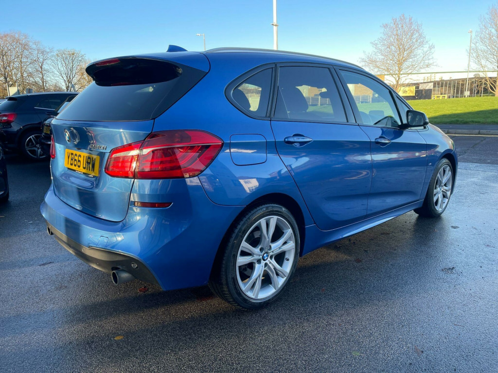 This 2017 BMW 2 Series Active Tourer 220i M Sport boasts a full service history, ensuring its excellent provenance. This Euro 6 compliant petrol model features the desirable M Sport trim and is equipped with the BMW Navigation Plus Package, including a Head Up Display, and the Comfort Access System for keyless entry. You'll also benefit from Adaptive LED Headlights with High Beam Assistant, heated seats for the driver and front passenger, and the convenient Concierge Service. A clear vehicle history check and a 3 month warranty provide added peace of mind.Experience impressive performance with a 0-62mph acceleration time of just 7.4 seconds, while enjoying a remarkable fuel economy of 49 mpg, which is better than many similar vehicles. This model also stands out with its low CO2 emissions, making it an environmentally conscious choice. Furthermore, the generous boot space offers practicality for all your needs, and the vehicle will be supplied with a 12 month MOT for your assurance. The last service was completed on 2025-10-27.. 12V Power Socket - Centre Console, 12V Power Socket - Passenger Footwell, 12V Power Socket in Centre Console Rear with Blanking Plug, 18in Alloy Wheels - M Double-Spoke - 486, 3.5mm Auxiliary Input Point for Auxiliary Playing Devices, 40-20-40 Electrically Split Folding Rear Seat with 60-40 Manual Sliding Bench, Active Guard, Air Conditioning - Automatic with Two-Zone Control, Airbags, Alarm System - Thatcham 1 with Remote Control and Engine Immobiliser, Ambiance Lighting - Switchable, Armrest Front - Free Standing and can be Fixed in Five Positions, Automatic Tailgate, BMW ConnectedDrive Online Services, BMW Emergency Call, BMW Navigation, BMW Professional Radio with Single CD Player - with MP3 Playback Compatibility, BMW TeleServices, Battery Safety Cut Off, Bluetooth Hands Free with USB Audio Interface, Brake Pad Wear Indicator - Front and Rear, Bumper System Front and Rear - Replaceable Deformation Elements for Impacts Up to 9mph, Central Locking Switch - Doors - Fuel Filler Cap - Luggage Compartment, Check Control Warning System for Monitoring of Lights and Door-Luggage Compartment Open Warning, Child Proof Locking System - Rear Doors, Child Seat ISOFIX Attachment For The Two Outer Rear Seats And Front Passenger Seat, Contrast Stitching - Instrument Panel, Crash Sensor, Cup Holders x2, DAB Digital Radio, DSC - Dynamic Stability Control Plus, Direction Indicator Lights - Clear Lenses, Door Mirrors - Electrically Adjustable, Door Mirrors - Integrated Indicator Side Repeaters, Door Sill Finishers - M Designation - Front, Drive Performance Control with ECO PRO - Comfort and Sport Modes, Dynamic Brake Lights, EDLC - Electronic Differential Lock Control, EPS - Electric Power Steering with Servotronic, Electric Windows - Front and Rear with Open-Close Fingertip Control - Anti-Trap Facility and Comfort Closing Function, Electrically Operated Handbrake - Parking Brake, Exhaust Tailpipe - Chrome Finisher - Single Round Left, Extended Storage, Exterior Parts in Body Colour, Exterior Trim - High-Gloss Shadowline, First Aid Kit and Warning Triangle, Floor Mats - Velour, Front Fog Lights, Gearshift Lever with M Designation, Glove Box with Light, Grab Handles - Integrated in Roof Lining x4, Halogen Headlights, Headlining - Anthracite, Heat Protection Glazing with Green Tint, Heated Windscreen Washer Jets, High Level Third Brake Light, Instrument Cluster, Interior Lighting - Front Centre Over Interior Mirror and Rear Centre, Interior Trim - Aluminium Hexagon with Pearl Chrome Finisher, Kidney Grille - Chrome Extra-Wide High-Gloss Black Vertical Slats, Lights-On Warning by Audio Warning Signal When Ignition is Switched Off, Locking Wheel Bolts, Luggage Compartment - Light, Luggage Compartment Access via BMW Roundel, M Aerodynamic Bodystyling, M Logo Designation Chrome - Side, M Sport Package, M Sport Steering Wheel, M Sport Suspension, Model Designation, Multifunction Controls for Steering Wheel, Non Smoker Package Including Open Storage Compartment, OBC - On Board Computer, Optimum Shift Indicator, PDC - Park Distance Control - Rear, Performance Control, Personal Profile - Extended, Rain Sensor with Automatic Headlight Activation, Rear Fog Light, Rear Seat Headrests - Three, Rear Window Aerial, Rear Window Wiper - Integrated Under Roof Spoiler, Remote Control Including Integrated Key - 2, Remote Control with Integrated Key with Silver Highlight and M Designation, Reversing Light in Rear Light Clusters, Run Flat Tyres, Seat Belt Security Check for Driver and Front Passenger, Seats - Sliding Rear Bench, Servotronic Steering, Shark Fin, Side Armrests - Front and Rear Integrated into Door Trim, Side Impact Protection, Sport Seats - Front, Standard Seat for Driver and Passenger with Manual Adjustment, Start-Stop Button with Comfort Go Keyless Engine Start and Auto Start-Stop Deactivation Button, Steering-Wheel Column Adjustment - Manual, Sun Visors with Vanity Mirrors and Ticket Holder, TPMS - Tyre Pressure Monitoring System, Three-Point Seat. Full service history