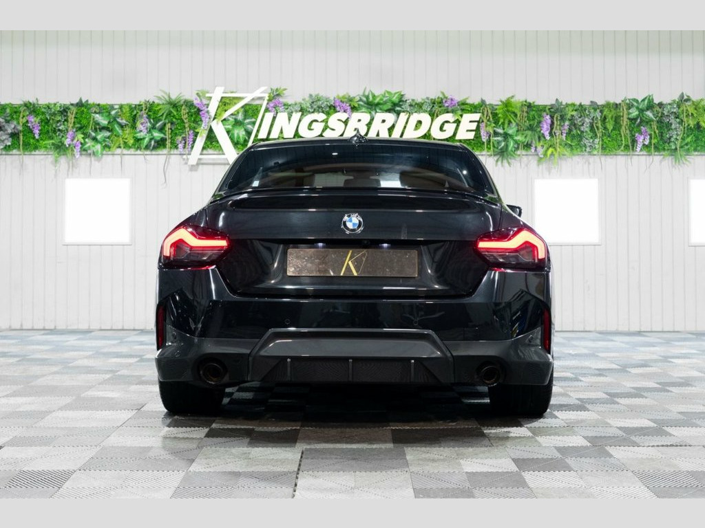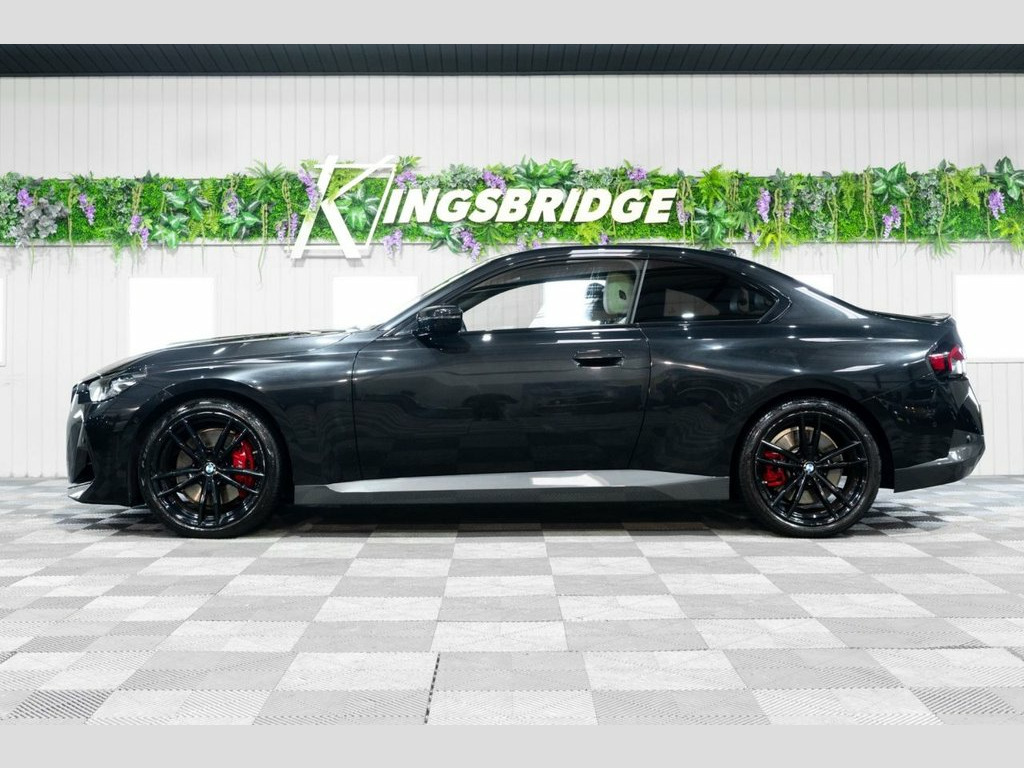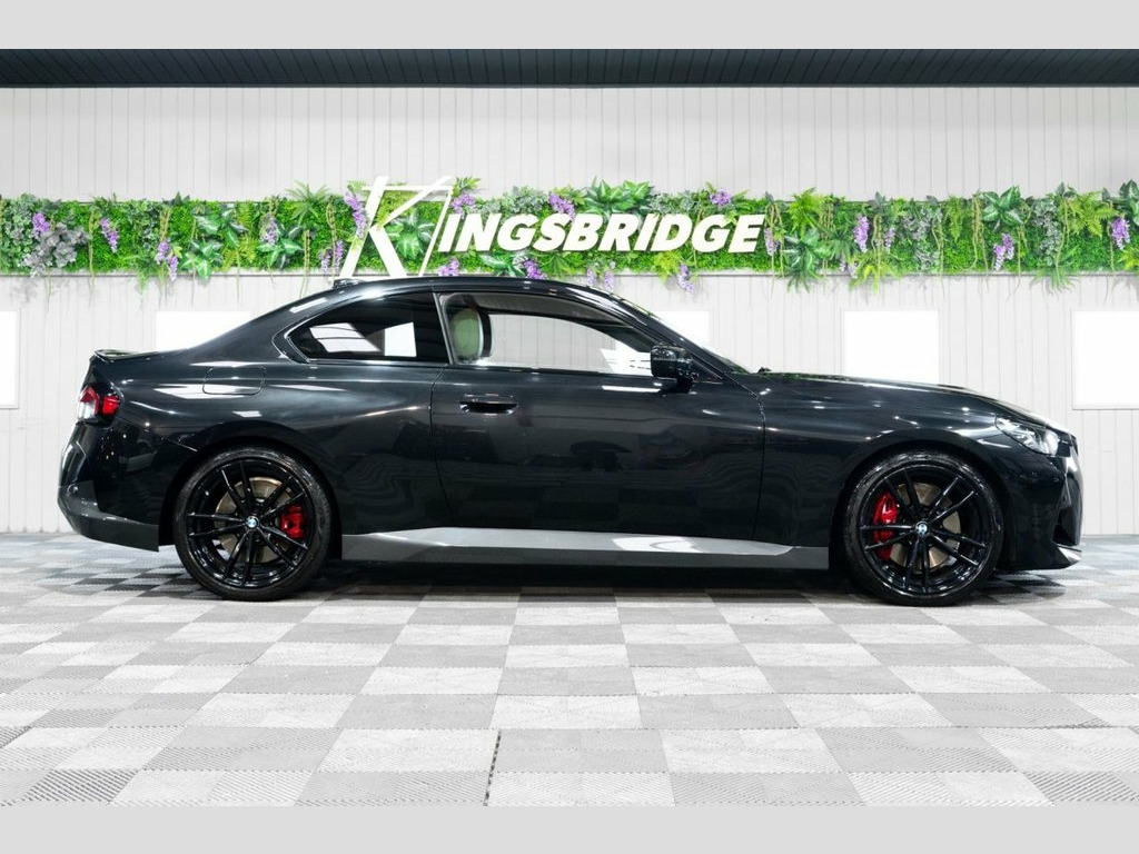 2022 BMW 220i M Sport 2dr Coupe Auto with a full Service History and a superb specification including: 19in Alloy Wheels - Double Spoke Style - 791 M - Jet Black with Mixed Tyres £Black Sapphire - £595.00 £Comfort Pack - £1250.00 £Front Lumbar Support - £195.00 £Harman Kardon Surround Audio Sound System - £750.00 M Sport Brakes with Red Calipers £M Sport Pro Pack - £2500.00 £Steering Wheel - Heated - £170.00 £Sun Protection Glazing - £320.00 £Vernasca Leather - Oyster - £1150.00 Heated Seats. Comfort pack contains: Comfort access system Electric front lumbar support Electric front seat adjustment with driver memory Heated steering wheel The M Sport Pro Pack on a BMW 220i adds sportier styling and technology, including M Sport exterior styling, M Sport brakes with red calipers, and a M Sport spoiler. It also includes interior and exterior enhancements like M Sport suspension, M Sport steering wheel, larger alloy wheels, and high-gloss black trim. Tech-wise, it features Parking Assistant, and a wireless smartphone charger. 12V Power Socket in Centre Console Front, 18in Alloy Wheels - Double Spoke Style -, Acoustic Windscreen for Reduced Driving , Active Guard Plus, Adaptive LED Headlights, Air Conditioning - Automatic with Three-, Airbags - Driver and Front Passenger Sid, Airbags - Driver and Passenger, Airbags - Head - Front and Rear, Alarm System Thatcham Category 1 with Re, Ambient Lighting, Armrest - Front, Attentiveness Assistant, Automatic Windscreen Wipers and Headligh, Automatically Dimming Rear View Mirror, BMW Connected Package Professional, BMW ConnectedDrive Online Services, BMW Legal Emergency Call, BMW Live Cockpit Professional, BMW Mobility Tyre Sealing System, BMW TeleServices, Bluetooth - Audi