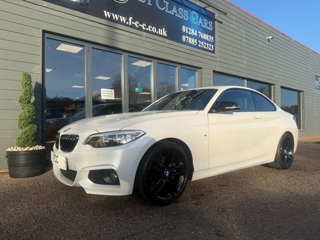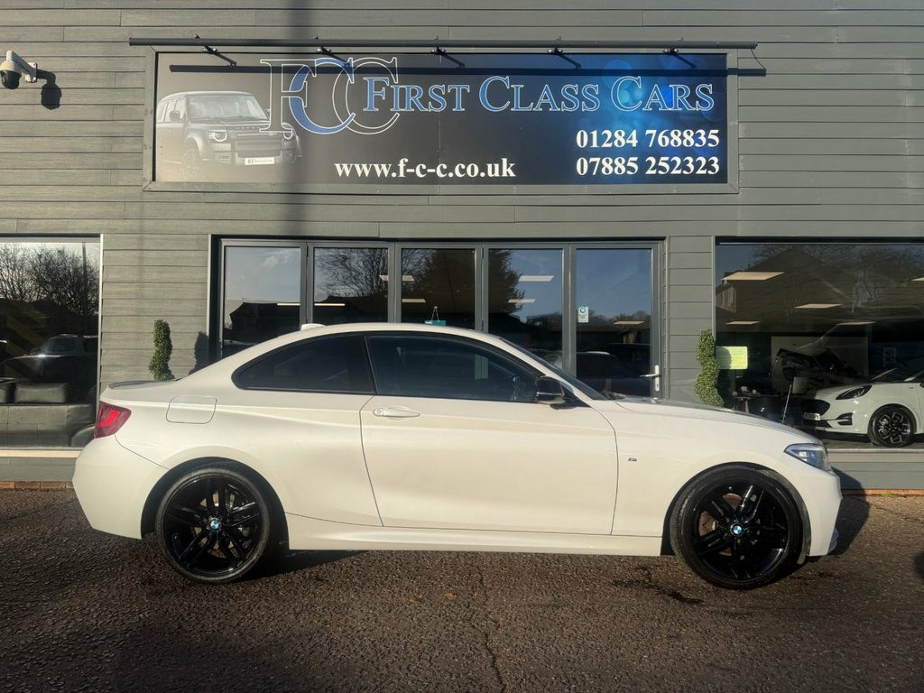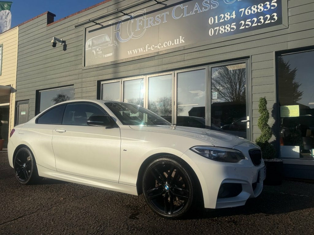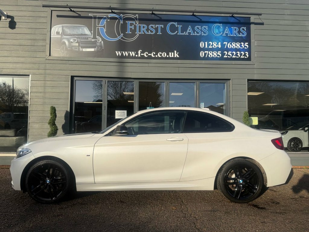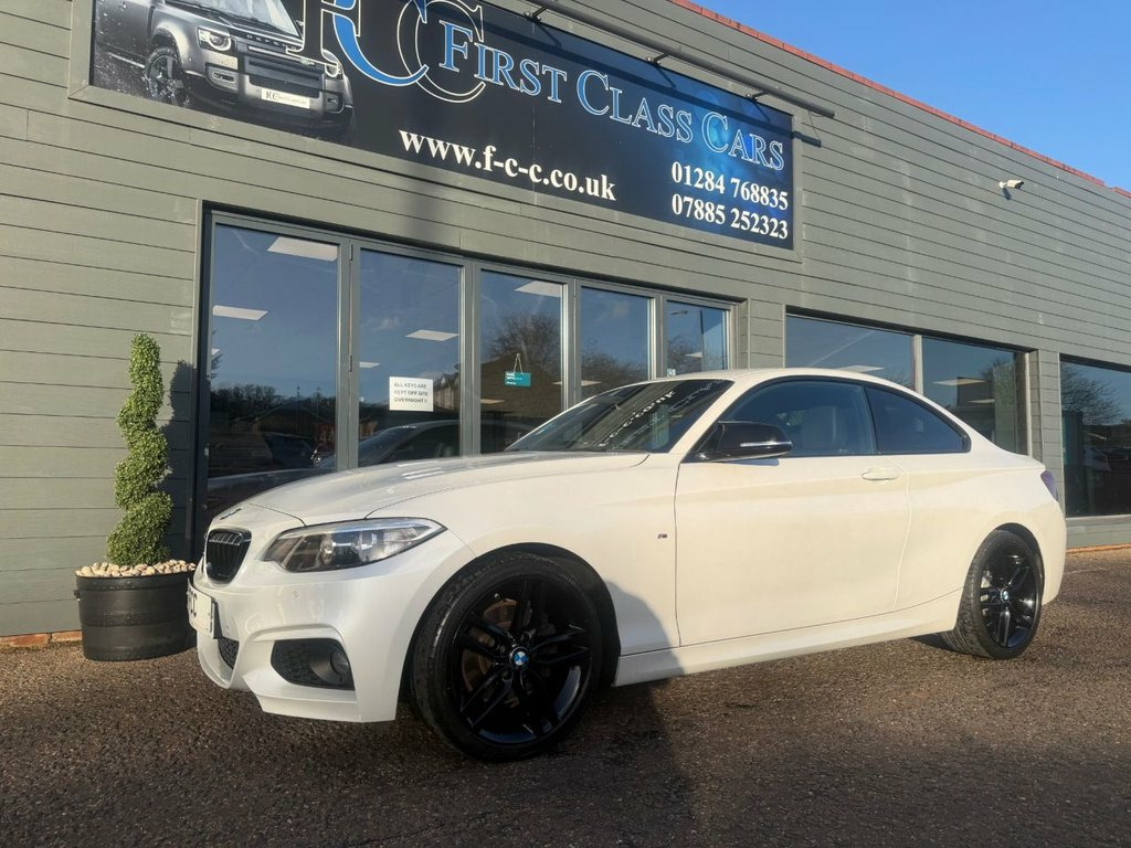 THIS VERY LOW MILEAGE COUPE HAS UNMARKED GLOSS BLACK ALLOYS, MIRROR CAPS AND FRONT GRILLES. ONLY 3 OWNERS SINCE NEW, MINERAL WHITE PEARL PAINT WITH BLACK LEATHER HEATED SEATS. PLEASE CALL FOR A HP FINANCE DEAL WITH RATES FROM 9.9%APR STS AND PROFILE CHECKS. WE MAY RECEIVE A COMMISSION FROM THE LENDER ON INTRO TO THEM. OPEN 6 DAYS A WEEK, CLOSED ON SUNDAYS. 12V Power Socket - Centre Console, 12V Power Socket - Passenger Footwell, 18in Alloy Wheels - M Double Spoke - 461, 6.5in Colour Display Screen, ABS - Anti Lock Braking System, ASC - Automatic Stability Control, Air Conditioning - Automatic - Single Zo, Airbags - Driver, Airbags - Front Side, Airbags - Head - Front and Rear, Airbags - Passenger, Airbags - Passenger Deactivation, Alarm System Thatcham 1 with Remote Cont, Ambient Light - Front, Ambient Lighting - Switchable BMW Classi, Armrest - Front and Rear Integrated into, Armrest - Front with Sliding Adjustment, Automatic Lock when Driving Away Selecta, Auxiliary Input, BMW Emergency Call, BMW Professional Radio - Single CD and M, BMW Tel