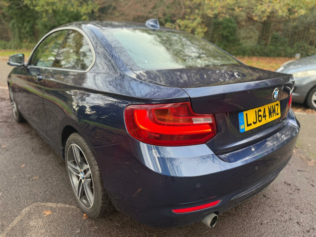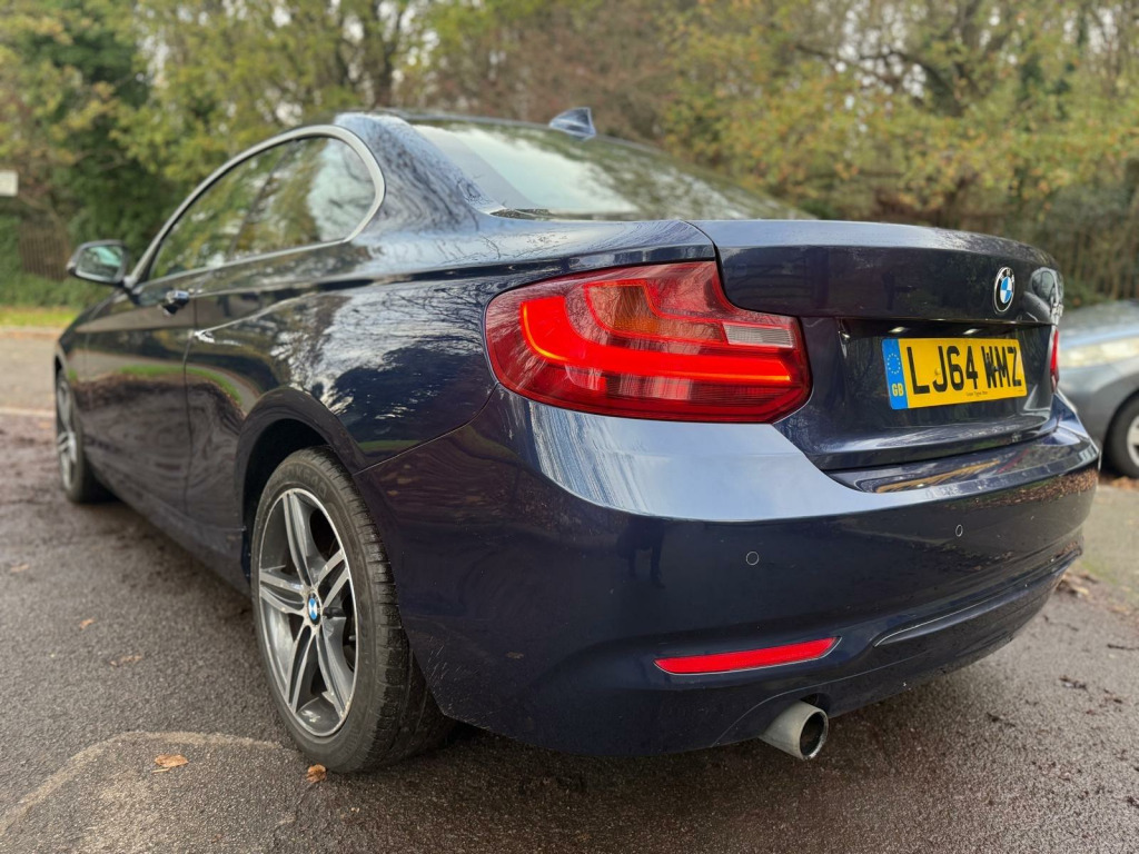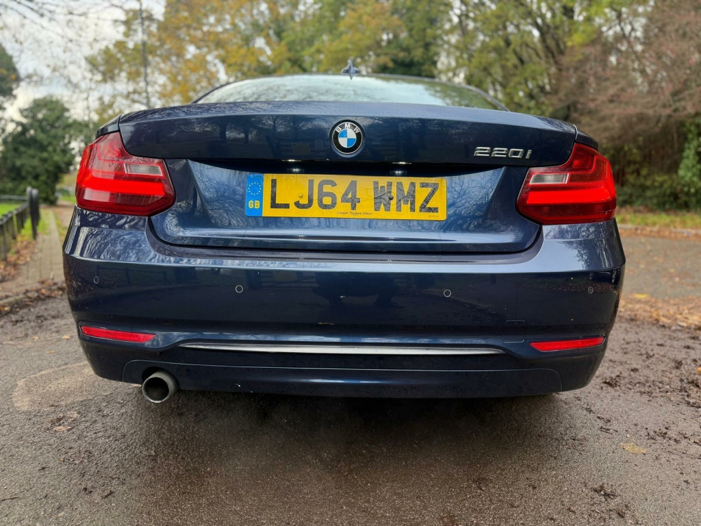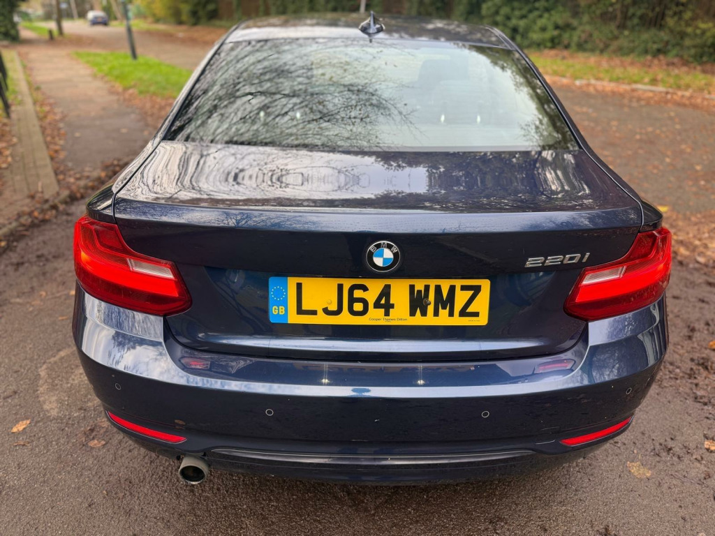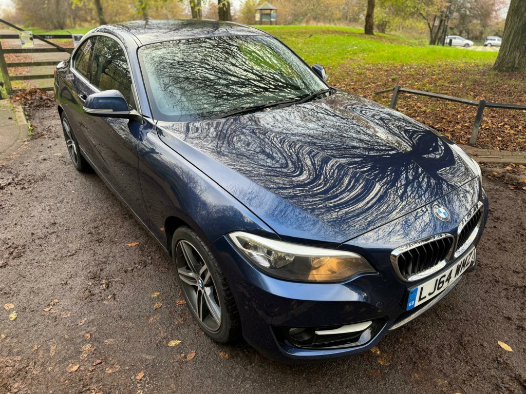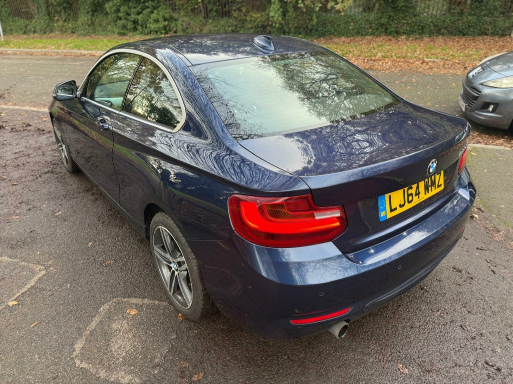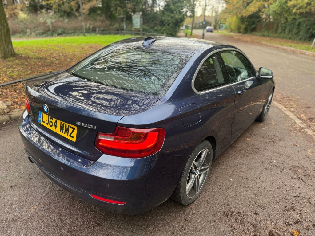Free 3 Months warranty, 5 Days driveaway insurance available, Used by 2 owners from new, 2 Fob Keys.Wide collection of vehicles available on our website at www.blueautospro.co.uk or please give us a call on 07555218777 if you wish to book a viewing appointment or visit our showroom in North West London in Wembley area. 30-32 Blackbird Hill, The Hyde, Middlesex, NW9 8SD.Boasting a clear vehicle history and only two previous owners, this 2014 BMW 2 Series 220i Sport presents a compelling proposition. Powered by a 2.0 litre petrol engine, this Euro 6 compliant model offers an impressive fuel economy of 45 mpg and benefits from an MOT valid until November 2026. The Sport trim is enhanced with Chrome line exterior trim and brushed aluminium interior trim, complemented by front 4 way electric lumbar support seats for added comfort. Further refinements include automatically dimming folding door mirrors and extended lighting, all contributing to a well appointed driving experience.This BMW 2 Series stands out with its low CO2 emissions and placement within a low insurance group, indicating that running costs are kept to a minimum compared to similar vehicles. The partial service history, with the last service recorded at 99,000 miles on 13 November 2025, alongside a clear vehicle history check, provides confidence in its provenance. A 3 month warranty is also included, offering peace of mind for the new owner., terior comfort package, enhanced bluetooth telephone preparation with usb audio interface and voice control, door mirrors - folding - automatically dimming, seats - front 4-way electric lumbar support, extended lighting, exterior trim - chromeline, interior trim - brushed aluminium, extended storage, interior trim finisher - oxide silver matt, track cloth - anthracite - grey highlight with black interior, 12v power socket - front x2, 17in alloy wheels - light star spoke - 379, 6.5in colour display screen, abs - anti lock braking system, adb - automatic differential brake, asc - automatic stability control, air conditioning - automatic - single zone, airbags - curtain, airbags - driver, airbags - front side, airbags - passenger, airbags - passenger deactivation, alarm system thatcham 1 with remote control, ambient interior lighting, armrest - front with sliding adjustment, automatically dimming rear view mirror, auxiliary input, bmw emergency call, bmw mobility system, bmw navigation system, bmw professional radio - single cd and mp3, bmw teleservices, bluetooth hands free with usb audio interface, brake assist, brake drying, brake pad wear indicator, bumpers - body colour, cbc - cornering brake control, central locking - remote, child seat isofix attachment - rear x2, comfort go keyless engine start, crash sensor, crash sensor - activating central locking-hazard warning lights-fuel cut off, cup holders - front x2, dab digital radio, dbc - dynamic brake control, dsc - dynamic stability control plus, dtc - dynamic traction control, daytime running lights, door handles - body colour, door mirrors - body coloured housing, door mirrors - electric and heated and aspheric, door sill finishers - sport designation, drive performance control with comfort-sport and sport modes, dynamic brake lights, electric windows - front and rear with open-close fingertip control, first aid kit, floor mats - velour, follow me home headlight function, front fog lights, grab handles - in roof lining x4, halogen headlights, handbrake lever - gear lever knob and gaiters in leather, head restraints - rear and folding, headlights - automatic activation, heated windscreen washer jets, high level third brake light, hill start assist, interior trim - black high gloss, interior trim finisher - coral red, kidney grille - chrome with black vertical slats, luggage compartment - lashing eyes x2, multifunction controls for steering wheel, navigation system - bmw professional multimedia, obc - on-board computer, optimum shift indicator, pdc - park distance control - rear, personal profile, power steering - electric, rain sensor, roof mouldings - body colour, run flat tyres, seats - 60-40 split folding rear, seats - front - manual height adjustment, shark fin aerial, sport seats - front, steering column with manual reach and rake adjustment, steering wheel - leather - sports with red stitching, sun visors with vanity mirrors, tpms - tyre pressure monitoring system, usb audio interface, warning triangle, automatically dimming rear view mirror