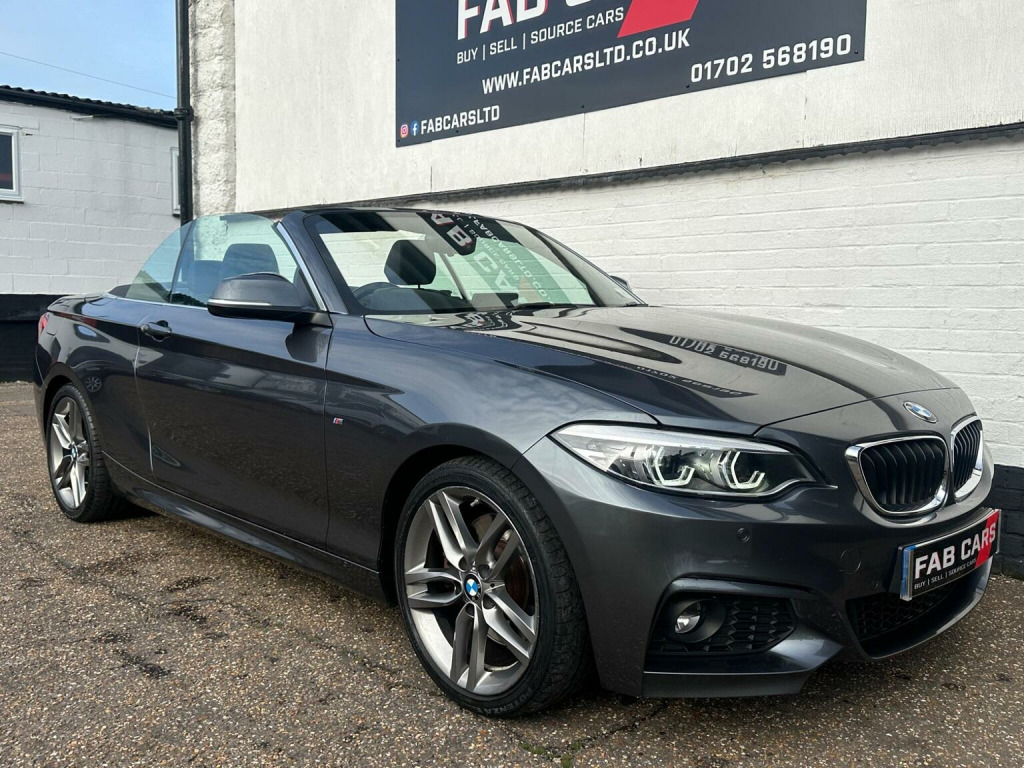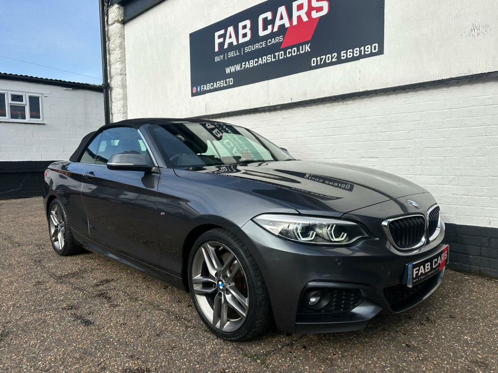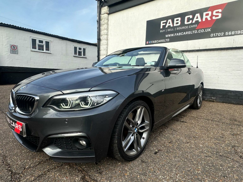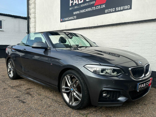 FAB CARS LTD take great pleasure in presenting this stunning BMW 2 Series 2.0 230i GPF M Sport Auto Euro 6 (s/s) 2dr, The 230i Convertible brings the looks with the sporty M Sport variant youll have the sharper bumpers, sport suspension, nicer alloys and generally more aggressive presence. The fabric soft-top works well & gives the car a more classic convertible feel. The soft-top is triple-layered & provides good insulation (both acoustically & thermally) for a convertible. Up front, youll find a well-finished cabin typical of the premium segment. Materials, build quality and switchgear are solid. The infotainment (BMWs iDrive) remains one of the stronger systems in the class. The heart of the car is the 2.0 litre turbocharged four-cylinder, with strong output of 48BHP. Being rear-wheel drive gives the car real dynamic character. The M Sport suspension adds sharper feedback & better body control. The car is engaging & fun to drive. Inside the car has BMW sat nav, Heated seats, cruise control with braking function, air con, dab, xenon headlights, digital dashboard, front and rear parking sensors, great black leather seats, LCI face lift, this is a 1 Owner car with full BMW service history. great example. FREE 6 months nationwide warranty covering electrical & mechanical parts + VAT + Labour. *Option to extended warranty to 12, 24, 36 months. *We can offer a nationwide delivery. Bespoke finance packages available HPI Clear, V5 & all relevant car docs. This lovely car looks & drives superb. At FAB CARS LTD we dont just sell cars, we do everything possible to get you on the road with your perfect vehicle. Check our great reviews. All cars Prepped to a high standard, *Most cars can be driven away the same day. We pride ourselves on our fantastic 5-star reputation, repeat business & referrals from many happy customers. All Payment methods accepted. Independent mechanical inspection welcome. test drive with a no pressure relaxed environment. P/X considered. Viewing Appointment only. Please call for more information, or to arrange an appointment on 01702568190