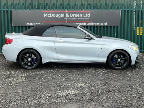 Experience pure driving pleasure with this striking BMW 2 Series 2.0 230i M Sport Convertible, now available at McDougal and Breen. Powered by a lively petrol engine paired with a smooth automatic gearbox, this elegant convertible delivers exhilarating performance with effortless refinement, while the M Sport styling adds a bold and athletic presence from every angle. With its premium interior, advanced technology and beautifully balanced handling, every journey feels special whether the roof is up or down. This BMW offers the perfect blend of open air freedom, everyday comfort and iconic German engineering, making it an outstanding choice for drivers who demand style, excitement and quality in one exceptional package. You can buy with confidence when visiting this family run business! We offer a no pressure relaxed experience for your next big purchase at our site in Benton. Pay us a visit, read the reviews, you won't be disappointed. All vehicles receive/come with: 125 Point Pre Delivery Inspection as Part of our - AA Promise 12 Months Free AA Assistance 3 Months - McDougal and Breen Ltd Repair Agreement (12 Month Extended Warranty Available) 6 Months or more MOT (Less than 6 months receives a new MOT) All MOT Advisories taken care of Serviced Up to Date Amazing rates of Finance on Our Hire Purchase and PCP Products All vehicles FULLY prepared in our State of The Art Facilities with OE Spec Branded Parts Full Valet Give us a call or pop in, you won't be di 12V Power Socket - Centre Console, 12V Power Socket - Passenger Footwell, 18in Alloy Wheels - M Light Double Spoke, 3.5mm Auxiliary Input Point for Auxiliar, Acoustic Soft-Top in Anthracite, Active Differential Brake - ADB Sport - , Air Conditioning - Automatic - Single Zo, Airbags, Alarm System - Thatcham 1 with Remote Co, Ambient Lighting - Switchable, Armrest - Front with Sliding Adjustment, BMW ConnectedDrive Online Services, BMW Emergency Call, BMW Navigation, BMW Professional Radio with Single CD Pl, BMW TeleServices, Battery Age Recognition Function, Battery Safety Cut Off, Bluetooth Hands-Free Facility with USB A, Brake Pad Wear Indicator, Bumper System - Front and Rear, Central Lock