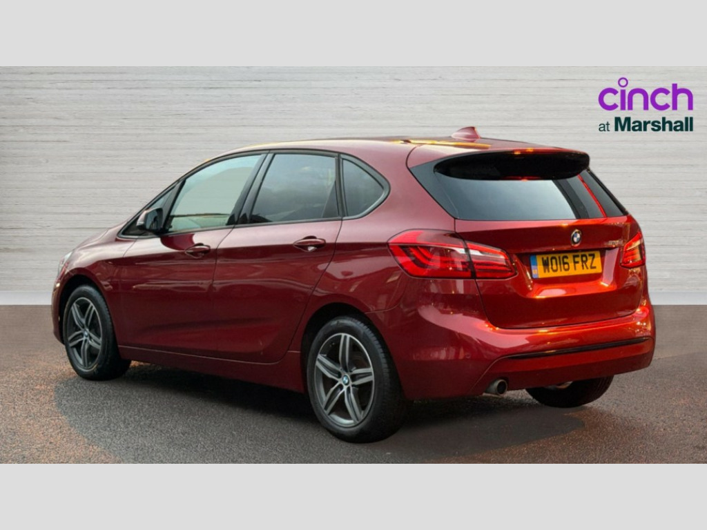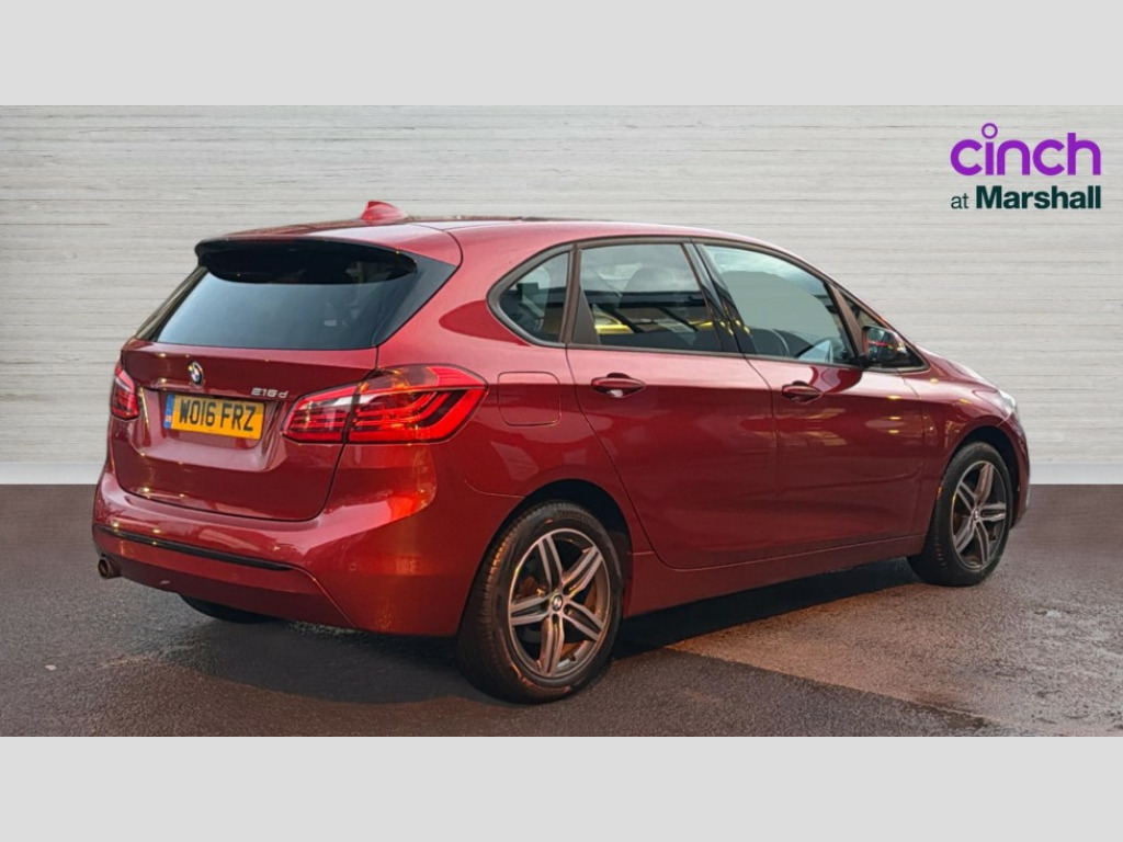 BMW 2 Series 216d Sport 5dr Attentiveness assist, Automatic tailgate operation, BMW Online services, BMW Teleservices, Check control system, Forward collision warning, Lights on warning, Oil temperature gauge, On board computer, Outside temperature display, Personal Profile, Service interval indicator, Speed limiter, Stop/start button, Diesel particulate filter, Drive Performance Control, Electronic differential lock, Auxiliary point for auxiliary devices, Bluetooth audio streaming, BMW professional radio/CD/MP3, DAB Digital radio, Body colour bumpers, Body colour door handles, Body colour roof mouldings, Chrome exhaust tailpipe, Chrome kidney grille with black vertical slats, Door mirror integrated indicators, Electric adjustable heated door mirrors, Electric front/rear windows with one touch/auto up/down, Exclusive door sill finishers, Follow me home headlights, Front fog lights, Heat insulating tinted glass, Heated windscreen washer jets, High beam assistant, LED daytime running lights, Rain sensor including auto headlights activation, Rear wiper, Welcome lighting, 12V socket in rear centre console, 12V sockets in front centre console and passenger footwell, 3 rear headrests, 3 spoke sports leather multi-function steering wheel, 4 grab handles, 40:20:40 split folding rear bench seat, Advanced multicolour ambient light and LED interior light, Anthracite Velour floor mats, Dual zone automatic air conditioning, Front armrest, Front cupholders x 2, Front head restraints, Front sports seats with electric side bolster adjustment, Front/rear armrests within door panels, Illuminated glovebox, Isofix front passenger and rear seat preparation, Luggage compartment lighting, Reach + rake adjustable steering column, Rear centre armrest, Sliding rear seats, Extended storage pack - 2 Series Active Tourer, 3 point seatbelts on all seats, ABS, BMW emergency call, Brake assist function, Childproof rear door locks, Collision mitigation braking system, Crash Sensor - activates hazard/interior lighting + unlocks doors, Driver/Front Passenger airbags, DSC+, Dynamic Traction Control - DTC, Front and rear curtain airbags, Front passenger airbag deactivation, Front seatbelt force limiters, Front seatbelt pretensioner, Front side airbags, Hill start assist, Seatbelt warning, Side impact protection, Tyre pressure monitoring system, Warning triangle and first aid kit, Drive away door locking, Electronic immobiliser, Key integrated remote control central locking, Locking wheel bolts, Remote control Thatcham category 1 alarm