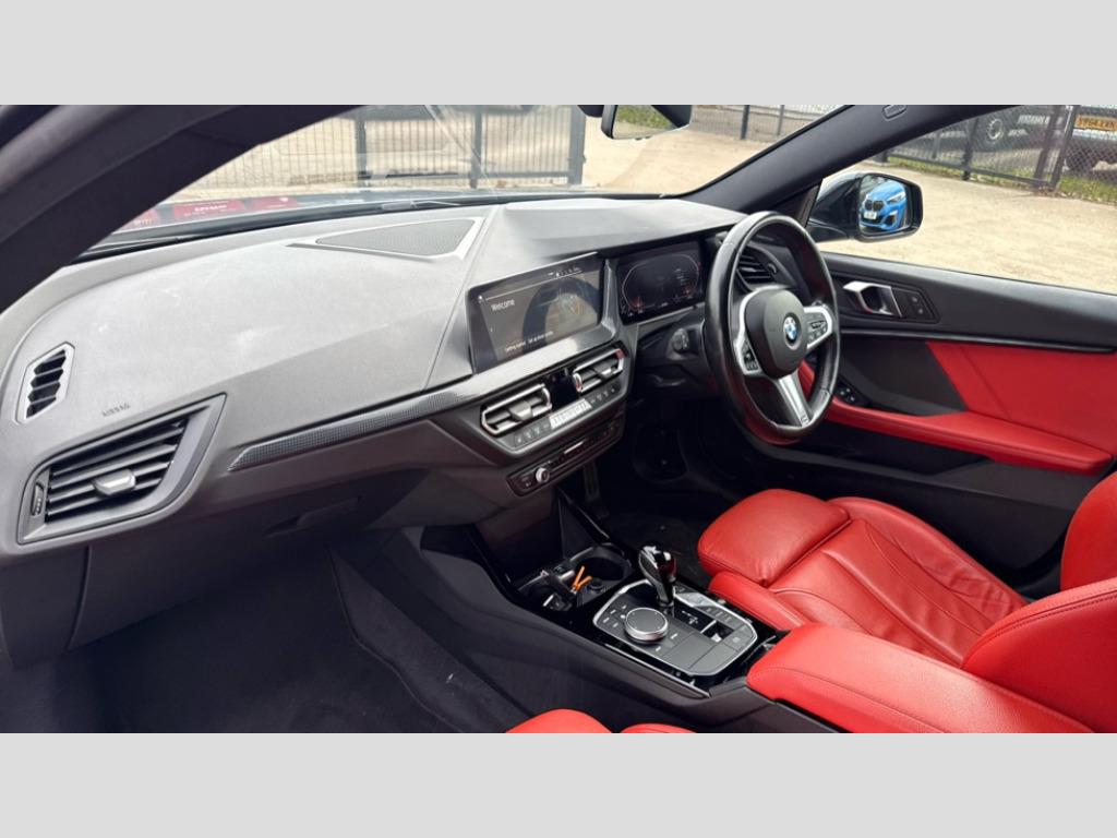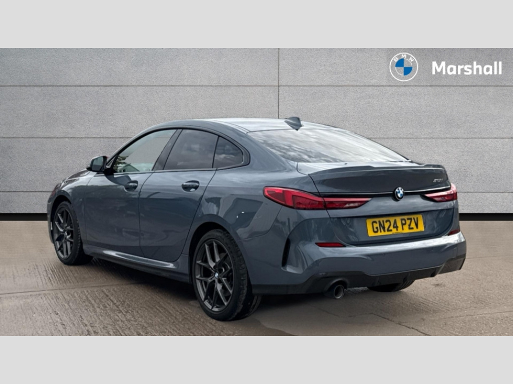 BMW 2 Series 218i [136] M Sport 4dr DCT Active guard plus, Attentiveness assist, Auto start-stop, BMW ConnectedDrive online services, BMW Intelligent Personal Assistant, BMW Live Cockpit Professional with 10.25" high resolution instrument and control display, BMW Online services, BMW operating system with 7.0 mid interface, BMW Teleservices, Check Control warning system for monitoring of lights and door/luggage compartment open warning, Cruise control with braking function, iDrive controller with 7 short cut favourite buttons on centre console, Integrated navigation data with map data via USB +features such as 3D landmarks and micro city models, Integrated owners handbook, Intelligent voice assistant, Lane departure warning system, M Sports steering, On board computer - average speed+fuel consumption, service interval, clock/date, odometer/trip meter, outside temperature display and ice warning, Optimum shift indicator, Personal Profile, Pull away assistant, Speed limiting function, Aluminium lightweight construction, Balancer shaft, Double VANOS, Drive performance control with ECO PRO comfort + sport mode, Dual clutch automatic transmission, Electronic differential lock, High precision injection, M Sport suspension with stiffer spring/damper set-up and vehicle lowered by 10mm + twin tube gasfilled shock absorbers and Anti roll bars, Performance Control, Petrol Particulate Filter, VALVETRONIC engine management, 2x USB Type C ports (for charging and data transfer), 4G LTE Connectivity with hard wied 4G network sim card, DAB digital radio, MP3 players and RDS double tuner, Auto wipers, Automatically dimming rear view mirror, Body colour door handles, Body colour mirror caps, Chrome 'M' logo side designation, Chrome exhaust single tailpipe, round, Direction indicator side lights integrated exterior mirrors, Electric windows - front and rear, with open/close fingertip control and trap release, Exterior mirrors - electrically folding with anti-dazzle, Fading support, Follow me home headlights, Front and rear bumper system with replaceable deformation elements, Front door sill finishers in black plastic with M designation in metallic look, Heated, electrically adjustable exterior mirror aspheric on driver side, convex on passenger side, High gloss black B pillar finish, High gloss shadow line exterior trim, High level third brake light, LED daytime running lights, LED front fog lights, Lightweight engineering, Model designation on right side of tailgate, Preparation for high beam assistant, Rain sensor with automatic headlight activation, Rear boot, Rear fog lights, Rear side wing doors, Reversing light in rear light cluster, Welcome lighting, 12V power socket in centre console, 2 cupholders in front centre console, 3 rear seat head restraints, 3 rear seats, 3 spoke M sports design leather steering wheel finished in nappa leather with specific M badge, Anthracite finished floor mats with contrasting surround, Anthracite headlining, Automatic two zone climate control air conditioning, Child seat ISOFIX attachment for two outer rear seats and front passenger seat with anchorage points, Conditioned based service, Driver and front passenger seat heating, Front and rear door pockets including bottle trays, Front and rear side armrests integrated into door trim, Front armrest foldable with integrated storage compartment, Front centre interior light over interior mirror and rear centre automatic interior light when door is opened/ignition switched off or via remote key, Front head restraints, Front passenger seat, Front sports seats with electric side bolster adjustment, Glove compartment, Luggage compartment lighting, Manually adjustment steering wheel column, Multi-function controls for steering wheel, Sun visors with vanity mirrors and insert tab, Through loading system with 40/20/40 split folding rear seat, Two lashing eyes, Additional interior lighting pack - 2 Series Gran Coupe, Connected pack professional - 2 Series Gran Coupe, Extended storage pack - 2 Series Gran Coupe, M Sport exterior styling aerodynamics pack - 2 Series Gran Coupe, 2 tone horn, Airbag - Front driver and passenger, front and rear head, front side, curtain head protection, manual deactivation of front passenger airbag possible, Anti lock braking system (ABS) with cornering brake control, BMW emergency call, Brake drying, Braking readiness, City braking function, Crash sensor activating of airbags, Unlocking doors, hazard warning lights, interior light, safety battery terminal, Dynamic stability control + (DSC+), Dynamic Traction Control - DTC, Electrically operated hand brake, Rear brake discs, Rear child proof door locks, Seat belt security check for driver and front passenger, Seatbelt warning, Side impact protection, Three point seat belts on all seats including front belt stopper, pyrotechnic belt tensioners and belt force limiters, Trailer stability control, Tyre pressure monitoring system, Ventilated front disc brakes, Warning triangle and first aid kit, Central locking switch for all doors, fuel filler cap and luggage compartment, Deadlocking function system to all doors, Drive away locking system on all doors and luggage compartment, Locking wheel bolts, Start/Stop button (illuminated) in centre console with keyless engine start and Auto Start-Stop deactivation button, Thatcham Cat.1 alarm and immobiliser, Two remote control key with integrated key - open/close doors/fuel flap/tailgate +1 button for unlock compartment with M design high gloss black inlay, Contrast stitching on instrument panel, 18" Burnished M double spoke bi-colour alloy wheels finished in orbit grey - style 819M, Reduced rolling resistance tyres