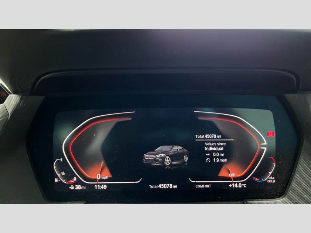 BMW 2 Series 218i [136] M Sport 4dr DCT Active guard plus, Attentiveness assist, Auto start-stop, BMW Intelligent Personal Assistant, BMW Live Cockpit Professional with 10.25" high resolution instrument and control display, BMW Online services, BMW operating system with 7.0 mid interface, BMW Teleservices, Check Control warning system for monitoring of lights and door/luggage compartment open warning, Cruise control with braking function, iDrive controller with 7 short cut favourite buttons on centre console, Integrated navigation data with map data via USB +features such as 3D landmarks and micro city models, Integrated owners handbook, Intelligent voice assistant, Lane departure warning system, M Sports steering, On board computer - average speed+fuel consumption, service interval, clock/date, odometer/trip meter, outside temperature display and ice warning, Optimum shift indicator, Personal Profile, Pull away assistant, Speed limiting function, Aluminium lightweight construction, Balancer shaft, Double VANOS, Drive performance control with ECO PRO comfort + sport mode, Dual clutch automatic transmission, Electronic differential lock, High precision injection, M Sport suspension with stiffer spring/damper set-up and vehicle lowered by 10mm + twin tube gasfilled shock absorbers and Anti roll bars, Performance Control, Petrol Particulate Filter, VALVETRONIC engine management, 2x USB Type C ports (for charging and data transfer), 4G LTE Connectivity with hard wied 4G network sim card, DAB digital radio, MP3 players and RDS double tuner, Auto wipers, Automatic headlight beam throw control, Automatically dimming rear view mirror, Body colour door handles, Body colour mirror caps, Chrome 'M' logo side designation, Chrome exhaust single tailpipe, round, Direction indicator side lights integrated exterior mirrors, Electric windows - front and rear, with open/close fingertip control and trap release, Exterior mirrors - electrically folding with anti-dazzle, Fading support, Follow me home headlights, Front and rear bumper system with replaceable deformation elements, Front door sill finishers in black plastic with M designation in metallic look, Heated, electrically adjustable exterior mirror aspheric on driver side, convex on passenger side, High gloss black B pillar finish, High gloss shadow line exterior trim, High level third brake light, LED daytime running lights, LED front fog lights, LED Headlights, Lightweight engineering, Model designation on right side of tailgate, Preparation for high beam assistant, Rain sensor with automatic headlight activation, Rear boot, Rear fog lights, Rear side wing doors, Reversing light in rear light cluster, Welcome lighting, 12V power socket in centre console, 2 cupholders in front centre console, 3 rear seat head restraints, 3 rear seats, 3 spoke M sports design leather steering wheel finished in nappa leather with specific M badge, Anthracite finished floor mats with contrasting surround, Anthracite headlining, Automatic two zone climate control air conditioning, Child seat ISOFIX attachment for two outer rear seats and front passenger seat with anchorage points, Conditioned based service, Driver and front passenger seat heating, Front and rear door pockets including bottle trays, Front and rear side armrests integrated into door trim, Front armrest foldable with integrated storage compartment, Front centre interior light over interior mirror and rear centre automatic interior light when door is opened/ignition switched off or via remote key, Front head restraints, Front passenger seat, Front sports seats with electric side bolster adjustment, Glove compartment, Glovebox with light, Luggage compartment lighting, Manually adjustment steering wheel column, Multi-function controls for steering wheel, Sun visors with vanity mirrors and insert tab, Through loading system with 40/20/40 split folding rear seat, Two lashing eyes, Additional interior lighting pack - 2 Series Gran Coupe, Extended storage pack - 2 Series Gran Coupe, M Sport exterior styling aerodynamics pack - 2 Series Gran Coupe, 2 tone horn, Airbag - Front driver and passenger, front and rear head, front side, curtain head protection, manual deactivation of front passenger airbag possible, Anti lock braking system (ABS) with cornering brake control, BMW emergency call, Brake drying, Braking readiness, City braking function, Crash sensor activating of airbags, Unlocking doors, hazard warning lights, interior light, safety battery terminal, Dynamic stability control + (DSC+), Dynamic Traction Control - DTC, Electrically operated hand brake, Rear brake discs, Rear child proof door locks, Seat belt security check for driver and front passenger, Seatbelt warning, Side impact protection, Three point seat belts on all seats including front belt stopper, pyrotechnic belt tensioners and belt force limiters, Trailer stability control, Tyre pressure monitoring system, Ventilated front disc brakes, Warning triangle and first aid kit, Central locking switch for all doors, fuel filler cap and luggage compartment, Deadlocking function system to all doors, Drive away locking system on all doors and luggage compartment, Locking wheel bolts, Start/Stop button (illuminated) in centre console with keyless engine start and Auto Start-Stop deactivation button, Thatcham Cat.1 alarm and immobiliser, Two remote control key with integrated key - open/close doors/fuel flap/tailgate +1 button for unlock compartment with M design high gloss black inlay, Contrast stitching on instrument panel, 18" Burnished M double spoke bi-colour alloy wheels finished in orbit grey - style 819M, Reduced rolling resistance tyres