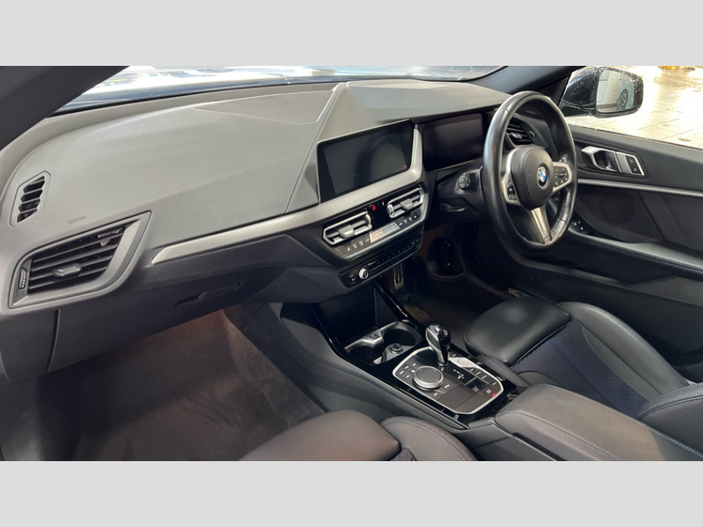 BMW 2 Series 218i [136] M Sport 4dr DCT Active guard plus, Attentiveness assist, Auto start-stop, BMW Intelligent Personal Assistant, BMW Live Cockpit Professional with 10.25" high resolution instrument and control display, BMW Online services, BMW operating system with 7.0 mid interface, BMW Teleservices, Check Control warning system for monitoring of lights and door/luggage compartment open warning, Cruise control with braking function, iDrive controller with 7 short cut favourite buttons on centre console, Integrated navigation data with map data via USB +features such as 3D landmarks and micro city models, Integrated owners handbook, Intelligent voice assistant, Lane departure warning system, M Sports steering, On board computer - average speed+fuel consumption, service interval, clock/date, odometer/trip meter, outside temperature display and ice warning, Optimum shift indicator, Personal Profile, Pull away assistant, Speed limiting function, Aluminium lightweight construction, Balancer shaft, Double VANOS, Drive performance control with ECO PRO comfort + sport mode, Dual clutch automatic transmission, Electronic differential lock, High precision injection, M Sport suspension with stiffer spring/damper set-up and vehicle lowered by 10mm + twin tube gasfilled shock absorbers and Anti roll bars, Performance Control, Petrol Particulate Filter, VALVETRONIC engine management, 2x USB Type C ports (for charging and data transfer), 4G LTE Connectivity with hard wied 4G network sim card, DAB digital radio, MP3 players and RDS double tuner, Auto wipers, Automatic headlight beam throw control, Automatically dimming rear view mirror, Body colour door handles, Body colour mirror caps, Chrome 'M' logo side designation, Chrome exhaust single tailpipe, round, Direction indicator side lights integrated exterior mirrors, Electric windows - front and rear, with open/close fingertip control and trap release, Exterior mirrors - electrically folding with anti-dazzle, Fading support, Follow me home headlights, Front and rear bumper system with replaceable deformation elements, Front door sill finishers in black plastic with M designation in metallic look, Heated, electrically adjustable exterior mirror aspheric on driver side, convex on passenger side, High gloss black B pillar finish, High gloss shadow line exterior trim, High level third brake light, LED daytime running lights, LED front fog lights, LED Headlights, Lightweight engineering, Model designation on right side of tailgate, Preparation for high beam assistant, Rain sensor with automatic headlight activation, Rear boot, Rear fog lights, Rear side wing doors, Reversing light in rear light cluster, Welcome lighting, 12V power socket in centre console, 2 cupholders in front centre console, 3 rear seat head restraints, 3 rear seats, 3 spoke M sports design leather steering wheel finished in nappa leather with specific M badge, Anthracite finished floor mats with contrasting surround, Anthracite headlining, Automatic two zone climate control air conditioning, Child seat ISOFIX attachment for two outer rear seats and front passenger seat with anchorage points, Conditioned based service, Driver and front passenger seat heating, Front and rear door pockets including bottle trays, Front and rear side armrests integrated into door trim, Front armrest foldable with integrated storage compartment, Front centre interior light over interior mirror and rear centre automatic interior light when door is opened/ignition switched off or via remote key, Front head restraints, Front passenger seat, Front sports seats with electric side bolster adjustment, Glove compartment, Glovebox with light, Luggage compartment lighting, Manually adjustment steering wheel column, Multi-function controls for steering wheel, Sun visors with vanity mirrors and insert tab, Through loading system with 40/20/40 split folding rear seat, Two lashing eyes, Additional interior lighting pack - 2 Series Gran Coupe, Extended storage pack - 2 Series Gran Coupe, M Sport exterior styling aerodynamics pack - 2 Series Gran Coupe, 2 tone horn, Airbag - Front driver and passenger, front and rear head, front side, curtain head protection, manual deactivation of front passenger airbag possible, Anti lock braking system (ABS) with cornering brake control, BMW emergency call, Brake drying, Braking readiness, City braking function, Crash sensor activating of airbags, Unlocking doors, hazard warning lights, interior light, safety battery terminal, Dynamic stability control + (DSC+), Dynamic Traction Control - DTC, Electrically operated hand brake, Rear brake discs, Rear child proof door locks, Seat belt security check for driver and front passenger, Seatbelt warning, Side impact protection, Three point seat belts on all seats including front belt stopper, pyrotechnic belt tensioners and belt force limiters, Trailer stability control, Tyre pressure monitoring system, Ventilated front disc brakes, Warning triangle and first aid kit, Central locking switch for all doors, fuel filler cap and luggage compartment, Deadlocking function system to all doors, Drive away locking system on all doors and luggage compartment, Locking wheel bolts, Start/Stop button (illuminated) in centre console with keyless engine start and Auto Start-Stop deactivation button, Thatcham Cat.1 alarm and immobiliser, Two remote control key with integrated key - open/close doors/fuel flap/tailgate +1 button for unlock compartment with M design high gloss black inlay, Contrast stitching on instrument panel, 18" Burnished M double spoke bi-colour alloy wheels finished in orbit grey - style 819M, Reduced rolling resistance tyres