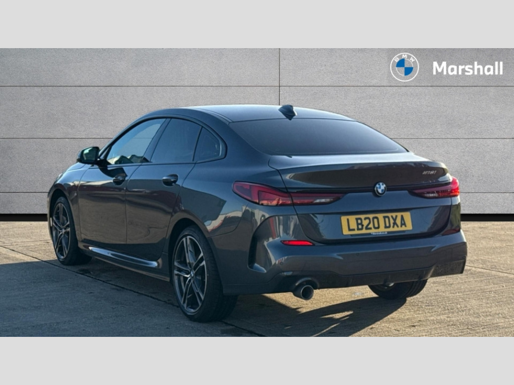 BMW 2 Series 218i M Sport 4dr Active guard plus, Attentiveness assist, Auto start-stop, BMW iDrive controller on centre console, BMW Intelligent Personal Assistant, BMW Live Cockpit Professional with 10.25" high resolution instrument and control display, BMW Online services, BMW operating system with 7.0 mid interface, BMW Teleservices, Check Control warning system for monitoring of lights and door/luggage compartment open warning, Connected eDrive Services, Cruise control with braking function, Eco pro mode, Electric Power Steering (EPS) with Servotronic, Integrated navigation data with map data via USB +features such as 3D landmarks and micro city models, Integrated owners handbook, Intelligent voice assistant, Lane departure warning system, On board computer - average speed+fuel consumption, service interval, clock/date, odometer/trip meter, outside temperature display and ice warning, Optimum shift indicator, Personal Profile, Pull away assistant, Smartphone integration, Speed limiting function, 6 speed manual transmission, Anti roll bar front and rear, Balancer shaft, Double VANOS, Drive performance control with ECO PRO comfort + sport mode, Electronic differential lock, High precision injection, M sport suspension, Performance Control, Petrol Particulate Filter, Twin tube gas filled shock absorbers with degressive characteristic curve, VALVETRONIC engine management, 2x USB Type C ports (for charging and data transfer), 4G LTE Connectivity with hard wied 4G network sim card, Bluetooth audio streaming, BMW Music, Connected music, DAB digital radio, MP3 players and RDS double tuner, Automatic headlight beam throw control, Automatically dimming rear view mirror, Body colour door handles, Body colour mirror caps, Chrome 'M' logo side designation, Chrome exhaust single tailpipe, round, Direction indicator side lights integrated exterior mirrors, Electric windows - front and rear, with open/close fingertip control and trap release, Exterior mirrors - electrically folding with anti-dazzle, Fading support, Follow me home headlights, Front and rear bumper system with replaceable deformation elements, Front door sill finishers in black plastic with M designation in metallic look, Heated, electrically adjustable exterior mirror aspheric on driver side, convex on passenger side, High gloss black B pillar finish, High gloss shadow line exterior trim, High level third brake light, LED daytime running lights, LED front fog lights, Lightweight engineering, Model designation on right side of tailgate, Preparation for high beam assistant, Rain sensor with automatic headlight activation, Rear boot, Rear fog lights, Rear side wing doors, Reversing light in rear light cluster, Welcome lighting, 12V power socket in centre console, 2 cupholders in front centre console, 3 rear seat head restraints, 3 rear seats, 3 spoke M sports design leather steering wheel finished in nappa leather with specific M badge, Anthracite floor mats, Anthracite headlining, Automatic two zone climate control air conditioning, Child seat ISOFIX attachment for two outer rear seats and front passenger seat with anchorage points, Conditioned based service, Dakota leather upholstery with perforation and contrast stitching, Driver and front passenger seat heating, Front and rear door pockets, Front and rear side armrests integrated into door trim, Front armrest foldable with integrated storage compartment, Front centre interior light over interior mirror and rear centre automatic interior light when door is opened/ignition switched off or via remote key, Front head restraints, Front passenger seat, Front sports seats with electric side bolster adjustment, Gearshift lever with M designation, Glove compartment, Glovebox with light, Luggage compartment lighting, Manually adjustment steering wheel column, Multi-function controls for steering wheel, Sun visors with vanity mirrors and insert tab, Through loading system with 40/20/40 split folding rear seat, Two lashing eyes, Connected pack professional - 2 Series Gran Coupe, Extended Lighting pack - 2 Series Gran Coupe, Extended storage pack - 2 Series Gran Coupe, M Sport exterior styling aerodynamics pack - 2 Series Gran Coupe, 2 tone horn, Airbag - Front driver and passenger, front and rear head, front side, curtain head protection, manual deactivation of front passenger airbag possible, Anti lock braking system (ABS) with cornering brake control, BMW emergency call, Brake drying, Braking readiness, City braking function, Crash sensor activating of airbags, Unlocking doors, hazard warning lights, interior light, safety battery terminal, Dynamic stability control + (DSC+), Dynamic Traction Control - DTC, Electrically operated hand brake, Rear brake discs, Rear child proof door locks, Seat belt security check for driver and front passenger, Seatbelt warning, Side impact protection, Three point seat belts on all seats including front belt stopper, pyrotechnic belt tensioners and belt force limiters, Trailer stability control, Tyre pressure monitoring system, Ventilated front disc brakes, Warning triangle and first aid kit, Central locking switch for all doors, fuel filler cap and luggage compartment, Deadlocking function system to all doors, Drive away locking system on all doors and luggage compartment, Locking wheel bolts, Remote control with integrated key with High-gloss Black inlay and M designation and 1 button for open/ close lock, window, open luggage compartment, Start/stop button with Comfort Go keyless engine start and auto Start/stop deactivation button, Thatcham Cat.1 alarm and immobiliser, Two remote control key with integrated key - one button for open and close doors/fuel flap/tailgate and separate button for unlock luggage compartment, Contrast stitching on instrument panel, 18" Burnished M double spoke bi-colour alloy wheels finished in orbit grey - style 819M, Reduced rolling resistance tyres