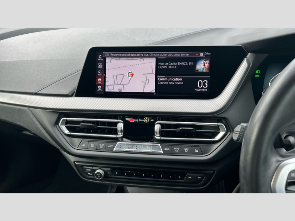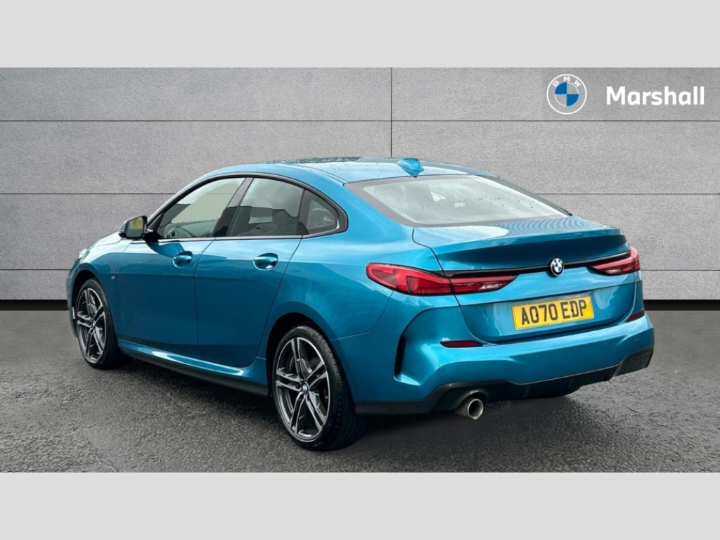 BMW 2 Series 218i M Sport 4dr DCT Active guard plus, Attentiveness assist, Auto start-stop, BMW iDrive controller on centre console, BMW Intelligent Personal Assistant, BMW Live Cockpit Professional with 10.25" high resolution instrument and control display, BMW Online services, BMW operating system with 7.0 mid interface, BMW Teleservices, Check Control warning system for monitoring of lights and door/luggage compartment open warning, Connected eDrive Services, Eco pro mode, Electric Power Steering (EPS) with Servotronic, Integrated navigation data with map data via USB +features such as 3D landmarks and micro city models, Integrated owners handbook, Intelligent voice assistant, On board computer - average speed+fuel consumption, service interval, clock/date, odometer/trip meter, outside temperature display and ice warning, Optimum shift indicator, Personal Profile, Pull away assistant, Smartphone integration, Speed limiting function, Anti roll bar front and rear, Balancer shaft, Double VANOS, Drive performance control with ECO PRO comfort + sport mode, Dual clutch automatic transmission, Electronic differential lock, High precision injection, M sport suspension, Performance Control, Petrol Particulate Filter, Twin tube gas filled shock absorbers with degressive characteristic curve, VALVETRONIC engine management, 2x USB Type C ports (for charging and data transfer), 4G LTE Connectivity with hard wied 4G network sim card, Bluetooth audio streaming, BMW Music, Connected music, DAB digital radio, MP3 players and RDS double tuner, Automatic headlight beam throw control, Automatically dimming rear view mirror, Body colour door handles, Body colour mirror caps, Chrome 'M' logo side designation, Chrome exhaust single tailpipe, round, Direction indicator side lights integrated exterior mirrors, Electric windows - front and rear, with open/close fingertip control and trap release, Exterior mirrors - electrically folding with anti-dazzle, Fading support, Follow me home headlights, Front and rear bumper system with replaceable deformation elements, Front door sill finishers in black plastic with M designation in metallic look, Heated, electrically adjustable exterior mirror aspheric on driver side, convex on passenger side, High gloss black B pillar finish, High gloss shadow line exterior trim, High level third brake light, LED daytime running lights, LED front fog lights, Lightweight engineering, Model designation on right side of tailgate, Preparation for high beam assistant, Rain sensor with automatic headlight activation, Rear boot, Rear fog lights, Rear side wing doors, Reversing light in rear light cluster, Welcome lighting, 12V power socket in centre console, 2 cupholders in front centre console, 3 rear seat head restraints, 3 rear seats, 3 spoke M sports design leather steering wheel finished in nappa leather with specific M badge, Anthracite floor mats, Anthracite headlining, Automatic two zone climate control air conditioning, Child seat ISOFIX attachment for two outer rear seats and front passenger seat with anchorage points, Conditioned based service, Dakota leather upholstery with perforation and contrast stitching, Driver and front passenger seat heating, Front and rear door pockets, Front and rear side armrests integrated into door trim, Front armrest foldable with integrated storage compartment, Front centre interior light over interior mirror and rear centre automatic interior light when door is opened/ignition switched off or via remote key, Front head restraints, Front passenger seat, Front sports seats with electric side bolster adjustment, Glove compartment, Glovebox with light, Luggage compartment lighting, Manually adjustment steering wheel column, Multi-function controls for steering wheel, Sun visors with vanity mirrors and insert tab, Through loading system with 40/20/40 split folding rear seat, Two lashing eyes, Connected pack professional - 2 Series Gran Coupe, Extended Lighting pack - 2 Series Gran Coupe, Extended storage pack - 2 Series Gran Coupe, M Sport exterior styling aerodynamics pack - 2 Series Gran Coupe, 2 tone horn, Airbag - Front driver and passenger, front and rear head, front side, curtain head protection, manual deactivation of front passenger airbag possible, Anti lock braking system (ABS) with cornering brake control, BMW emergency call, Brake drying, Braking readiness, Crash sensor activating of airbags, Unlocking doors, hazard warning lights, interior light, safety battery terminal, Dynamic stability control + (DSC+), Dynamic Traction Control - DTC, Electrically operated hand brake, Rear brake discs, Rear child proof door locks, Seat belt security check for driver and front passenger, Seatbelt warning, Side impact protection, Three point seat belts on all seats including front belt stopper, pyrotechnic belt tensioners and belt force limiters, Trailer stability control, Tyre pressure monitoring system, Ventilated front disc brakes, Warning triangle and first aid kit, Central locking switch for all doors, fuel filler cap and luggage compartment, Deadlocking function system to all doors, Drive away locking system on all doors and luggage compartment, Locking wheel bolts, Remote control with integrated key with High-gloss Black inlay and M designation and 1 button for open/ close lock, window, open luggage compartment, Start/stop button with Comfort Go keyless engine start and auto Start/stop deactivation button, Thatcham Cat.1 alarm and immobiliser, Two remote control key with integrated key - one button for open and close doors/fuel flap/tailgate and separate button for unlock luggage compartment, Contrast stitching on instrument panel, 18" Burnished M double spoke bi-colour alloy wheels finished in orbit grey - style 819M, Reduced rolling resistance tyres