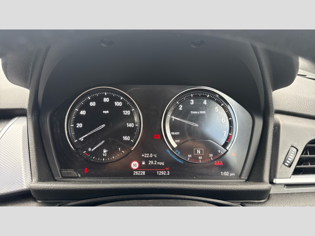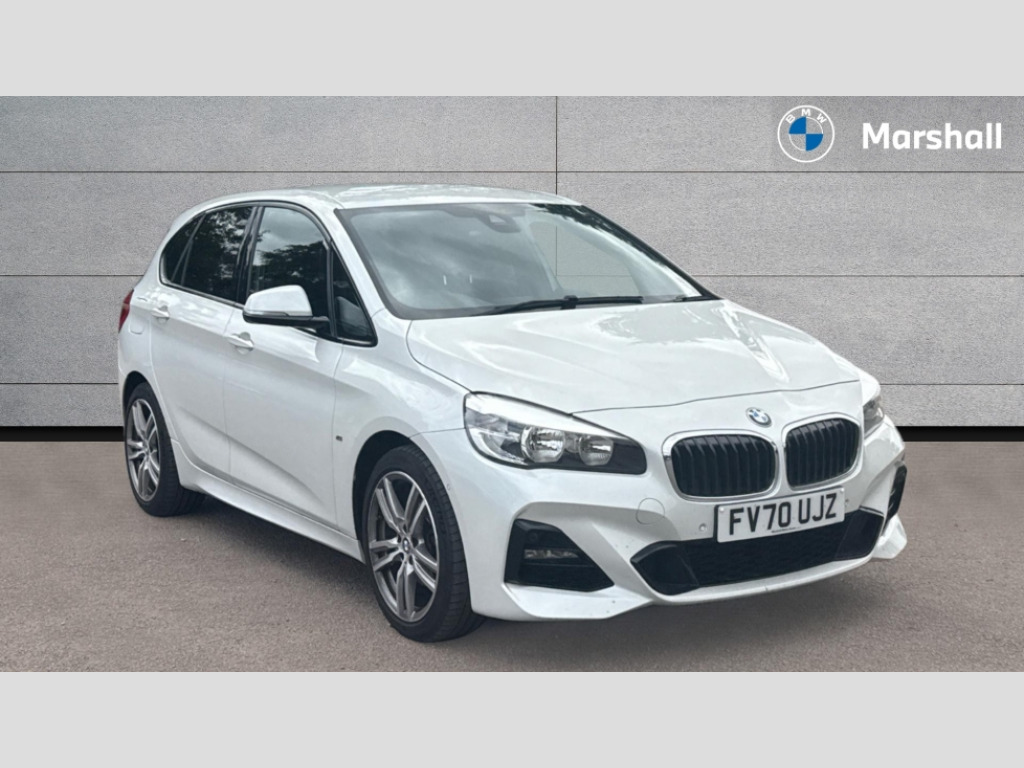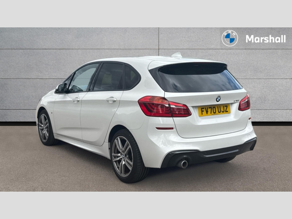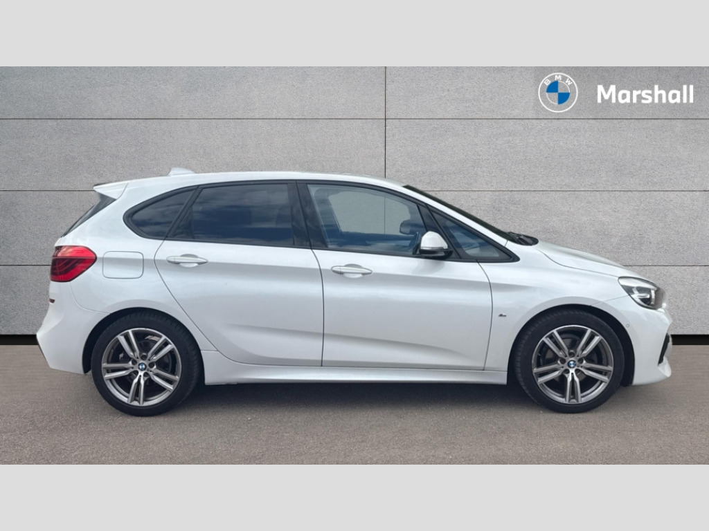 BMW 2 Series 218i M Sport 5dr Active Guard incl speed limiting and lane departure functions with auto steering, and front collision warning with brake intervention, Apple car play, Attentiveness assist, Automatic tailgate operation, BMW Online services, BMW remote services, BMW Teleservices, Brake pad wear indicator in front and rear, Check Control warning system for monitoring of lights and door/luggage compartment open warning, Cruise control with brake assist, Front/rear park distance control (PDC), Instrument cluster with speedometer with miles per hour read out, tachometer and fuel gauge, Lights on warning by audio warning signal when ignition is switched off, On board computer - average speed+fuel consumption, service interval, clock/date, odometer/trip meter, outside temperature display and ice warning, Optimum shift indicator, Park assist system with steering assist, Personal Profile - automatic lock when driving away selectable, Real time traffic information, Service interval indicator, Servotronic variable electric power steering (EPS), Speed limiter, Drive performance control with ECO PRO comfort + sport mode, Electronic differential lock, Intervention on the front axle when DSC deactivated, 2 USB sockets in rear, BMW professional radio/CD/MP3, DAB Digital radio, Body colour - front and rear bumpers, door handles, mirror caps, roof mouldings, Chrome kidney grille with extra wide black, high gloss black vertical slats, Clear lenses direction indicator lights, Direction indicator side lights integrated exterior mirrors, Dynamic brake lights, Electric windows - front and rear, with open/close fingertip control, anti-trap facility and comfort closing, Electrically adjustable door mirrors with aspheric on driver side, convex on passenger side with integrated indicators, Green tinted heat protection glazing, Heated windscreen washer jets, High beam assistant, High gloss shadow line, High level third brake light, LED front fog lights, Lightweight engineering, M aerodynamic body styling with dark shadow elements, M logo designation in side chrome, Model designation, Rain sensor including auto headlights activation, Rear fog lights, Rear window aerial, Rear window wiper integrated under roof spoiler, Reversing light in rear light cluster, Shark fin antenna, Single chrome exhaust tailpipe, Visible VIN plate, Welcome lighting, 12V power socket in centre console + front with blanking plug, Ambiance lighting - switchable, Anthracite headlining, Automatic two zone climate control air conditioning, Central locking switches for door, fuel filler cap and luggage compartment, Child seat ISOFIX attachment for two outer rear seats and front passenger seat with anchorage points, Dakota leather upholstery with perforation and contrast stitching, Folding rear seats, Four grab handles integrated in roof lining, Front and rear side armrest integrated into door trim, Front armrest, Front door sill finishers with M designation, Front head restraints, Front sports seats with electric side bolster adjustment, Gearshift lever with M designation, Glovebox with light, Interior lighting, front centre over interior mirror and rear centre automatic interior light activation when door is opened, Luggage compartment access via BMW roundel, Luggage compartment lighting, M Sport multifunction leather steering wheel, Multi-function controls for steering wheel, Rear centre armrest, Steering wheel column manual adjustment, Sunvisor with ticket holder, Sunvisors with vanity mirrors and ticket pocket, Three rear headrests, Two cupholders, Velour floor mats, Extended storage pack - 2 Series Active/Gran Tourer, Non-smoker package, 3 point seatbelts on all seats, front pyrotechnic belt tensioners, stopper and belt force limiters, rear coded belt buckles, Airbag - Front driver and passenger, front and rear head, front side, curtain head protection, manual deactivation of front passenger airbag possible, Anti lock braking system (ABS) with brake assist, Battery safety cut-off, BMW emergency call, Brake drying, Brake energy regeneration, Braking lock, Braking readiness, Child proof locking system in rear door, Crash Sensor - activates hazard/interior lighting + unlocks doors, Dynamic stability control + (DSC+), Dynamic Traction Control - DTC, Electrically operated hand brake, Front ventilated disc brakes, Hill start assist, Rear disc brakes, Seat belt security check for driver and front passenger, Seatbelt warning, Side impact protection, Twin horns, Tyre pressure monitoring system, Warning triangle and first aid kit, Locking wheel bolts, Remote control with integrated key with silver highlight and M designation, Thatcham 1 alarm system with remote control and engine immobiliser, Contrast stitching on instrument panel, 18" Burnished M double spoke alloy wheels finished in ferric grey - style 486, Reduced rolling resistance tyres, Run flat tyres