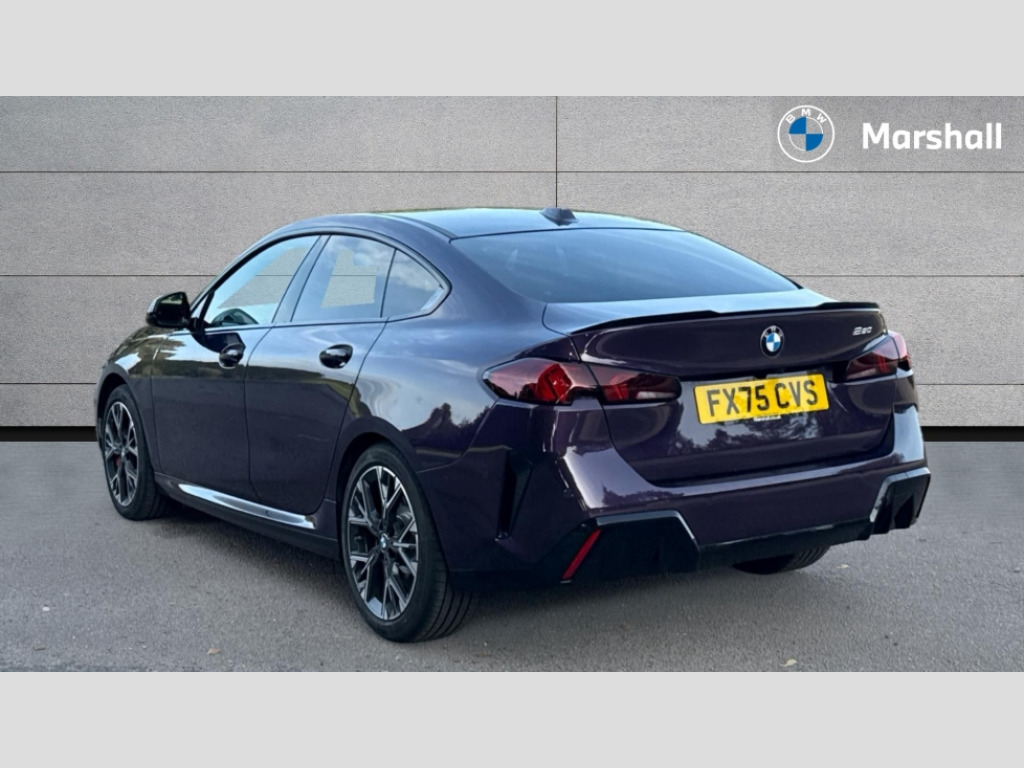 BMW 2 Series 220 M Sport 4dr Step Auto 3 driving modes Normal, Eco, Sport, Active guard plus, Attentiveness assist, Auto start-stop, Bluetooth / WiFi interface for wireless connection of mobile terminal devices and audio streaming, BMW ConnectedDrive online services, BMW Intelligent Personal Assistant, BMW Live cockpit plus with widescreen display 10.25" instrument cluster and 10.7" control display, BMW Online services, BMW operating system with 7.0 mid interface, BMW Teleservices, Check Control warning system for monitoring of lights and door/luggage compartment open warning, Cruise control with braking function, Electric power steering, Front and rear parking sensors, Gearshift time display in manual mode, Integrated navigation data with map data via USB +features such as 3D landmarks and micro city models, Integrated owners handbook, Intelligent voice assistant, Lane departure warning system, Oil sensor for level and grade, On board computer - average speed+fuel consumption, service interval, clock/date, odometer/trip meter, outside temperature display and ice warning, Optimum shift indicator, Park assist including reversing assistant, lateral parking aid and reversing assist camera, Personal e-SIM, Personal Profile, Pull away assistant, Speed limit Info including no-overtaking indicator, Speed limiting function, 49 litre fuel tank, Automatic transmission with gearshift paddles, Drive Performance Control, Electronic differential lock, M Adaptive suspension, Performance Control, Petrol Particulate Filter, VALVETRONIC engine management, 2x USB Type C ports (for charging and data transfer), 4G LTE Connectivity with hard wied 4G network sim card, DAB Digital radio, Auto wipers, Automatic headlight beam throw control, Automatically dimming rear view mirror, Body colour door handles, Direction indicator side lights integrated exterior mirrors, Exterior M sport design elements, Folding side mirrors with auto dimming/folding wing mirrors with auto dimming, Follow me home headlights, Front and rear bumper panel with M specific design, in body colour with inserts in black high gloss, Heated door mirrors, High gloss shadow line exterior trim, High level third brake light, Key with M identification, LED daytime running lights, LED eyebrow turn indicators, LED front fog lights, M identification on the sides, Rain sensor with automatic headlight activation, Rear boot, Rear fog lights, Rear side wing doors, Rear window heating, Roof trim strip in vehicle colour, Shark fin antenna, Side sill covers with M specific design in body colour, Trailer stabilisation logic, Visible VIN plate, Welcome lighting, 12V power socket in centre console, 2 cupholders in front centre console, 3 rear seat head restraints, 3 seat bench in 2nd row, 3 spoke sports black walknappa leather steering with black stitching,shift paddled boost inscription,shaped thumb rests,specific M Badge, Anthracite headlining, Child seat ISOFIX attachment for two outer rear seats and front passenger seat with anchorage points, Conditioned based service, Driver and front passenger backrest net on rear, Driver and front passenger seat heating, Four grab handles integrated in roof lining, Front and rear door pockets including bottle trays, Front and rear side armrest integrated into door trim, Front head restraints, Height adjustable front head restraints, Luggage compartment lighting, Rear seat backrest with manual 60:40 split folding with 3 top tether clips integrated on rear of seat panels, Single front passenger seat, Sun visors with vanity mirrors and insert tab, Connected pack professional - 2 Series Gran Coupe, 2 tone horn, Airbag - Front driver and passenger, front and rear head, front side, curtain head protection, manual deactivation of front passenger airbag possible, Anti lock braking system (ABS) with cornering brake control, BMW emergency call, Brake drying, Braking readiness, City braking function, Crash sensor activating of airbags, Unlocking doors, hazard warning lights, interior light, safety battery terminal, Dynamic stability control + (DSC+), Dynamic Traction Control - DTC, Electrically operated hand brake, Front and rear disc brakes, PC iBrake (Post crash approach control warning with light braking function), Rear brake discs, Rear child proof door locks, Seat belt security check for driver and front passenger, Seatbelt warning, Side impact protection, Three point seat belts on all seats including front belt stopper, pyrotechnic belt tensioners and belt force limiters, Trailer stability control, Tyre pressure monitoring system, Ventilated front disc brakes, Warning triangle and first aid kit, Central locking switch for all doors, fuel filler cap and luggage compartment, Deadlocking function system to all doors, Drive away locking system on all doors and luggage compartment, Locking wheel bolts, Start/Stop button (illuminated) in centre console with keyless engine start and Auto Start-Stop deactivation button, Thatcham Cat.1 alarm and immobiliser, Two remote control key with integrated key - open/close doors/fuel flap/tailgate +1 button for unlock compartment with M design high gloss black inlay, Reduced rolling resistance tyres, Tyre repair kit