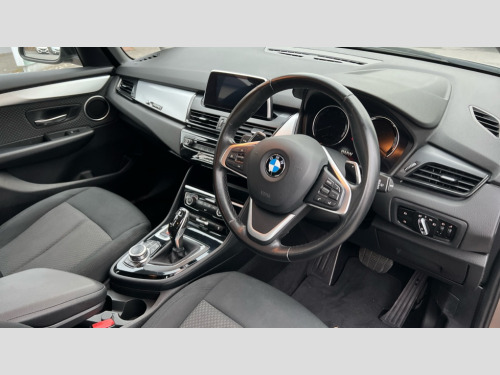 BMW 2 Series 220d xDrive SE 5dr Step Auto Attentiveness assist, Automatic tailgate operation, BMW Online services, BMW remote services, BMW Teleservices, Check control system, Door/boot open warning light, Forward collision warning, Lights on warning, Oil temperature gauge, On board computer, Outside temperature display, Personal Profile, Service interval indicator, Speed limiter, Stop/start button, Diesel particulate filter, Drive Performance Control, Electronic differential lock, 2x USB sockets in front, Bluetooth audio streaming, BMW professional radio/CD/MP3, DAB Digital radio, Body colour bumpers, Body colour door handles, Body colour door mirrors, Body colour roof mouldings, Chrome kidney grille with black vertical slats, Door sill finishers, Electric adjustable heated door mirrors, Electric front/rear windows with one touch/auto up/down, Follow me home headlights, Heat insulating tinted glass, Heated windscreen washer jets, High beam assistant, LED daytime running lights, LED front fog lights, Rain sensor including auto headlights activation, Rear wiper, Twin chrome exhaust tailpipes, Welcome lighting, 3 rear headrests, 3 spoke sports leather steering wheel, 4 grab handles, Anthracite Velour floor mats, Dual zone automatic air conditioning, Front armrest, Front head restraints, Front/rear armrests within door panels, Illuminated glovebox, Isofix front passenger and rear seat preparation, Luggage compartment lighting, Multifunction steering wheel, Reach + rake adjustable steering column, Rear centre armrest, Sunvisors, Extended storage pack - 2 Series Active/Gran Tourer, 3 point seatbelts on all seats, ABS, BMW emergency call, Brake assist function, Childproof rear door locks, Collision mitigation braking system, Crash Sensor - activates hazard/interior lighting + unlocks doors, Driver/Front Passenger airbags, DSC+, Dynamic Traction Control - DTC, Front and rear curtain airbags, Front passenger airbag deactivation, Front seatbelt force limiters, Front seatbelt pretensioner, Front side airbags, Hill start assist, Seatbelt warning, Side impact protection, Tyre pressure monitoring system, Warning triangle and first aid kit, Electronic immobiliser, Key integrated remote control central locking, Locking wheel bolts, Remote control Thatcham category 1 alarm